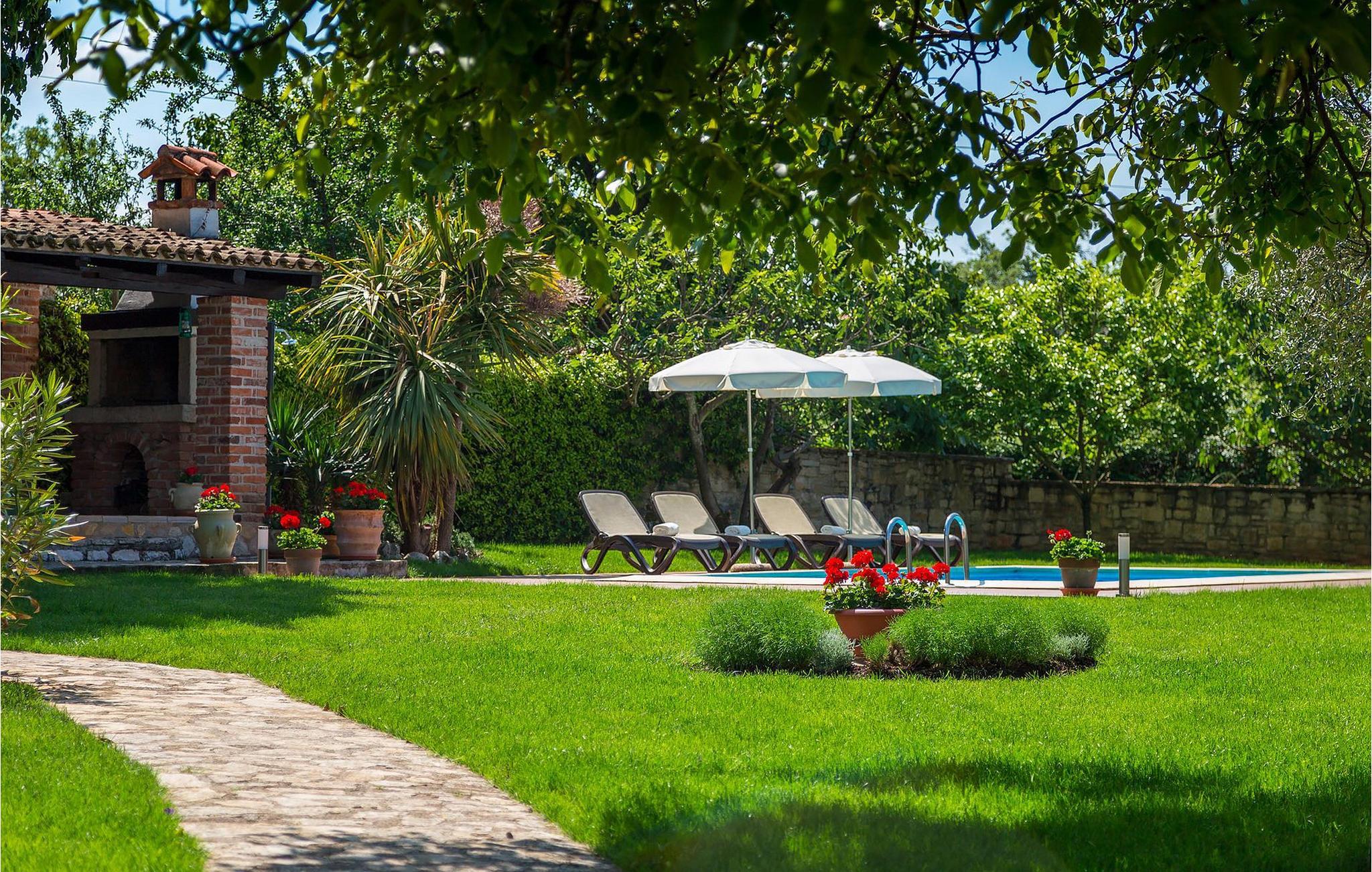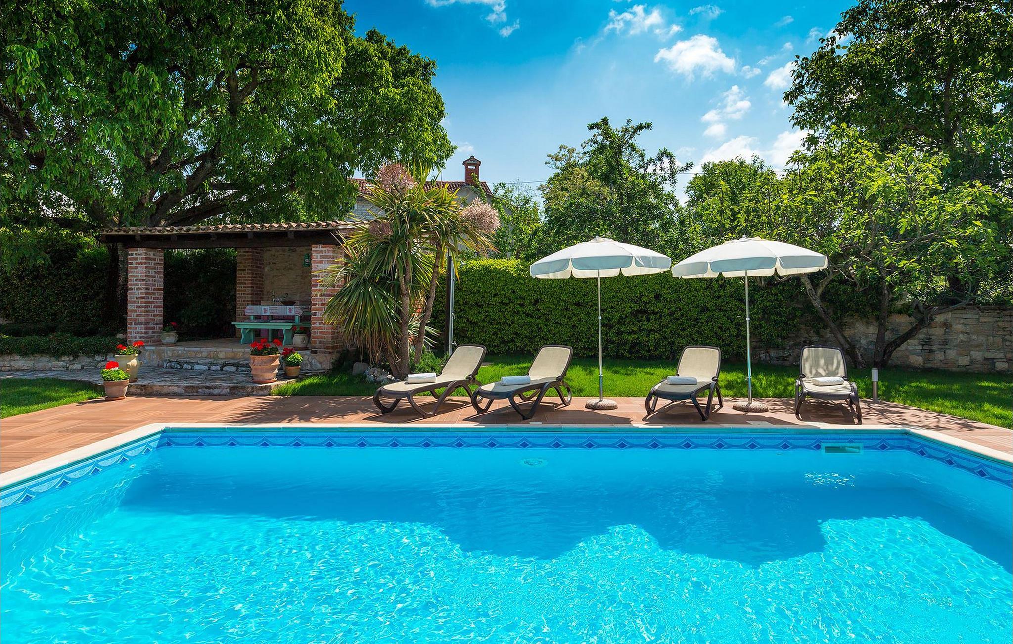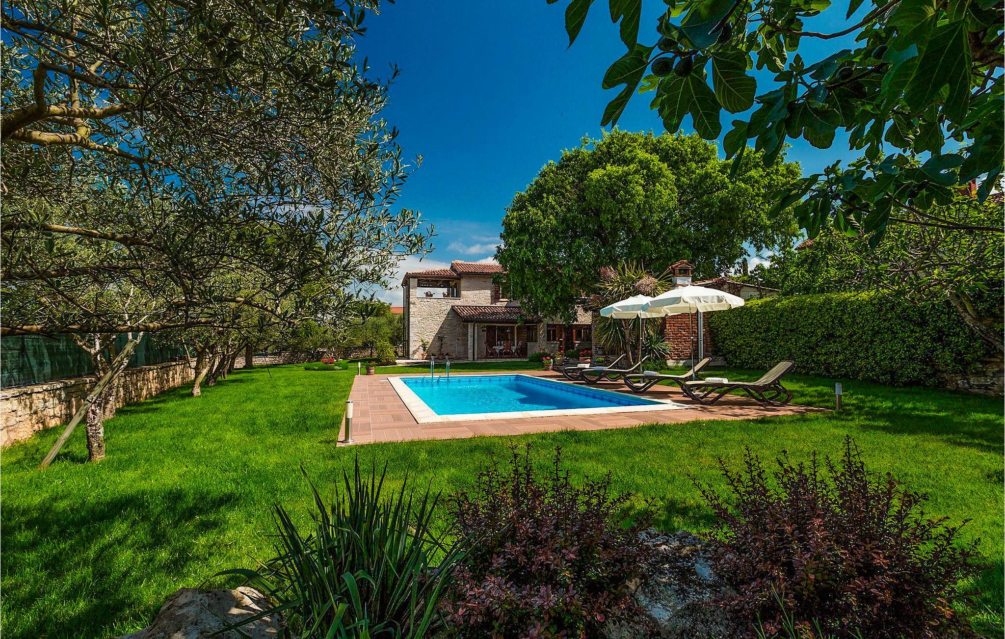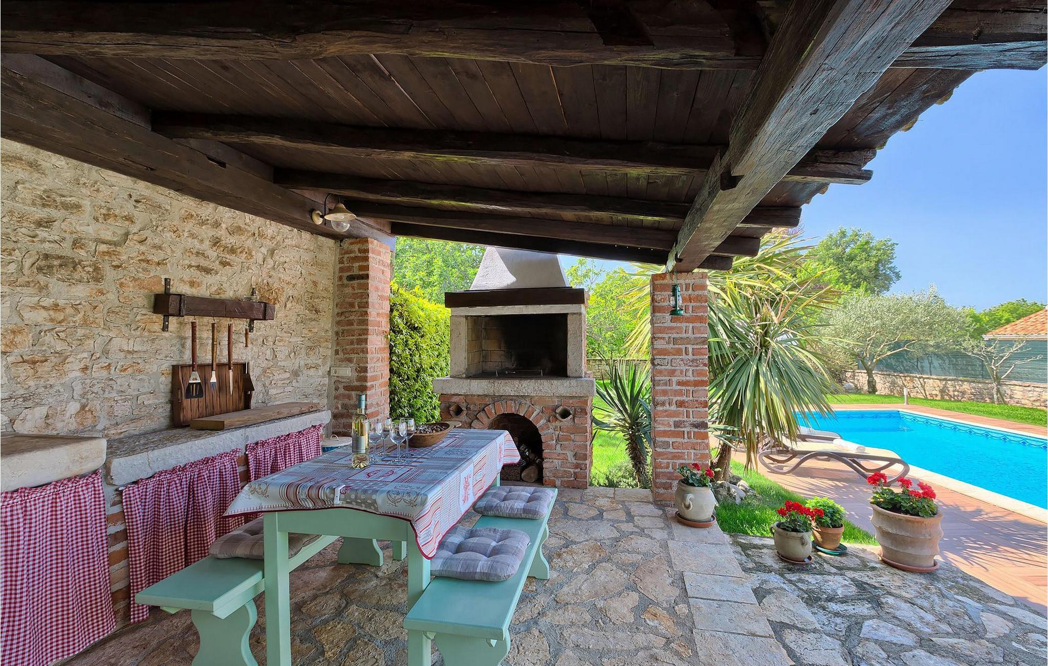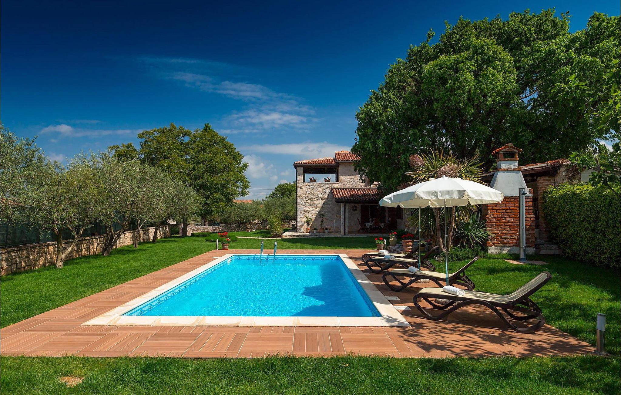 Villa Nini er et typisk istrisk stenhus, der er blevet renoveret for at tilbyde dig den bedste ferieoplevelse og alligevel minde dig om de tider, der er gået længe. Fra indgangen til poolområdet - er der mange detaljer, der pryder hele ejendommen med masser af charme og romantik. Villa Nini har to soveværelser, det ene med dobbeltseng, det andet med to enkeltsenge, der kan sættes sammen, alt afhængig af hvordan det passer dig bedst. Begge soveværelser er placeret på 1. sal sammen med et badeværelse. I stueetagen finder du en rummelig stue, et fuldt udstyret køkken samt endnu et badeværelse. Når du træder ind i det udendørs område, vil du helt sikkert blive overvældet af haven, der er blevet belønnet med at være en af de smukkeste haver i Kroatien. Poolområdet eller et af de to udendørs spiseområder er de perfekte steder at nyde haven fra. Der kan også arrangeres olivenoliesmagninger. Dette er bare den perfekte måde at tilbringe din typiske istriske ferie på. Villaen er beliggende nær Porec, i en lille charmerende landsby kaldet Rakovci. En god restaurant ligger kun 50 m fra villaen (Idila Rakovci). Butikker og andre restauranter er i den nærliggende landsby Baderna. Porec - Kroatiens turisthotspot med strande og aktiviteter er kun en kort køretur væk såvel som alle andre destinationer på halvøen Istrien, som har et meget godt vejsystem. Turisme i Porec er mere end hav, sol og turistbillede. Turisterne kan sagtens genkende byen, der bevarer sine historiske værdier. Du kan finde museer, gallerier og mange værdifulde bypaladser. Det uvurderlige bycentrum ligger på en lille halvø. Dens grundlag blev sat på plads under det romerske imperiums styre. Under dit ophold i villaen besøg Euphrasius Basilica Complex (Unesco Heritage) i den gamle bydel i Porec. Porec tilbyder også en række sportsaktiviteter: tennis, beachvolley, fodbold, ridning, cykling, vandreture, vandsport.