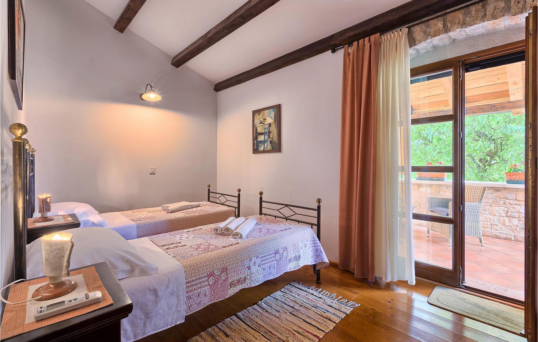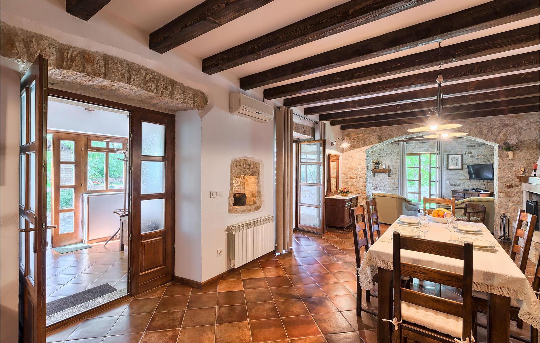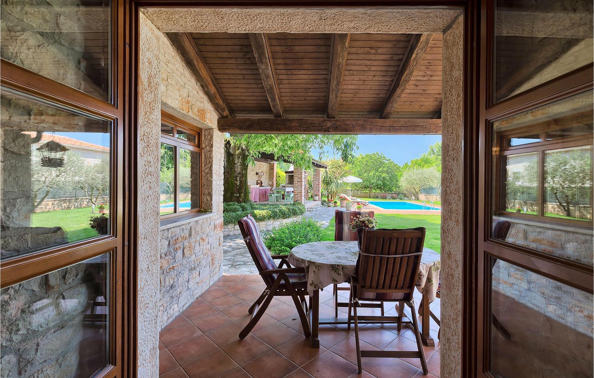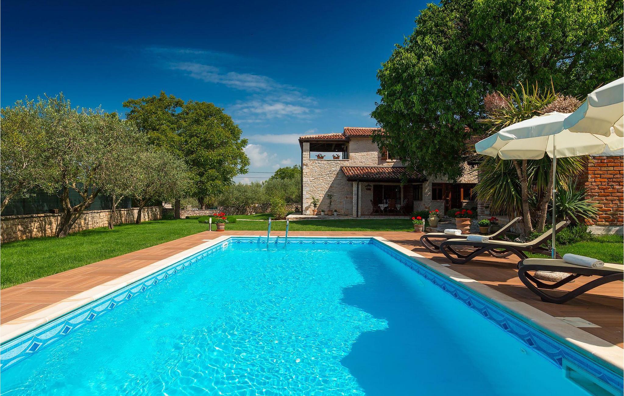 Villa Nini er et typisk istrisk stenhus, der er blevet renoveret for at tilbyde dig den bedste ferieoplevelse og alligevel minde dig om de tider, der er gået længe. Fra indgangen til poolområdet - er der mange detaljer, der pryder hele ejendommen med masser af charme og romantik. Villa Nini har to soveværelser, det ene med dobbeltseng, det andet med to enkeltsenge, der kan sættes sammen, alt afhængig af hvordan det passer dig bedst. Begge soveværelser er placeret på 1. sal sammen med et badeværelse. I stueetagen finder du en rummelig stue, et fuldt udstyret køkken samt endnu et badeværelse. Når du træder ind i det udendørs område, vil du helt sikkert blive overvældet af haven, der er blevet belønnet med at være en af de smukkeste haver i Kroatien. Poolområdet eller et af de to udendørs spiseområder er de perfekte steder at nyde haven fra. Der kan også arrangeres olivenoliesmagninger. Dette er bare den perfekte måde at tilbringe din typiske istriske ferie på. Villaen er beliggende nær Porec, i en lille charmerende landsby kaldet Rakovci. En god restaurant ligger kun 50 m fra villaen (Idila Rakovci). Butikker og andre restauranter er i den nærliggende landsby Baderna. Porec - Kroatiens turisthotspot med strande og aktiviteter er kun en kort køretur væk såvel som alle andre destinationer på halvøen Istrien, som har et meget godt vejsystem. Turisme i Porec er mere end hav, sol og turistbillede. Turisterne kan sagtens genkende byen, der bevarer sine historiske værdier. Du kan finde museer, gallerier og mange værdifulde bypaladser. Det uvurderlige bycentrum ligger på en lille halvø. Dens grundlag blev sat på plads under det romerske imperiums styre. Under dit ophold i villaen besøg Euphrasius Basilica Complex (Unesco Heritage) i den gamle bydel i Porec. Porec tilbyder også en række sportsaktiviteter: tennis, beachvolley, fodbold, ridning, cykling, vandreture, vandsport.
