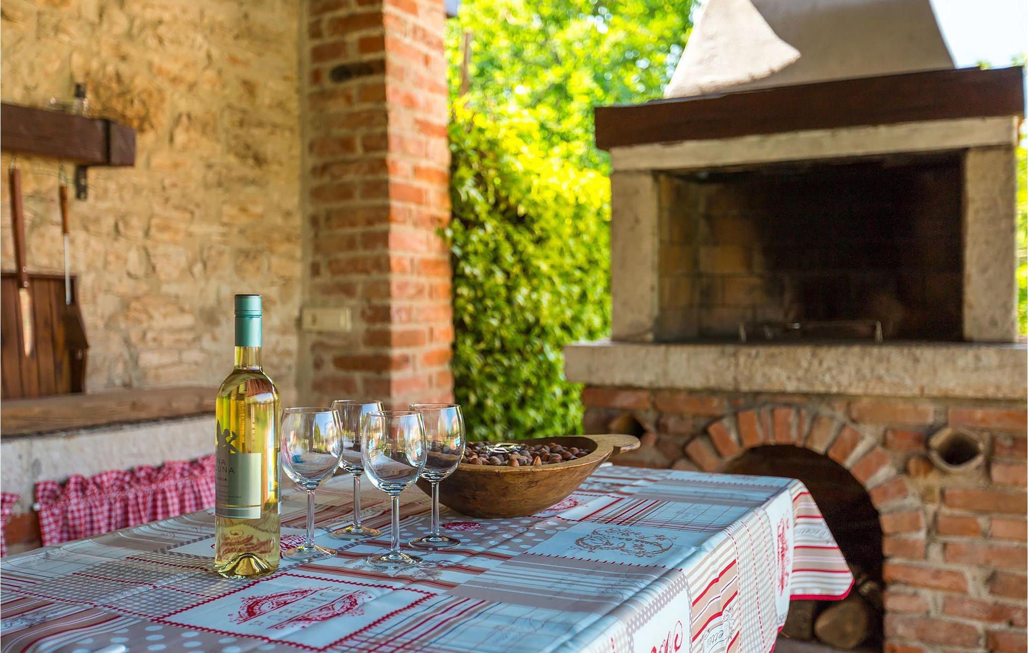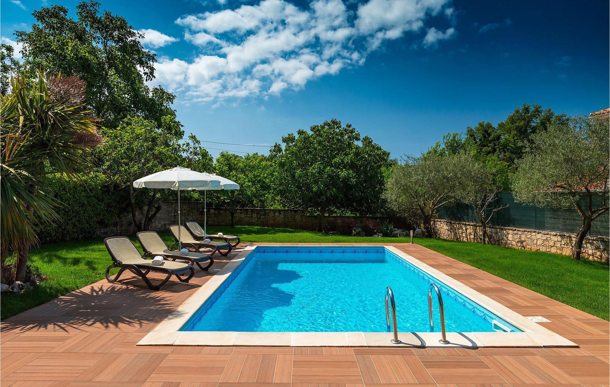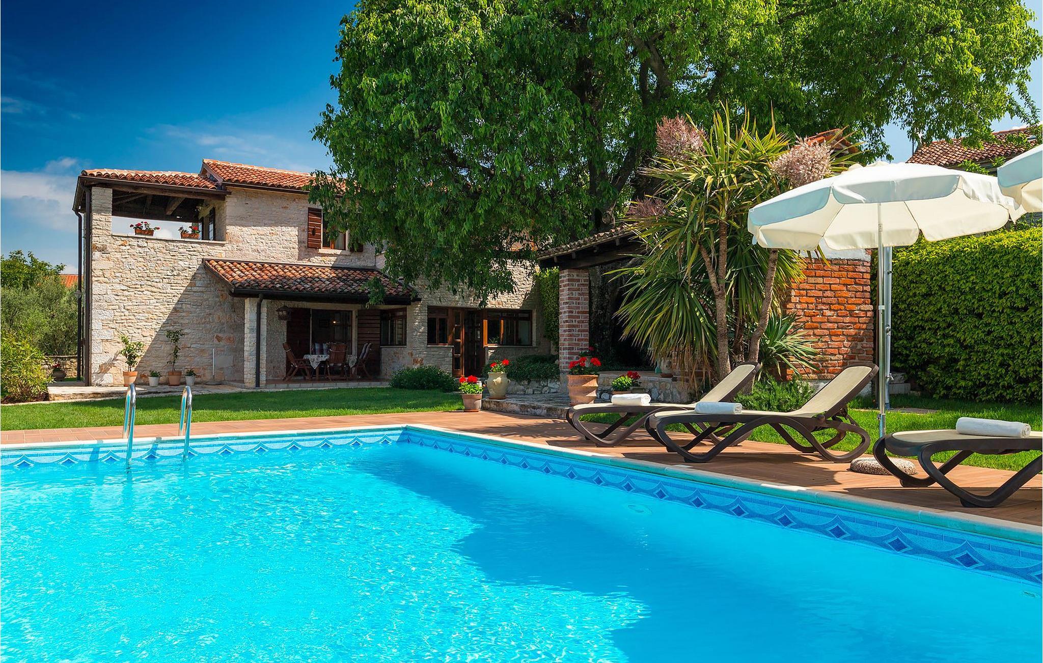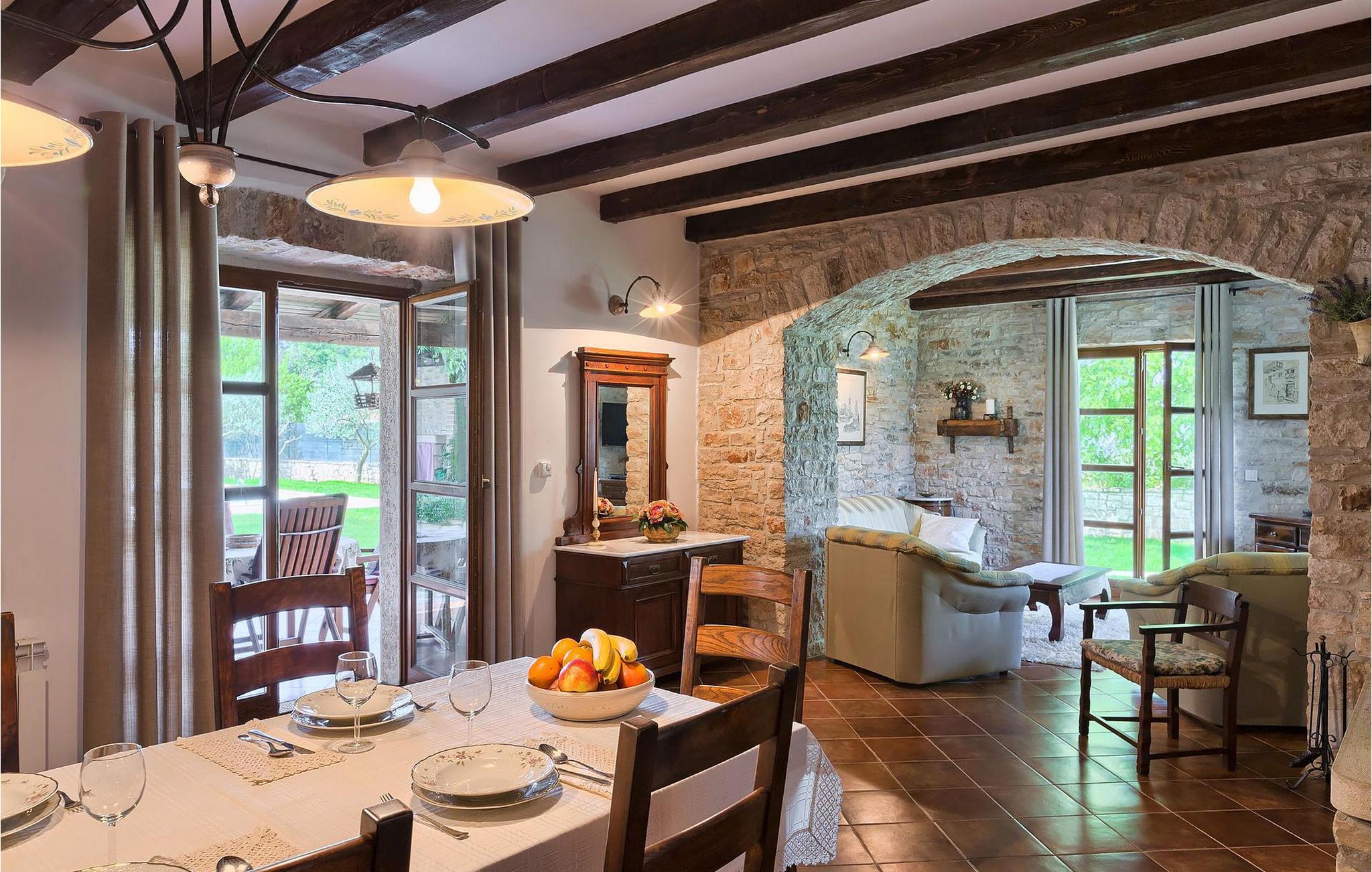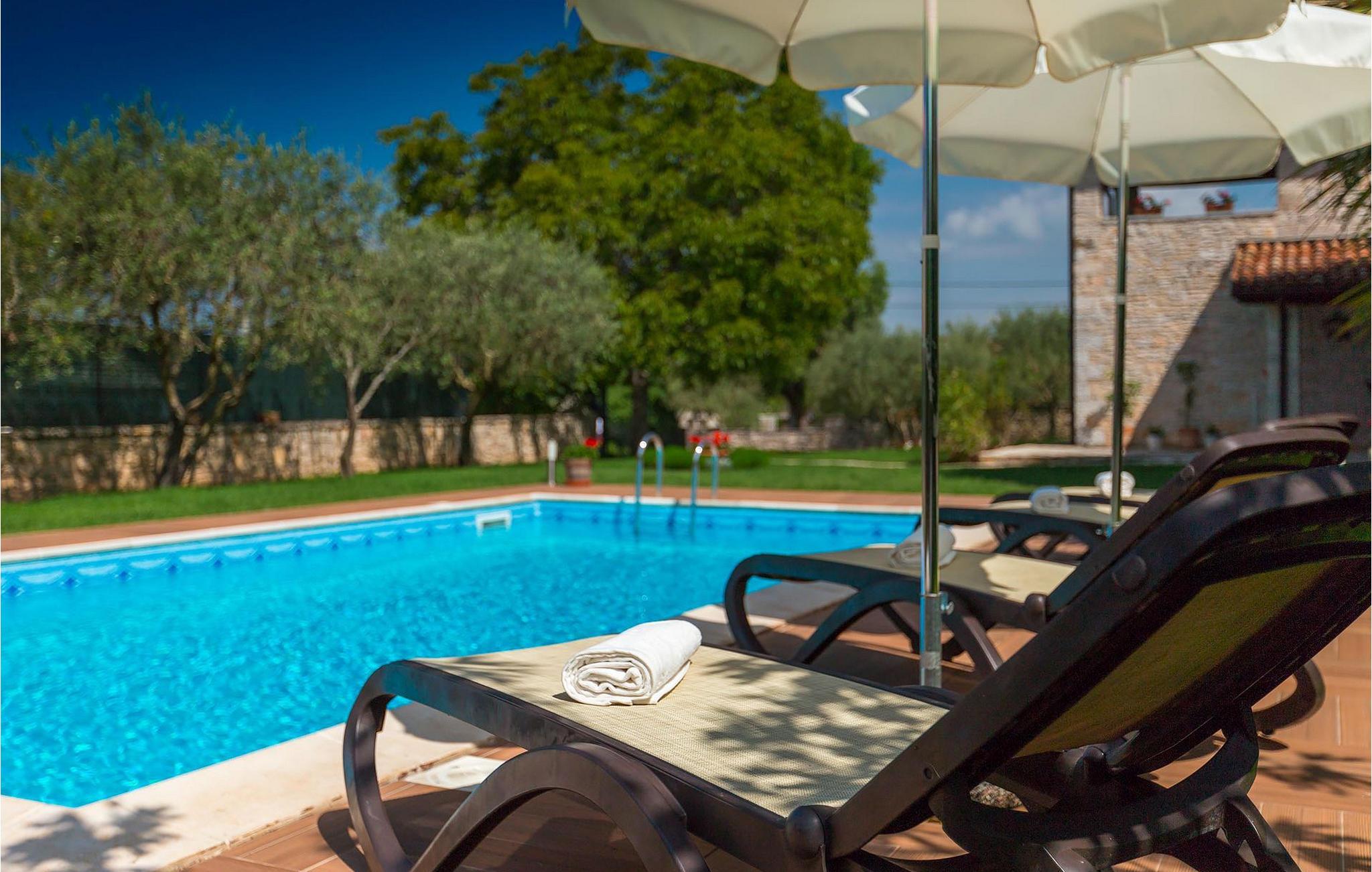 Villa Nini er et typisk istrisk stenhus, der er blevet renoveret for at tilbyde dig den bedste ferieoplevelse og alligevel minde dig om de tider, der er gået længe. Fra indgangen til poolområdet - er der mange detaljer, der pryder hele ejendommen med masser af charme og romantik. Villa Nini har to soveværelser, det ene med dobbeltseng, det andet med to enkeltsenge, der kan sættes sammen, alt afhængig af hvordan det passer dig bedst. Begge soveværelser er placeret på 1. sal sammen med et badeværelse. I stueetagen finder du en rummelig stue, et fuldt udstyret køkken samt endnu et badeværelse. Når du træder ind i det udendørs område, vil du helt sikkert blive overvældet af haven, der er blevet belønnet med at være en af de smukkeste haver i Kroatien. Poolområdet eller et af de to udendørs spiseområder er de perfekte steder at nyde haven fra. Der kan også arrangeres olivenoliesmagninger. Dette er bare den perfekte måde at tilbringe din typiske istriske ferie på. Villaen er beliggende nær Porec, i en lille charmerende landsby kaldet Rakovci. En god restaurant ligger kun 50 m fra villaen (Idila Rakovci). Butikker og andre restauranter er i den nærliggende landsby Baderna. Porec - Kroatiens turisthotspot med strande og aktiviteter er kun en kort køretur væk såvel som alle andre destinationer på halvøen Istrien, som har et meget godt vejsystem. Turisme i Porec er mere end hav, sol og turistbillede. Turisterne kan sagtens genkende byen, der bevarer sine historiske værdier. Du kan finde museer, gallerier og mange værdifulde bypaladser. Det uvurderlige bycentrum ligger på en lille halvø. Dens grundlag blev sat på plads under det romerske imperiums styre. Under dit ophold i villaen besøg Euphrasius Basilica Complex (Unesco Heritage) i den gamle bydel i Porec. Porec tilbyder også en række sportsaktiviteter: tennis, beachvolley, fodbold, ridning, cykling, vandreture, vandsport.
