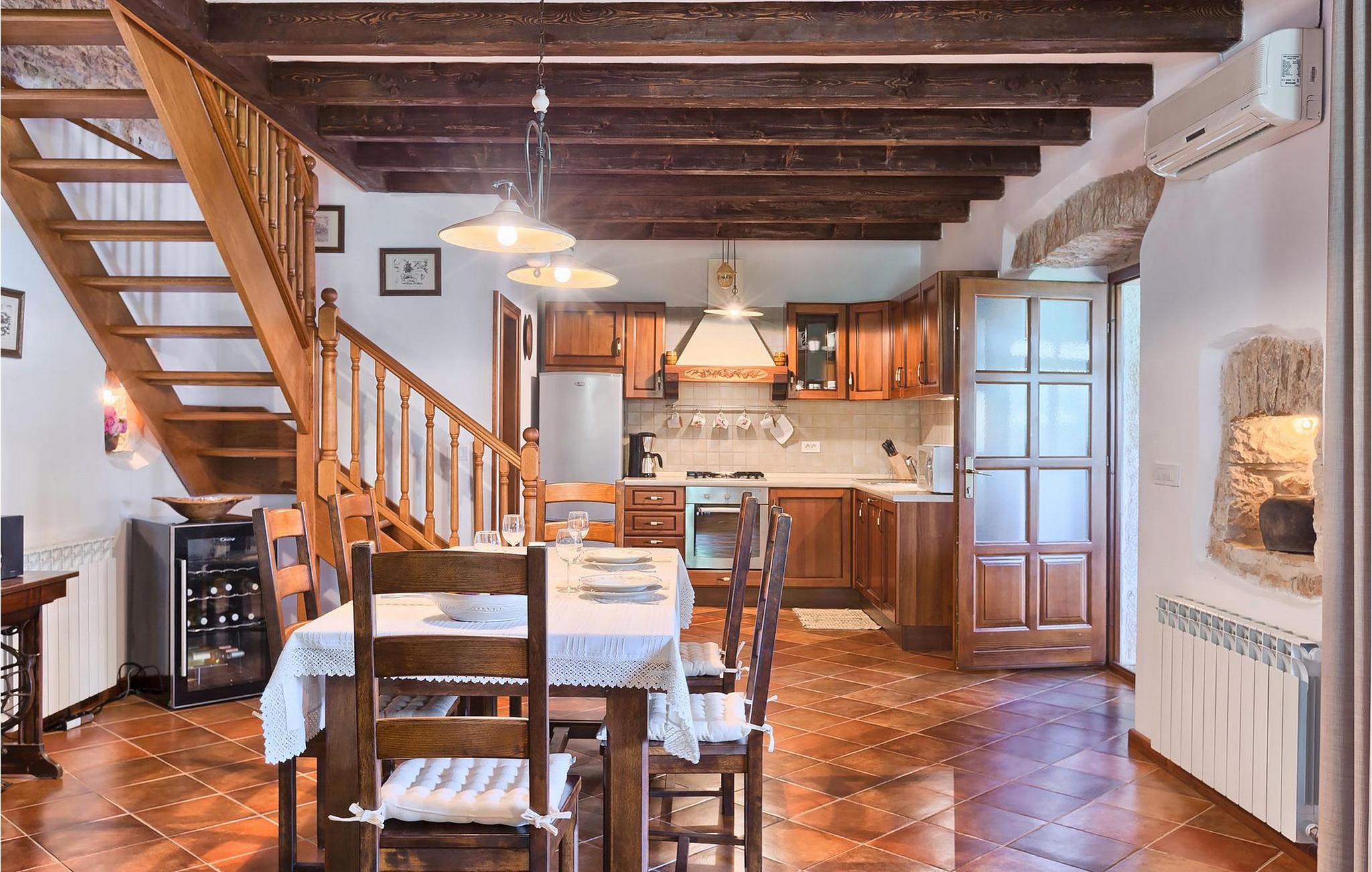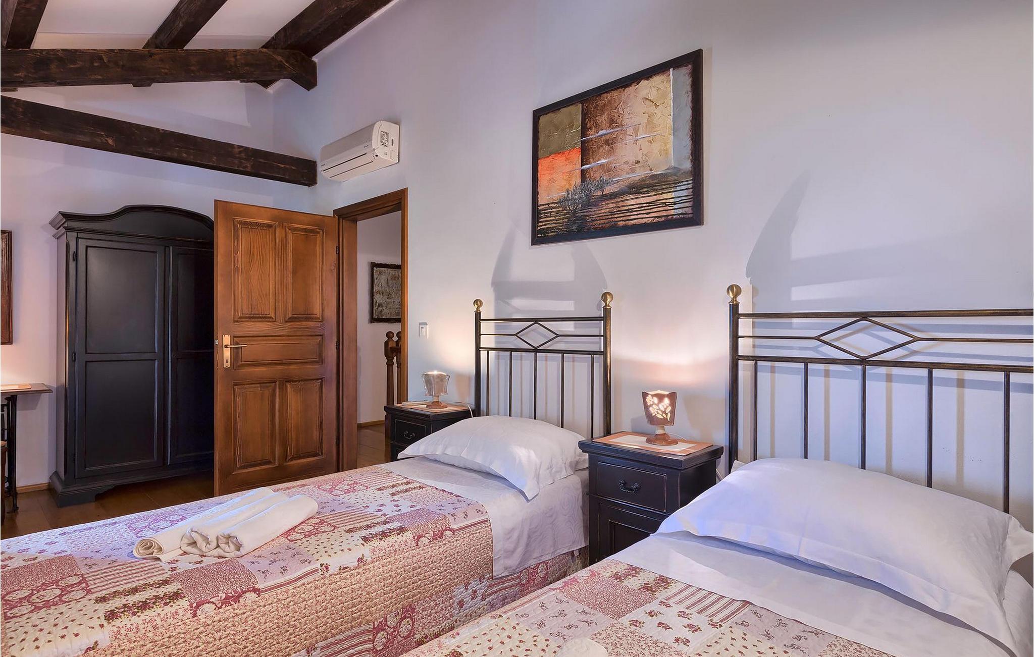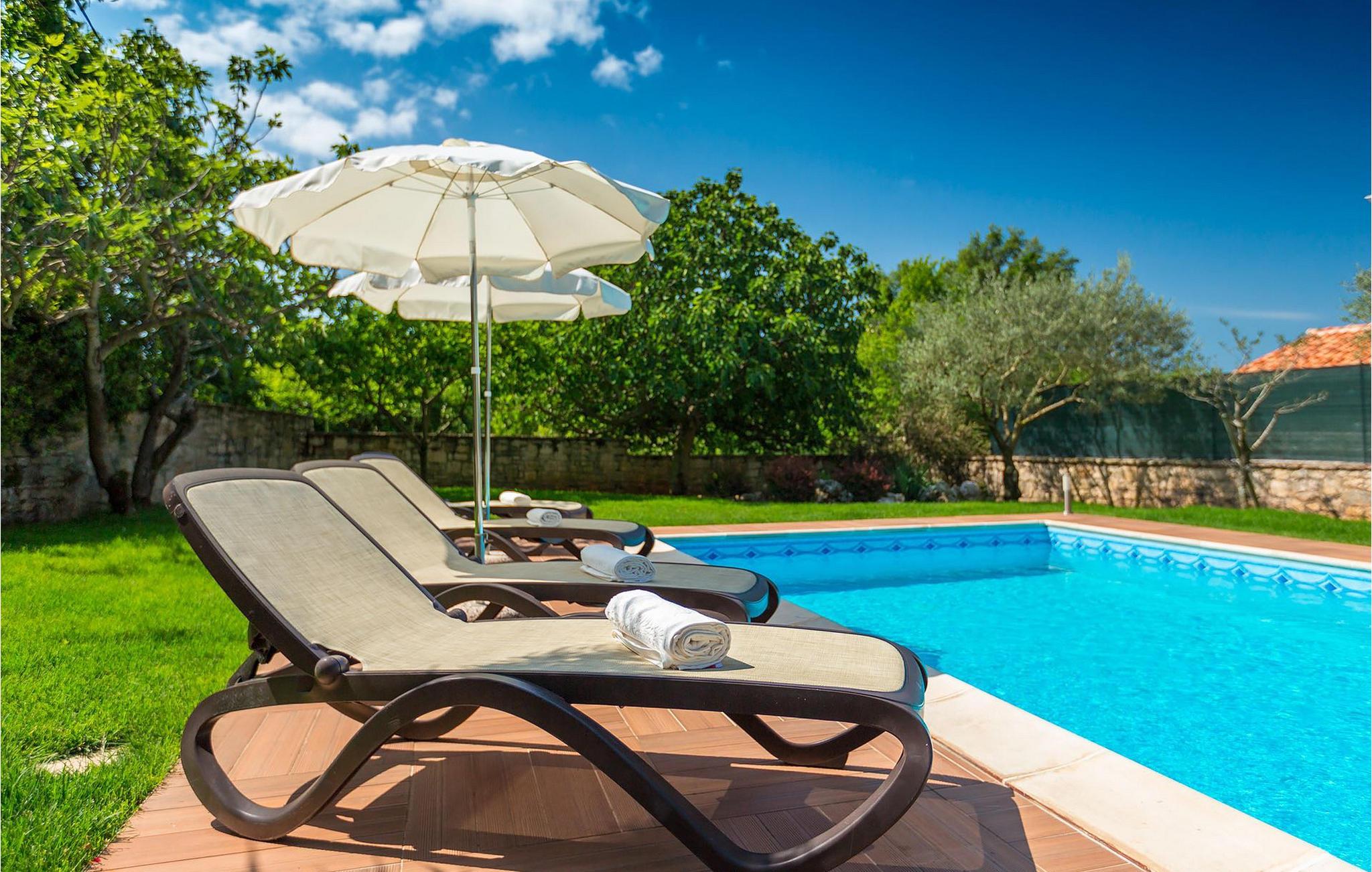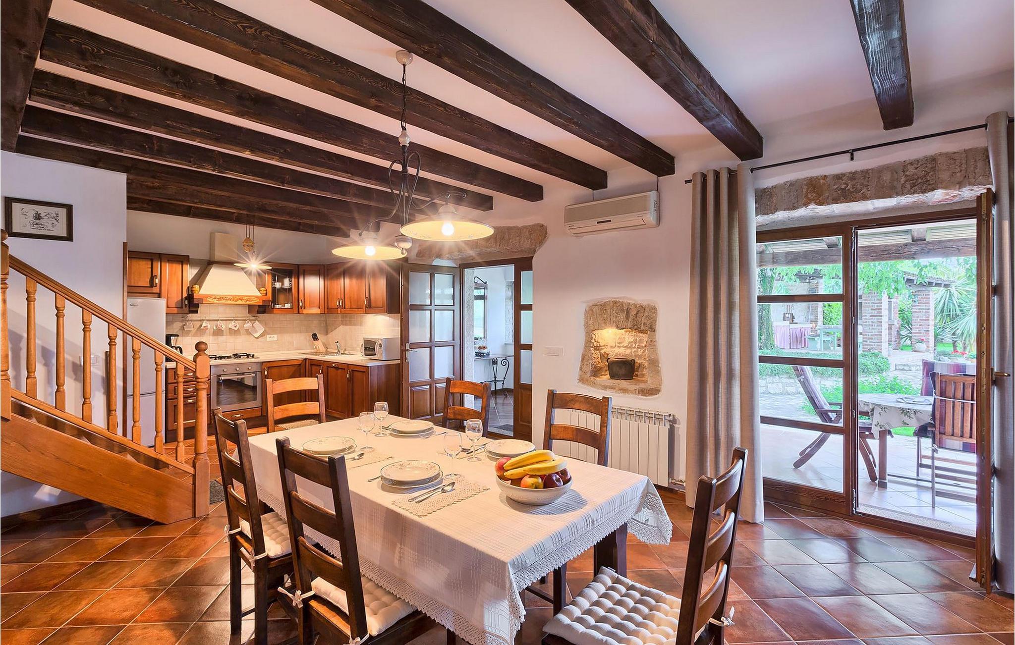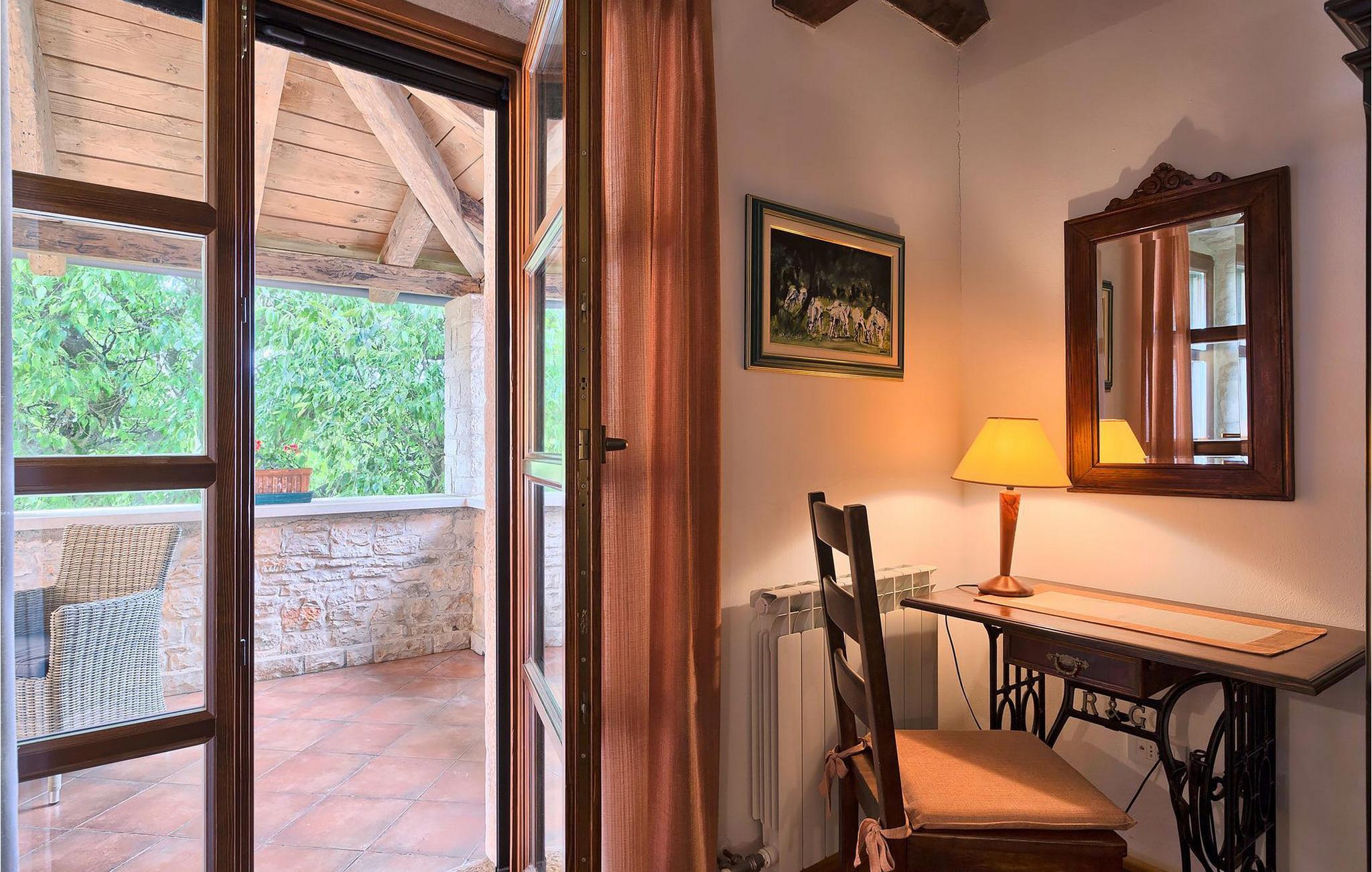 Villa Nini er et typisk istrisk stenhus, der er blevet renoveret for at tilbyde dig den bedste ferieoplevelse og alligevel minde dig om de tider, der er gået længe. Fra indgangen til poolområdet - er der mange detaljer, der pryder hele ejendommen med masser af charme og romantik. Villa Nini har to soveværelser, det ene med dobbeltseng, det andet med to enkeltsenge, der kan sættes sammen, alt afhængig af hvordan det passer dig bedst. Begge soveværelser er placeret på 1. sal sammen med et badeværelse. I stueetagen finder du en rummelig stue, et fuldt udstyret køkken samt endnu et badeværelse. Når du træder ind i det udendørs område, vil du helt sikkert blive overvældet af haven, der er blevet belønnet med at være en af de smukkeste haver i Kroatien. Poolområdet eller et af de to udendørs spiseområder er de perfekte steder at nyde haven fra. Der kan også arrangeres olivenoliesmagninger. Dette er bare den perfekte måde at tilbringe din typiske istriske ferie på. Villaen er beliggende nær Porec, i en lille charmerende landsby kaldet Rakovci. En god restaurant ligger kun 50 m fra villaen (Idila Rakovci). Butikker og andre restauranter er i den nærliggende landsby Baderna. Porec - Kroatiens turisthotspot med strande og aktiviteter er kun en kort køretur væk såvel som alle andre destinationer på halvøen Istrien, som har et meget godt vejsystem. Turisme i Porec er mere end hav, sol og turistbillede. Turisterne kan sagtens genkende byen, der bevarer sine historiske værdier. Du kan finde museer, gallerier og mange værdifulde bypaladser. Det uvurderlige bycentrum ligger på en lille halvø. Dens grundlag blev sat på plads under det romerske imperiums styre. Under dit ophold i villaen besøg Euphrasius Basilica Complex (Unesco Heritage) i den gamle bydel i Porec. Porec tilbyder også en række sportsaktiviteter: tennis, beachvolley, fodbold, ridning, cykling, vandreture, vandsport.