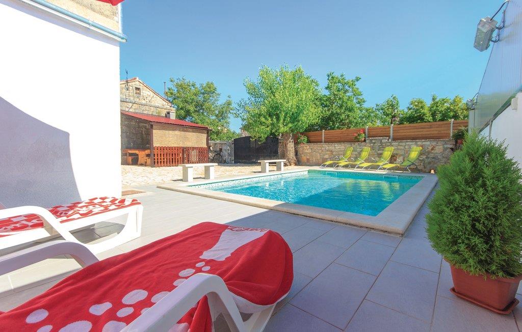 Hold jeres velfortjente ferie i denne halvdel af et dobbelthus i byen Stifanici. Huset lever helt op til nutidens standard. Men de traditionelle byggematerialer sten og træ, giver det en særlig lokal charme. Husets to dele er forbundet med en udendørs trappe. Den ene del ligger i stueplan, med køkken der er åbent ud til stuen med spiseafdeling, et soveværelse og et badeværelse. Den andel del ligger på første sal, med stue og et køkken, hvorfra I af en indendørs trappe kommer op til loftsetagen. Her er yderligere to soveværelser og et badeværelse.