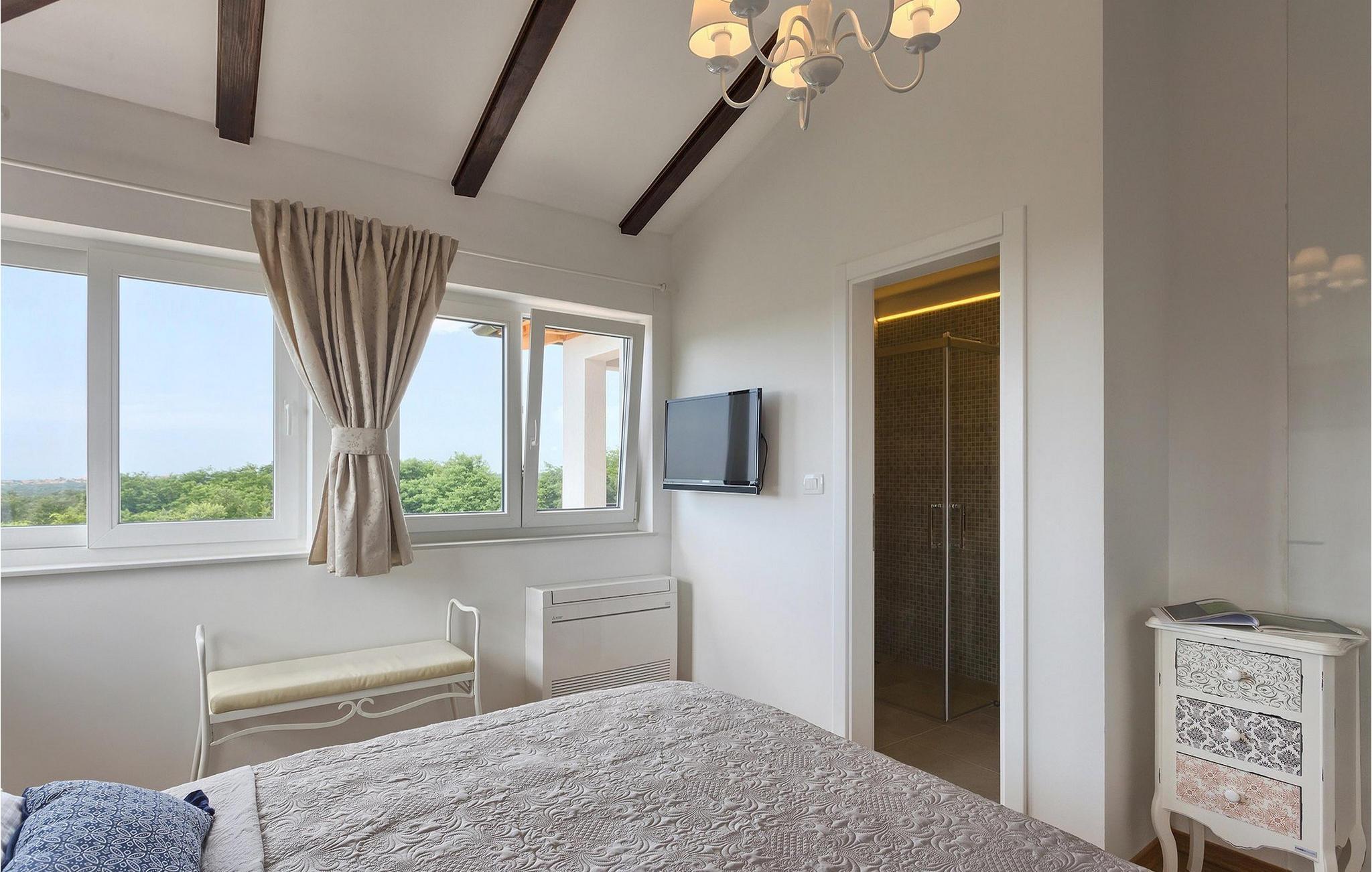 Denne skønne ejendom har en dejlig privat pool, en udendørs jacuzzi og sauna - alt hvad du behøver for en afslappende ferie! Slap af på liggestolene ved siden af poolen eller nyd dit frisklavede måltid fra grillen i den udendørs spiseplads. Villa Lume vil glæde dig med sit smagfuldt indrettede interiør. I stueetagen er der et åbent koncept værelse opdelt i et fuldt udstyret køkken med spiseplads og en rummelig stue. Der er ét smukt indrettet soveværelse med eget badeværelse og walk-in closet i stueetagen, mens de resterende tre soveværelser og badeværelser er placeret på øverste etage. Alle værelser har aircondition og tv. Den smukke udsigt over poolen og de istriske omgivelser venter på dig på balkonen og terrassen på villaens øverste etage. Book villa Lume og sørg for at tilbringe en fantastisk ferie i nærheden af Porec. Villaen ligger i en fredelig del af Porec, men alligevel kun en kort køretur fra byens centrum, og er bekvemt placeret for både dem, der foretrækker en afslappende ferie, såvel som for dem, der kan lide det hektiske i en turistby. I Porec kan du finde alle former for underholdning, fra sportsaktiviteter til restauranter, barer og natklubber. Da Porec er en tidligere romersk koloni, er byen mest kendt for sin rige kulturelle arv. Den betagende Euphrasius-basilika, som i øjeblikket er under Unescos beskyttelse, er sandsynligvis den bedste indikator for tidligere tiders herlighed. Middelalderbyerne Motovun og Groznjan samt kystbyerne Rovinj og Vrsar ligger kun en kort køretur væk. Hvis du er interesseret i at opdage fjernere dele af Istrien, kan Brijuni-øerne og det romerske amfiteater i Pula også nemt nås fra denne region.