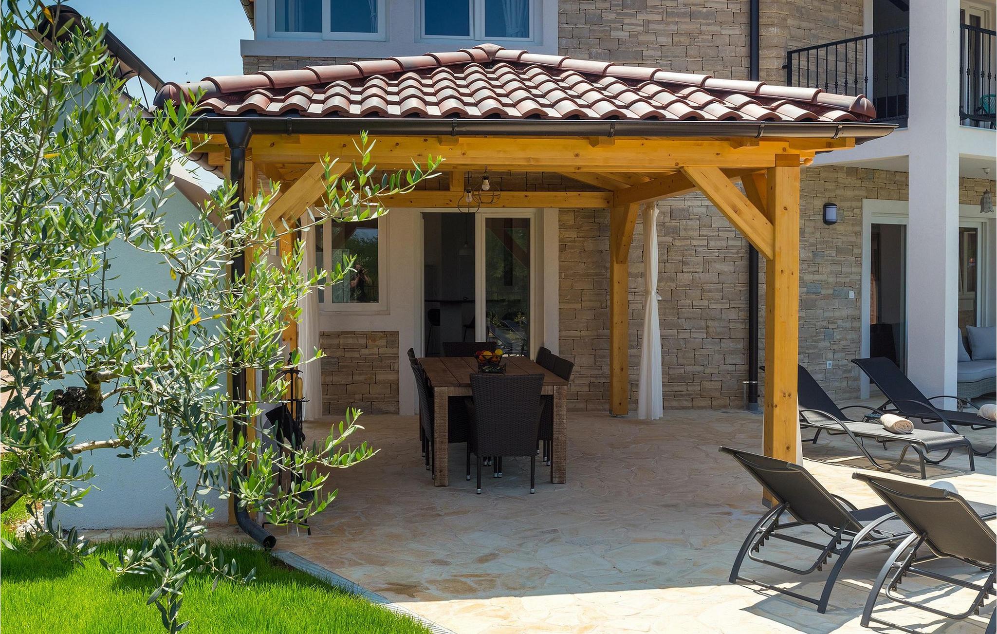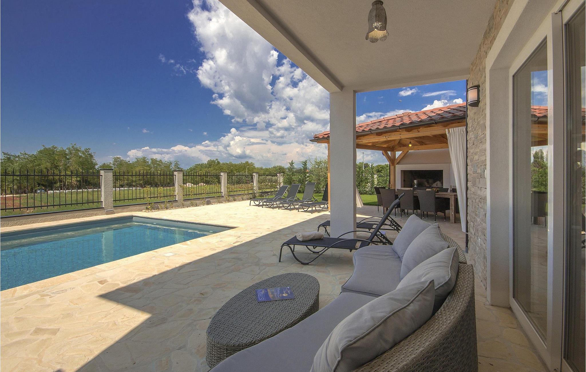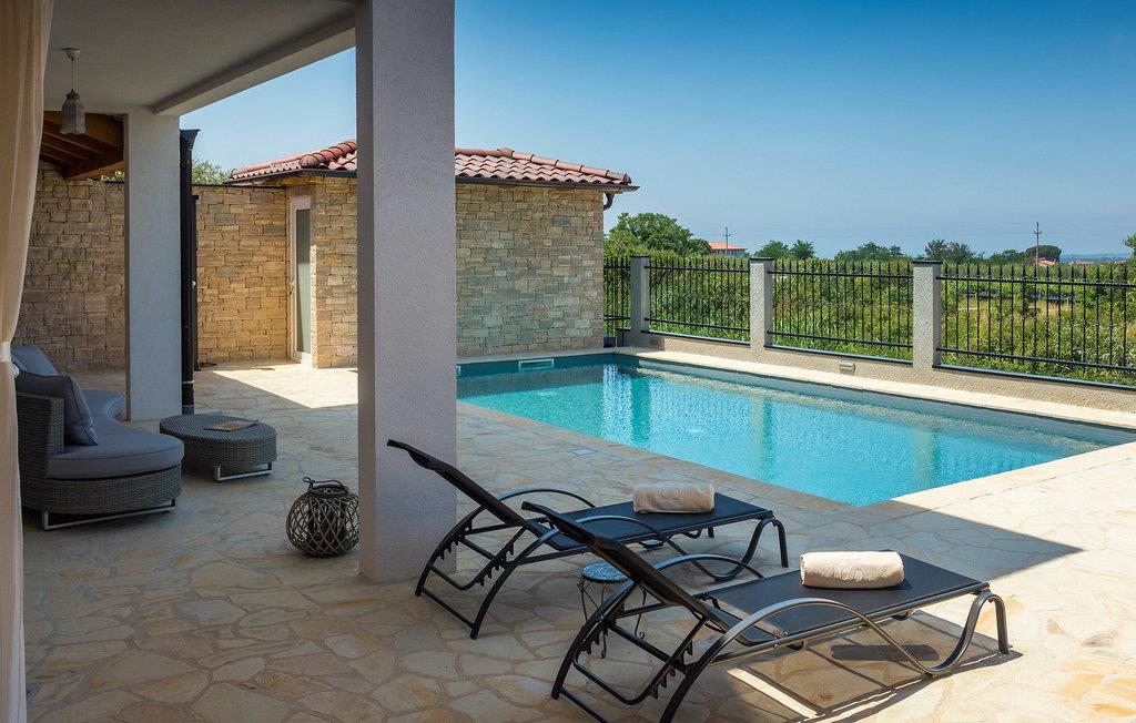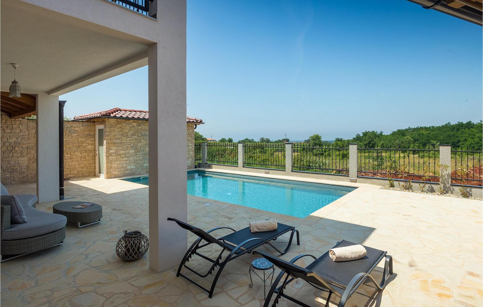 Denne skønne villa har en dejlig privat pool, en udendørs jacuzzi og en sauna - alt hvad du kan ønske dig til en afslappende ferie! Slap af på liggestolene ved siden af poolen eller nyd udendørs spisning lige ved siden af poolen. Villa Vespera vil glæde dig med sit smagfuldt indrettede interiør. I stueetagen er der et åbent koncept værelse opdelt i et fuldt udstyret køkken med spiseplads og en rummelig stue. Der er et smukt indrettet soveværelse med tilhørende badeværelse samt sauna i stueetagen, mens de resterende tre soveværelser og badeværelser er placeret på øverste etage. Alle værelser har aircondition og tv. Nyd din morgenkaffe med en let brise og en dejlig udsigt over omgivelserne på terrassen på villaens øverste etage. Book villa Vespera og sørg for at tilbringe en glædelig ferie nær Porec. Villaen ligger i en fredelig del af Porec, men alligevel kun en kort køretur fra byens centrum, og er bekvemt placeret for både dem, der foretrækker en afslappende ferie, såvel som for dem, der kan lide det hektiske i en turistby. I Porec kan du finde alle former for underholdning, fra sportsaktiviteter til restauranter, barer og natklubber. Da Porec er en tidligere romersk koloni, er byen mest kendt for sin rige kulturelle arv. Den betagende Euphrasius-basilika, som i øjeblikket er under Unescos beskyttelse, er sandsynligvis den bedste indikator for tidligere tiders herlighed. Middelalderbyerne Motovun og Groznjan samt kystbyerne Rovinj og Vrsar ligger kun en kort køretur væk. Hvis du er interesseret i at opdage fjernere dele af Istrien, kan Brijuni-øerne og det romerske amfiteater i Pula også nemt nås fra denne region.