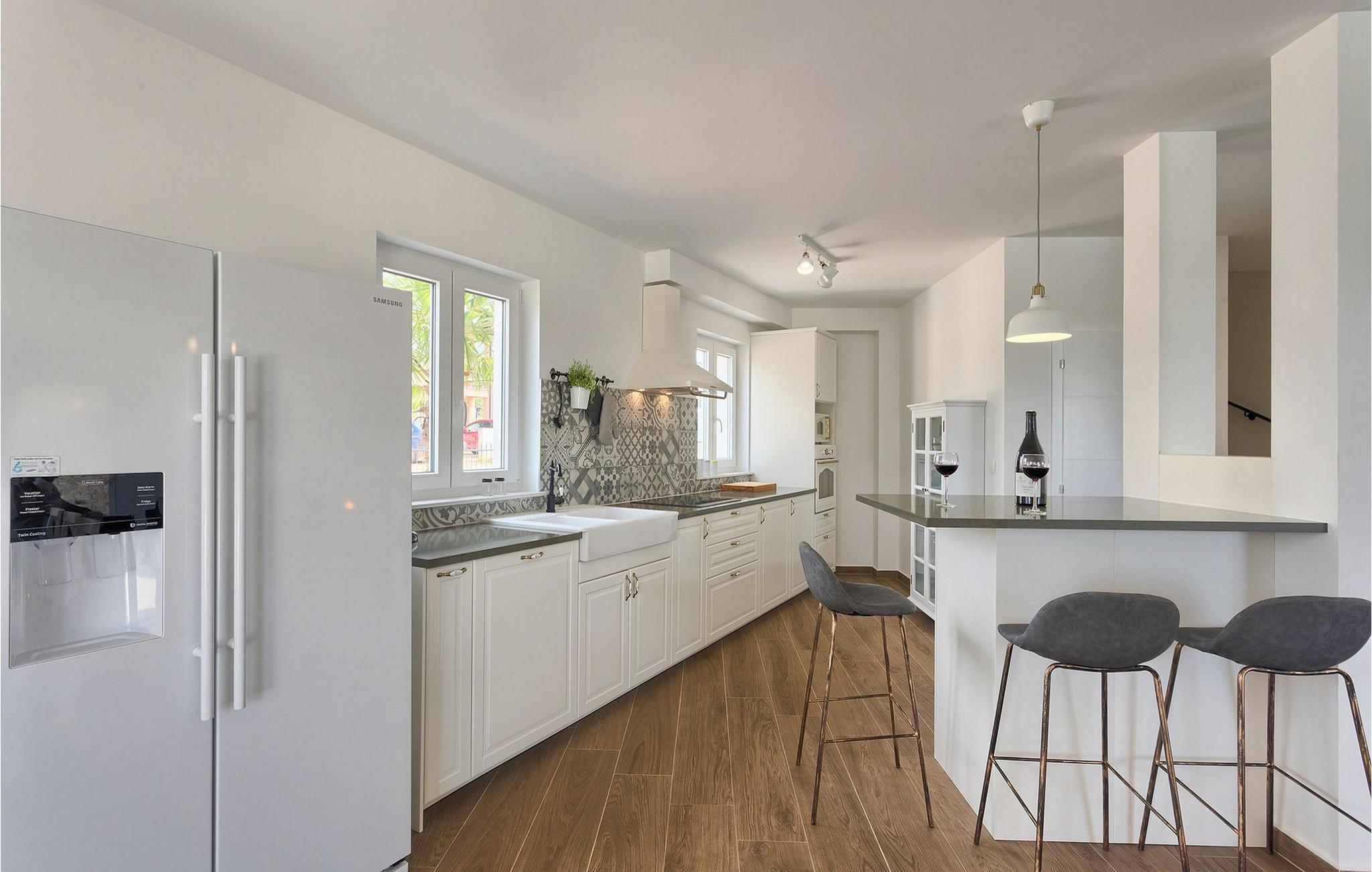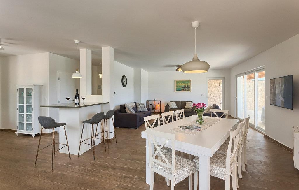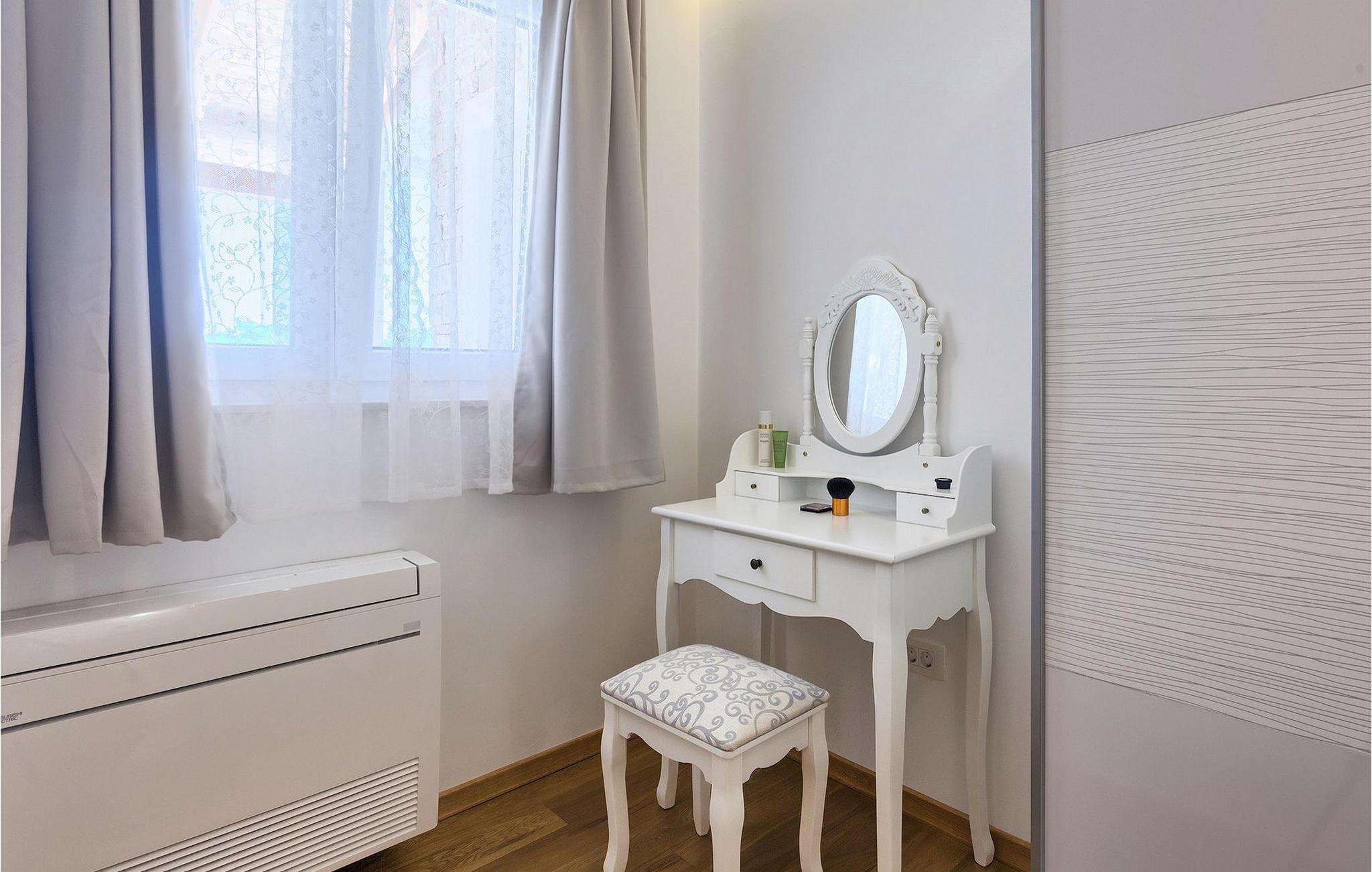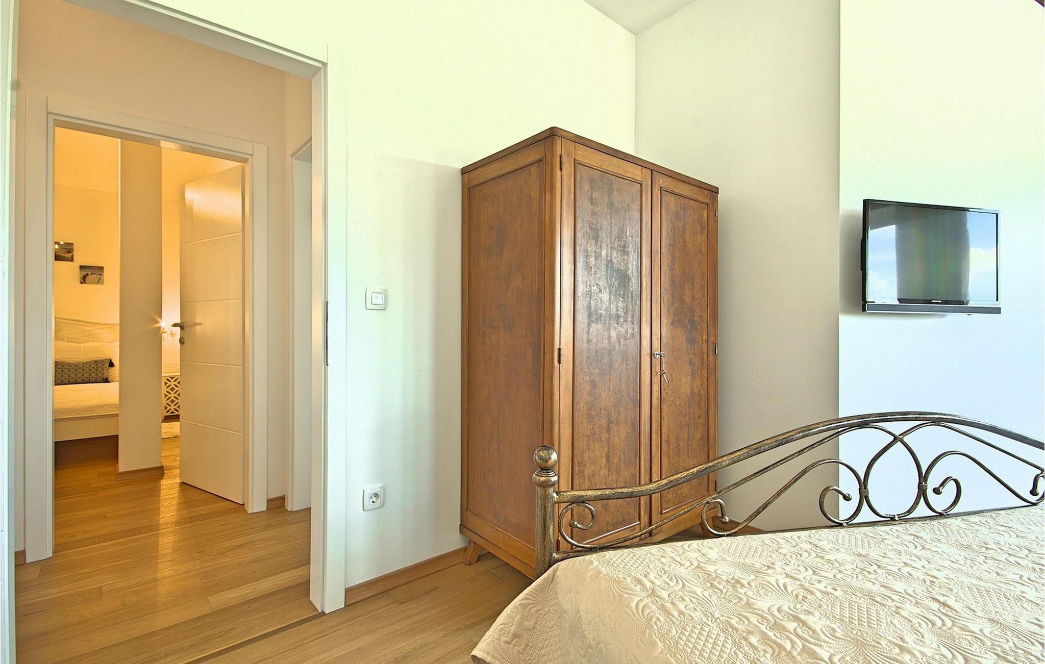 Denne skønne villa har en dejlig privat pool, en udendørs jacuzzi og en sauna - alt hvad du kan ønske dig til en afslappende ferie! Slap af på liggestolene ved siden af poolen eller nyd udendørs spisning lige ved siden af poolen. Villa Vespera vil glæde dig med sit smagfuldt indrettede interiør. I stueetagen er der et åbent koncept værelse opdelt i et fuldt udstyret køkken med spiseplads og en rummelig stue. Der er et smukt indrettet soveværelse med tilhørende badeværelse samt sauna i stueetagen, mens de resterende tre soveværelser og badeværelser er placeret på øverste etage. Alle værelser har aircondition og tv. Nyd din morgenkaffe med en let brise og en dejlig udsigt over omgivelserne på terrassen på villaens øverste etage. Book villa Vespera og sørg for at tilbringe en glædelig ferie nær Porec. Villaen ligger i en fredelig del af Porec, men alligevel kun en kort køretur fra byens centrum, og er bekvemt placeret for både dem, der foretrækker en afslappende ferie, såvel som for dem, der kan lide det hektiske i en turistby. I Porec kan du finde alle former for underholdning, fra sportsaktiviteter til restauranter, barer og natklubber. Da Porec er en tidligere romersk koloni, er byen mest kendt for sin rige kulturelle arv. Den betagende Euphrasius-basilika, som i øjeblikket er under Unescos beskyttelse, er sandsynligvis den bedste indikator for tidligere tiders herlighed. Middelalderbyerne Motovun og Groznjan samt kystbyerne Rovinj og Vrsar ligger kun en kort køretur væk. Hvis du er interesseret i at opdage fjernere dele af Istrien, kan Brijuni-øerne og det romerske amfiteater i Pula også nemt nås fra denne region.