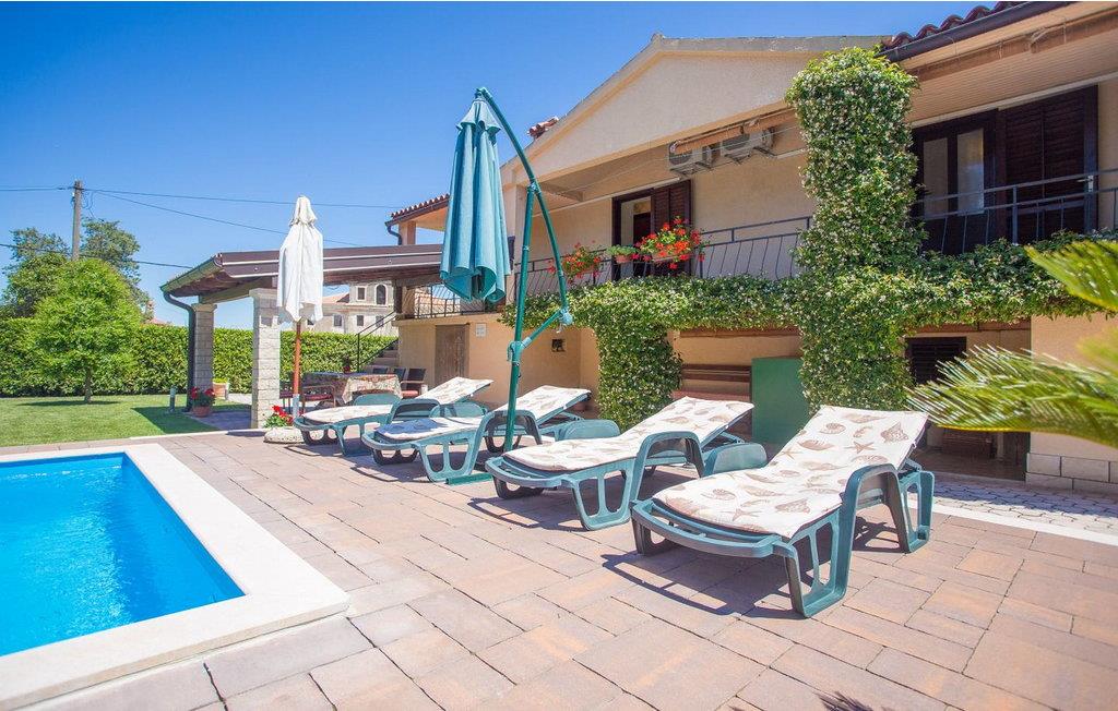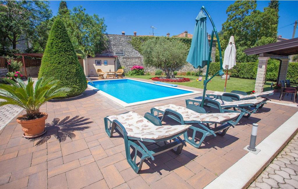 Villa Maria er et gammelt istrisk hus beliggende i centrum af stedet Tar, cirka 10 km fra Porec og 4 km fra turiststedet Lanterna. Huset er bygget i 1915 og totalrenoveret i 2013. På egen lukket grund på 530 kvm med smuk udsigt til klokketårnet til den nærliggende kirke, har gæsterne følgende udendørs faciliteter til rådighed: åben pool på 24 kvm, overdækket terrasse med siddemøbler, grill og parkeringsplads til 2 køretøjer, hvor den ene del er overdækket. Sommerhus til 4 gæster med samlet boligareal på 91 kvm består af to etager. I stueetagen er der opholdsstue med spisebord, veludstyret køkken, separat toilet. På første sal er der et soveværelse med dobbeltseng med to separate senge, et soveværelse med dobbeltseng og udgang til stor altan, bad/toilet. Adgang til første sal er også mulig udefra. BEMÆRK: Gæster har gratis adgang til feriestedet Lanterna under deres ophold. Bemærk venligst, at denne ejendom ikke accepterer ungdomsgrupper eller polterabends. En ungdomsgruppe på denne ejendom er en gruppe bestående af personer på 26 år eller derunder. Book ikke denne ejendom, hvis du er en ungdomsgruppe eller et polterabend, da din reservation vil blive afvist efter booking, hvilket kan omfatte ved ankomst til ejendommen eller under dit ophold, og du vil ikke blive refunderet.