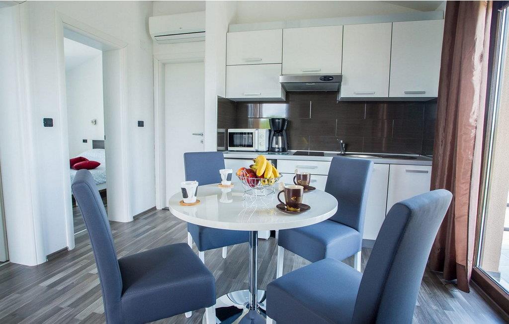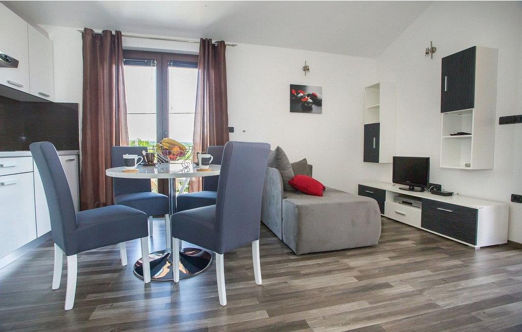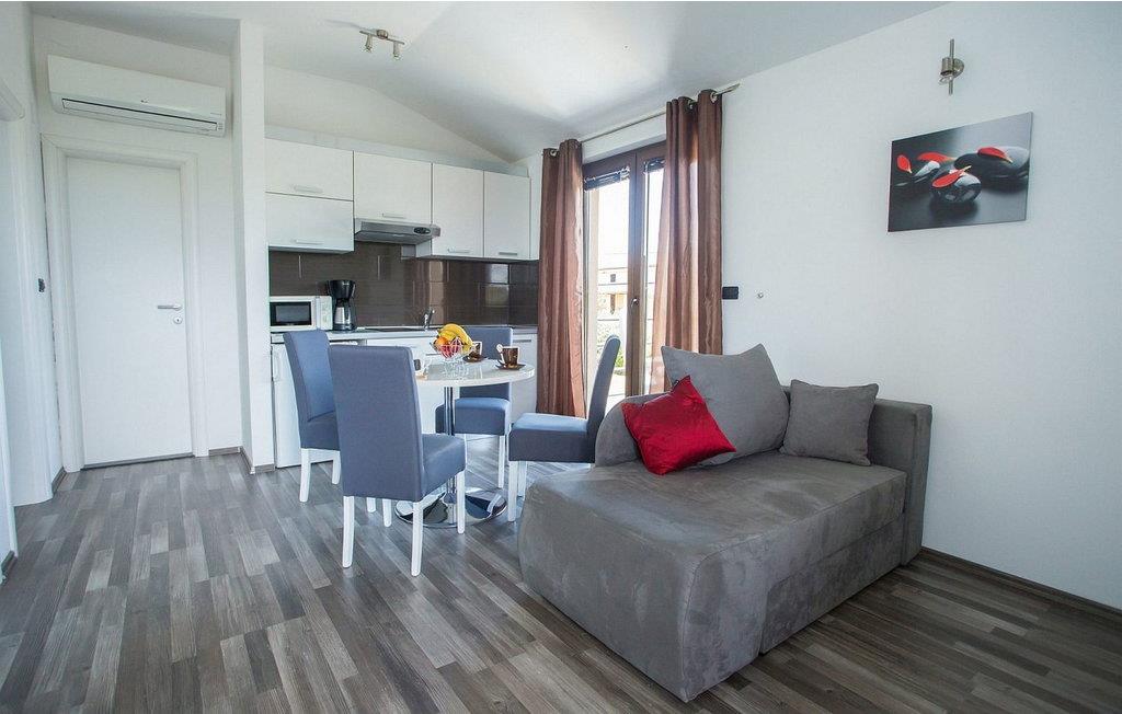 Velkommen til Apartments Milena, to charmerende ferielejligheder til hver 4 gæster, beliggende i den ene halvdel af et dobbelthus i den rolige landsby Perci. Den anden halvdel af huset er hjemsted for de imødekommende ejere, der sikrer et varmt og gæstfrit ophold. Oprindeligt bygget i 2009 og omhyggeligt renoveret i 2016, tilbyder disse lejligheder et moderne og komfortabelt tilflugtssted kun 10 km fra den livlige by Porec og 5,5 km fra den nærmeste strand. Gæster på Apartments Milena har adgang til en rummelig grund på 1000 m² med en fælles terrasse med grill - ideel til udendørs spisning - og privat parkering for op til fire biler. Familier med børn vil sætte pris på den nærliggende legeplads, som giver et sikkert og sjovt sted for de små at lege. Milena 2 lejligheden på første sal i huset byder på et hyggeligt og indbydende rum med et samlet boligareal på 42 m². Denne lejlighed har en komfortabel opholdsstue med adgang til en privat balkon, perfekt til at nyde din morgenkaffe eller en aftendrink. Rummet har et spisebord og et veludstyret køkken, hvilket gør det nemt at tilberede og nyde måltider under dit ophold. Begge dobbeltværelser deler en anden balkon, hvilket giver ekstra udendørs plads til at slappe af og nyde de rolige omgivelser. Bemærk venligst, at denne ejendom ikke accepterer ungdomsgrupper eller polterabender. En ungdomsgruppe på denne ejendom består af personer på 26 år eller derunder.
