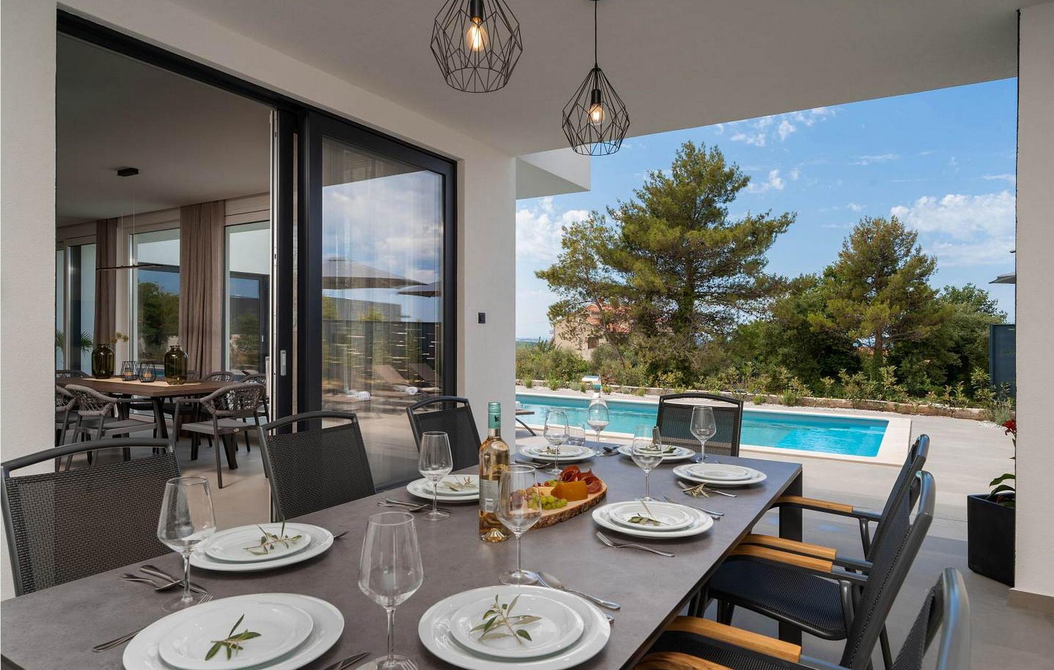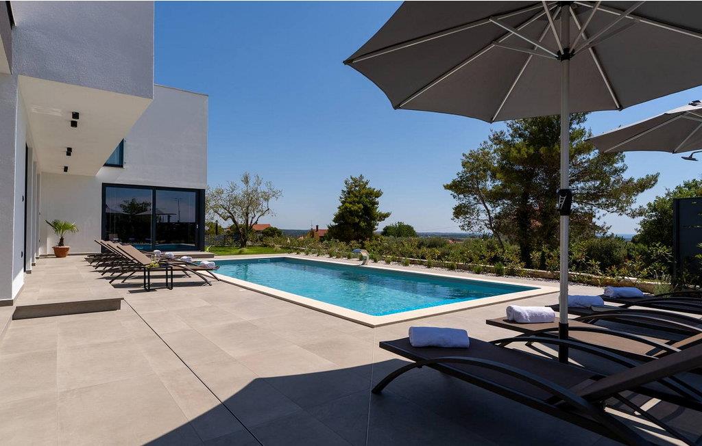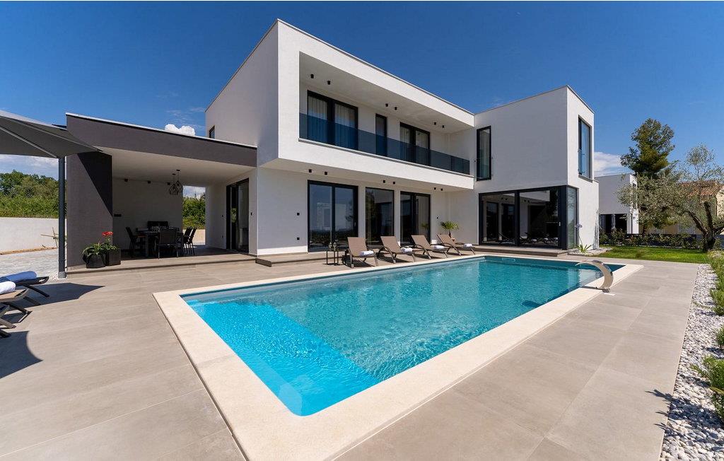 Villa Tonka er et moderne feriehus kun 3 km fra det glitrende Adriaterhav. Villaens udendørs område er designet til afslapning og har en forfriskende saltvandspool, liggestole og en overdækket terrasse med spisebord og grill, perfekt til at nyde al fresco måltider. Indvendigt udstråler villaen komfort og stil på to etager med aircondition. Stueetagen byder dig velkommen med en rummelig stue, fuldt udstyret køkken og spiseplads, alle udstyret med moderne bekvemmeligheder for at sikre et glat ophold. Ovenpå tilbyder soveværelserne privatliv og komfort, hver udstyret med eget badeværelse og tv, hvilket skaber et roligt tilflugtssted for afslappende nætter. Praktisk placeret, en butik, tankstation, restaurant og hæveautomat er kun få meter væk. Villaen er beliggende på den vestlige side af halvøen Istrien, mellem de charmerende turistcentre Porec og Novigrad, og er ideelt placeret for at udforske regionen. Dette område er kendt for at producere noget af den bedste olivenolie i Europa og inviterer dig til at opdage dens rige kulturarv. Porec byder på et væld af historiske skatte og mulighed for en-dags bådture, selv til Venedig. Novigrad er berømt for sit uberørte, rene hav - et af de bedste i Middelhavet. Villa Tonka kombinerer moderne komfort med en bekvem beliggenhed, hvilket gør den til det perfekte valg til din næste ferie. Bemærk venligst, at denne ejendom ikke accepterer ungdomsgrupper eller polterabender. En ungdomsgruppe på denne ejendom består af personer på 26 år eller derunder.