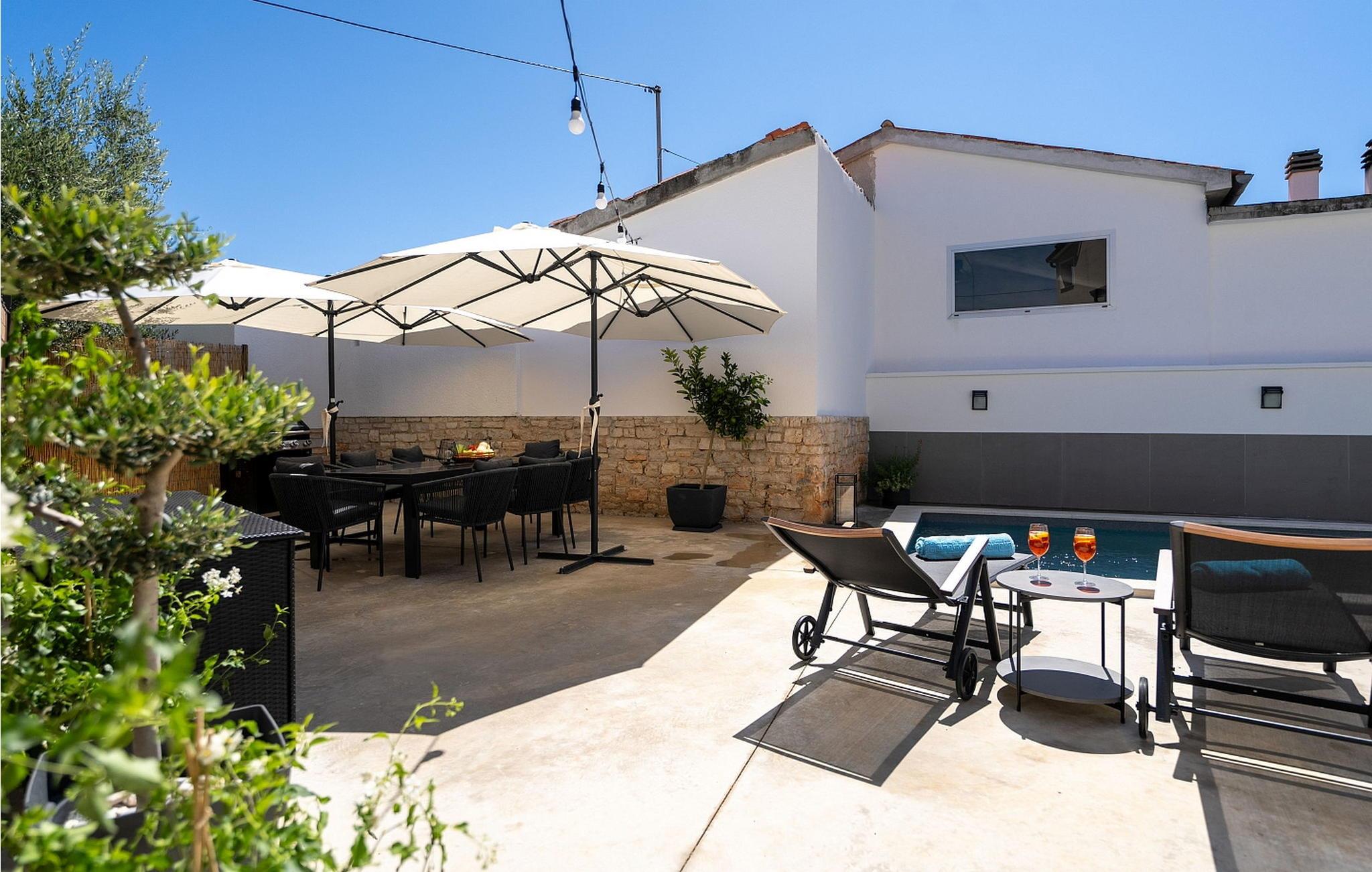Apartment Larisa er beliggende i et familiehus i centrum af stedet Tar, cirka 10 km fra Porec og 4 km fra turiststedet Lanterna. Stedet Tar ligger halvvejs mellem Novigrad og Porec. Ca. 3 km fra Tar ligger feriestedet Lanterna med smukke stenstrande og sportsfaciliteter. I umiddelbar nærhed er der butik, restaurant, hæveautomat, kaffebarer, apotek og tankstation. På egen lukket grund på 200 kvm har gæsterne brug af en swimmingpool på 25 kvm, terrasse med siddemøbler og spisebord, grill og parkeringsplads til 2 biler. Lejlighed Larisa til 4-6 gæster med et samlet boligareal på 70 kvm ligger på husets første sal. Den består af fuldt udstyret køkken, opholdsstue med sovesofa til to gæster, spiseplads, badeværelse og to soveværelser, hvorfra det ene har adgang til balkonen. Lejligheden er fuldt airconditioneret. BEMÆRK: Gæster har gratis adgang til feriestedet Lanterna under deres ophold. Bemærk venligst, at denne ejendom ikke accepterer ungdomsgrupper eller polterabends. En ungdomsgruppe på denne ejendom er en gruppe bestående af personer på 26 år eller derunder. Book ikke denne ejendom, hvis du er en ungdomsgruppe eller et polterabend, da din reservation vil blive afvist efter booking, hvilket kan omfatte ved ankomst til ejendommen eller under dit ophold, og du vil ikke blive refunderet.