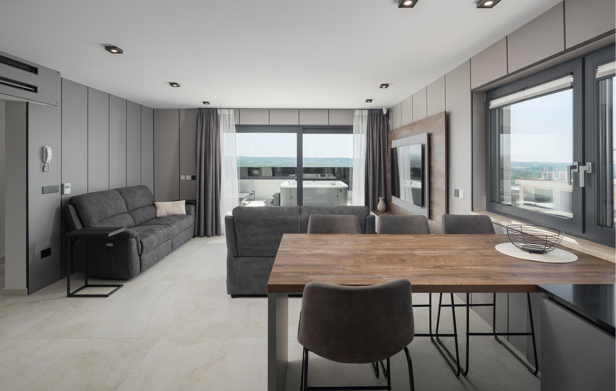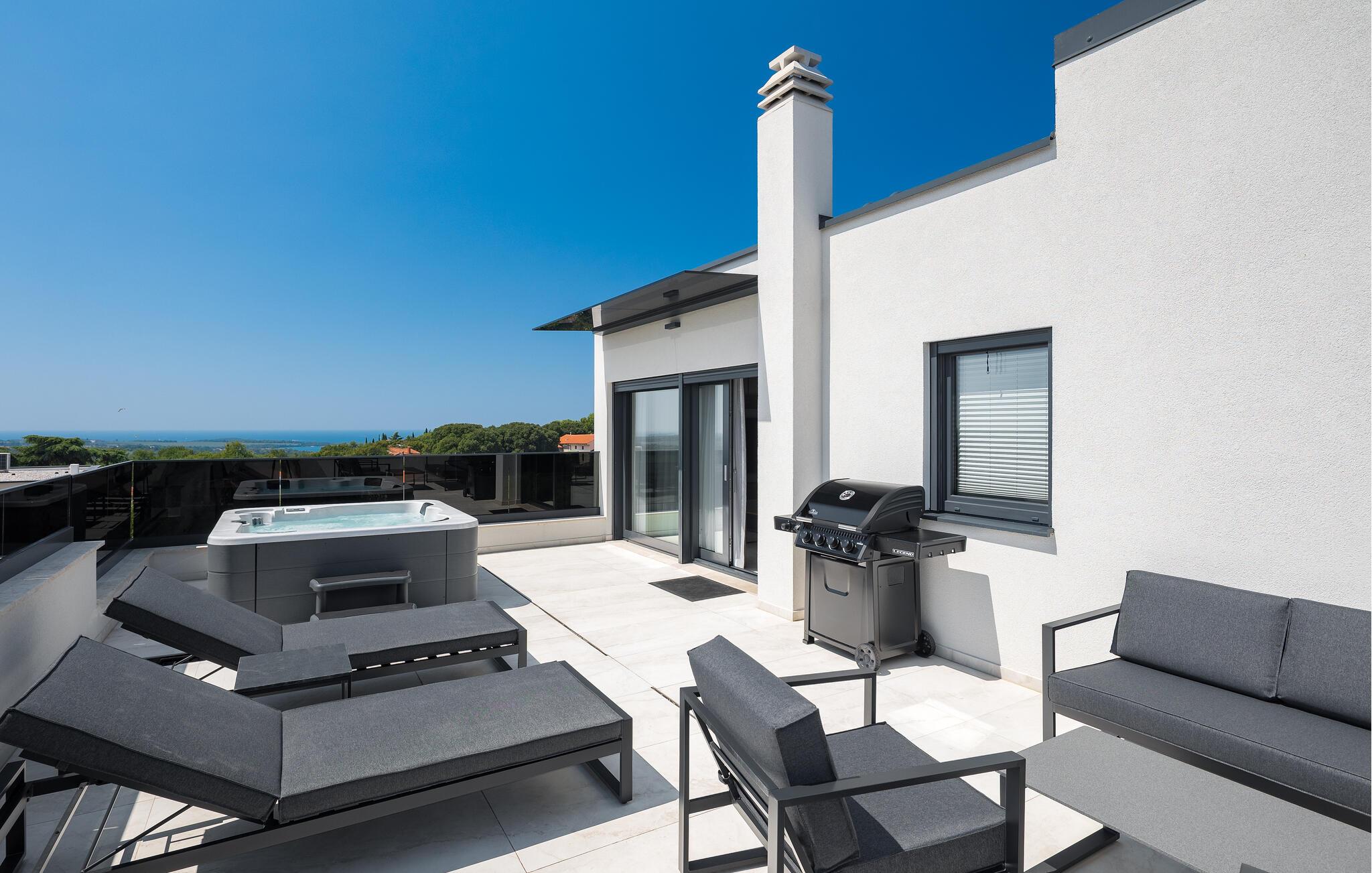 Nyd en uforglemmelig ferie i denne luksuriøse ferielejlighed med spabad på tagterrassen og panoramaudsigt.