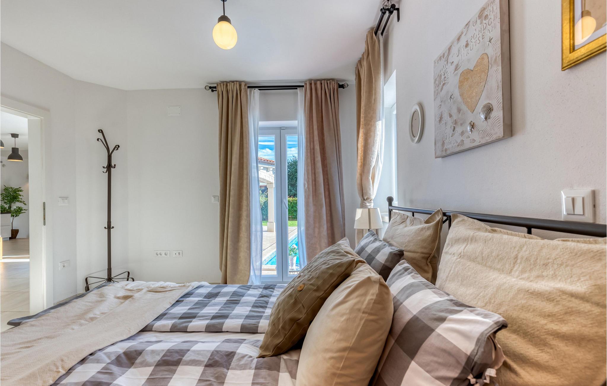 den lille landsby Tar, nær byen Porec, på Istriens halvøs vestkyst, ligger den smukke villa Torre II. Med talrige underholdningsmuligheder i umiddelbar nærhed er denne rustikke villa et ideelt valg for familie og venner i det mest besøgte feriested i Istrien. Villa Torre II tilbyder overnatning til 6 gæster i tre luftige, airconditionerede soveværelser, mens en komfortabel sovesofa er tilgængelig for yderligere to gæster. Hvert soveværelse har eget badeværelse med bruseniche. To en-suite soveværelser er placeret på villaens øverste etage, mens det tredje en-suite soveværelse med separat toilet er bekvemt placeret i den solbeskinnede stueetage. Den smukt designede stueetage i åbent plan består også af en lobby, et fuldt udstyret køkken med spiseplads og en komfortabel stue udstyret med satellit-tv og stereoanlæg. De rustikke og minimalistiske detaljer harmonerer perfekt med udsmykningen af Villa Torre IIs interiør, hvilket skaber et behageligt opholdsrum, mens skønheden i det ydre forstærkes af de iøjnefaldende blå persienner. Den 650 m² store have er fuldt indhegnet med en 170 cm høj hæk og har en smuk swimmingpool (24 m²) til dem, der leder efter daglige forfriskning, liggestole til solbadning, et udendørs spisebord og en stor kulgrill. Villaens tilbud inkluderer 2 private parkeringspladser. Den charmerende Villa Torre II lover en sjov ferie for alle. Porec Riviera er rig på smukke strande, taverner og restauranter, natklubber og barer. Fritidsentusiaster vil glæde sig over det brede udvalg af sportsgrene, der tilbydes, mens vinelskere blandt jer har mulighed for at forkæle deres ganer med de bedste vine i regionen. Istrien betragtes med rette som en yderst attraktiv turistdestination, der fortryller mennesker fra hele verden med sin ekstremt rige kulturarv, historie, talrige monumenter og betagende landskaber og natur. Kæledyr er tilladt på denne ejendom efter ejerens skøn eller mod et gebyr.