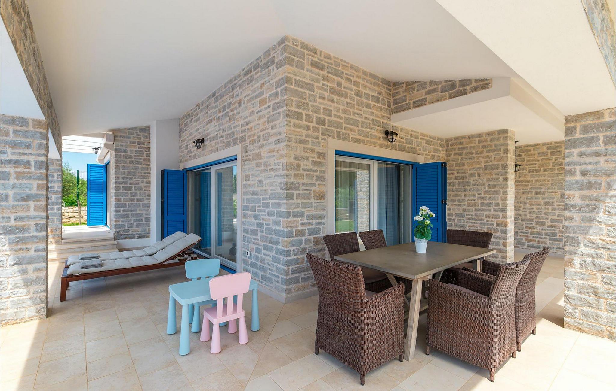 Udeområdet er kendetegnet ved en pool og en overdækket spiseplads. Poolen har to områder - det dybere til svømning og det lavvandede med hydromassage. Hvis du er fan af at grille, er der en kulgrill til din rådighed. Nyd dejlige istriske sommernætter på denne dejlige terrasse og forkæl dig selv med et lækkert måltid eller et glas kold drik. Dette nybyggede feriehus ligger i landsbyen Tar nær Porec. Kun 2,5 km fra stranden har den en flot havudsigt. Tar-Vabriga-området byder på kulturelle og turistmæssige begivenheder (f.eks. æselræs).