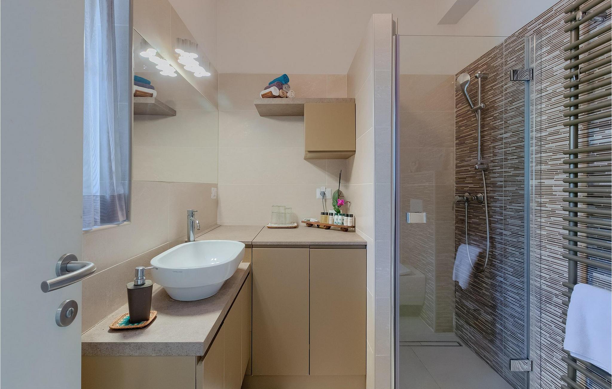 Badezimmer (nr. 1) - WC. Warmes und kaltes Wasser. Dusche