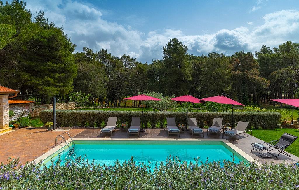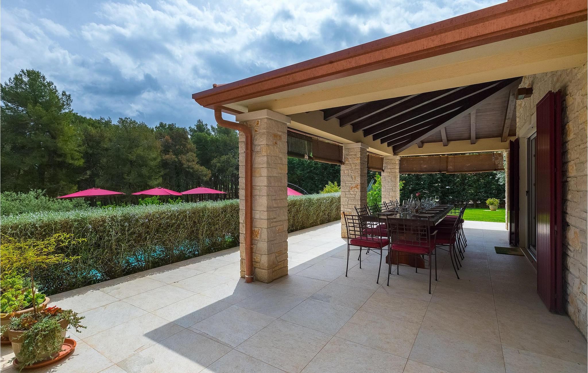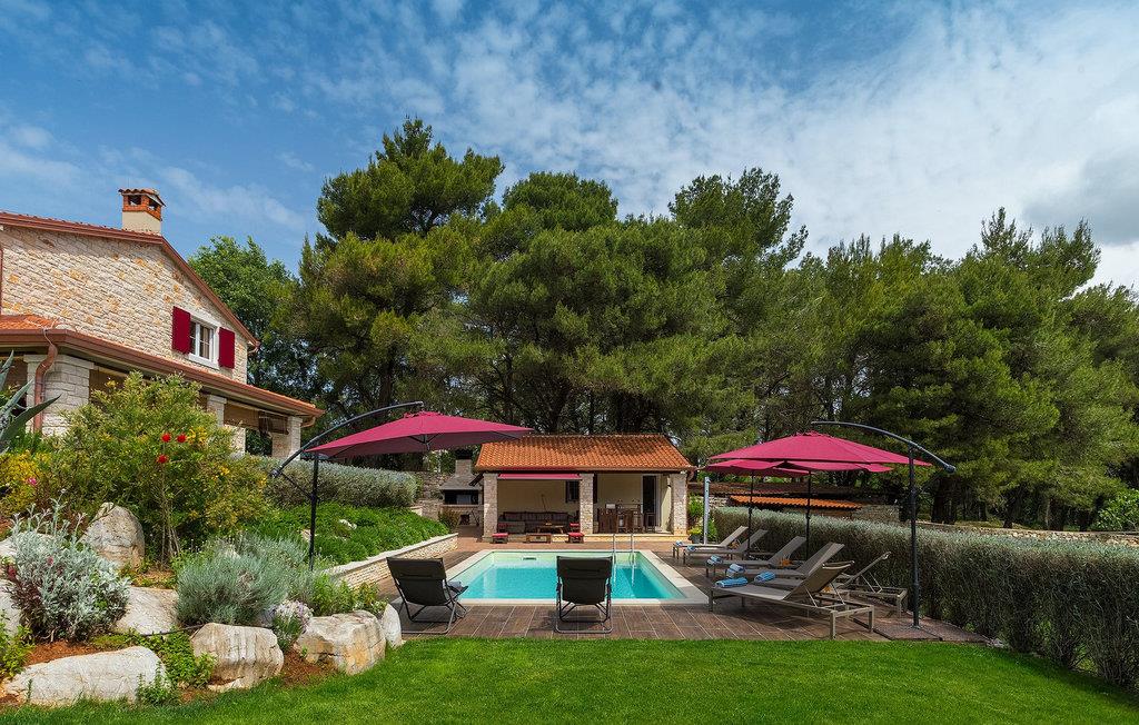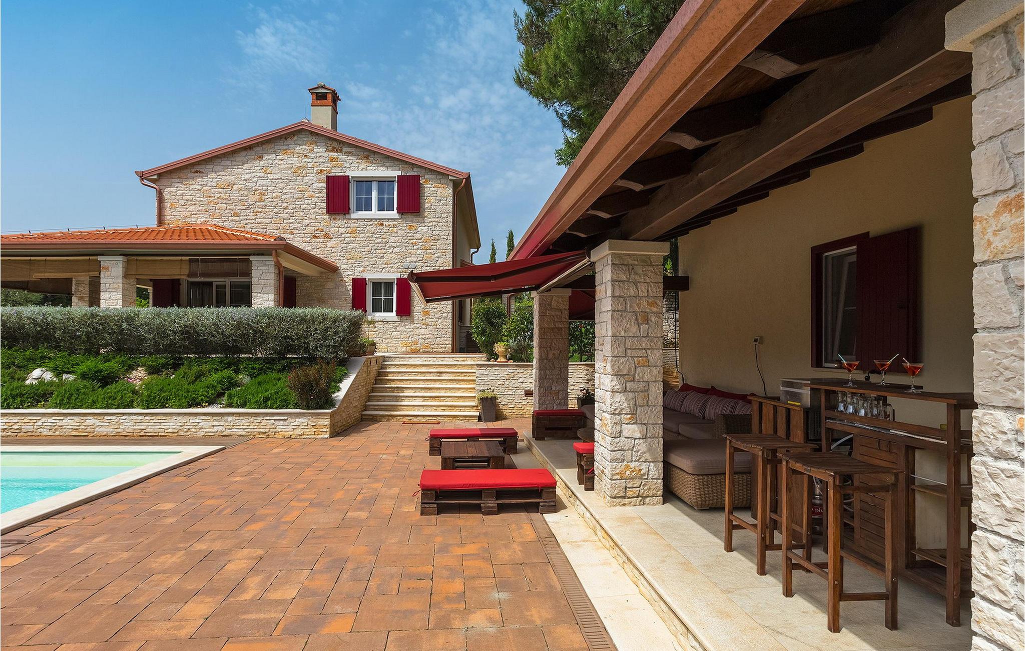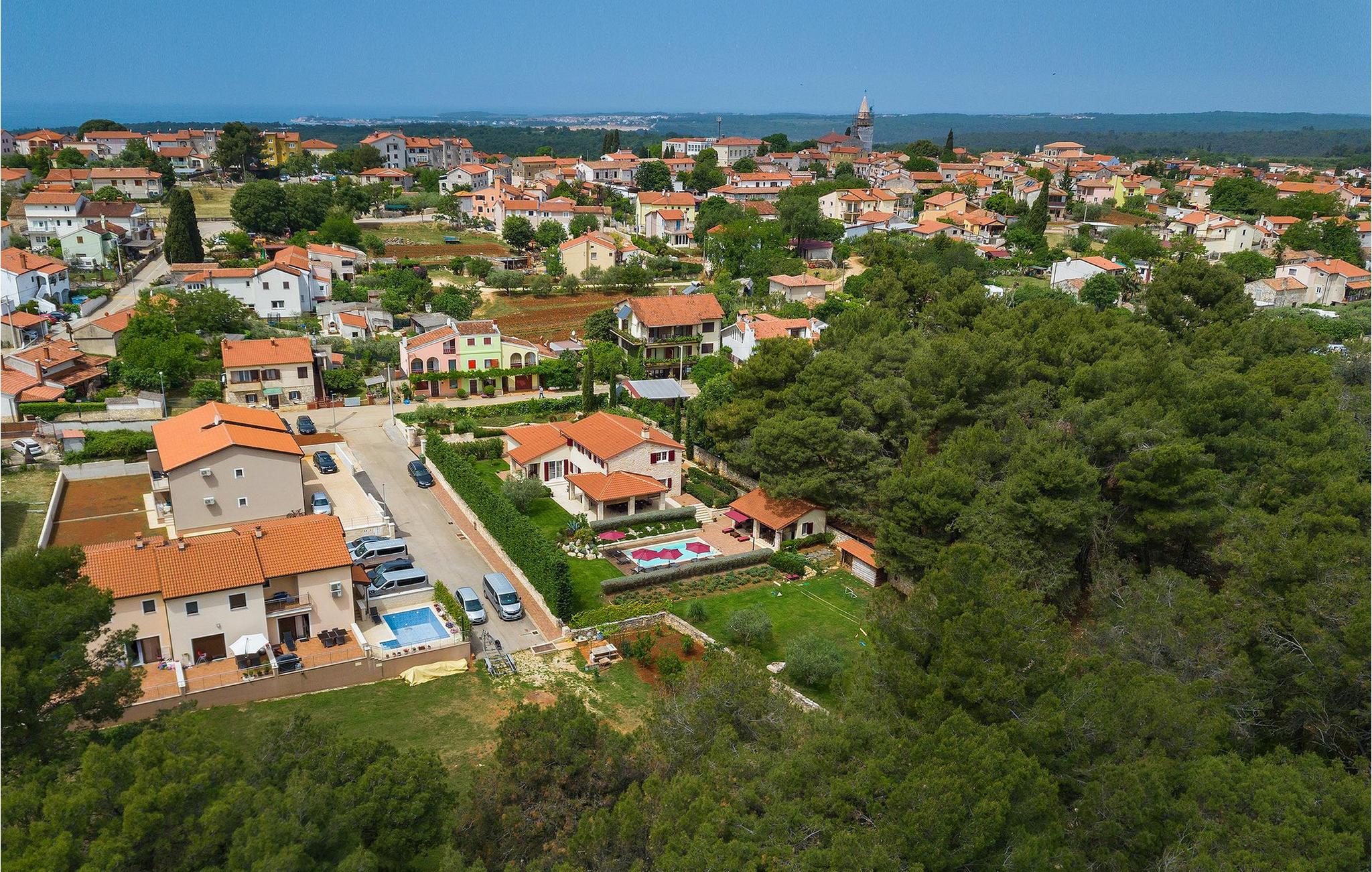 Die Villa Eda ist eine wunderschöne, charmante Familienvilla mit äußerst einladendem Außen- und Innenbereich. Die Villa ist von einem 1950 m2 großen Garten umgeben mit einem privaten Pool im Zentrum. Die Villa ist ideal für Gruppen von zwei oder drei Familien, da sie bis zu 14 Personen beherbergen kann. Auf dem Anwesen befinden sich zwei Häuser, wobei das kleinere, das neben dem Pool ist, ideal für diejenigen Gäste ist, die ihre Privatsphäre besonders schätzten. Insgesamt verfügt die Villa über 4 Schlafzimmer und 4 Badezimmer. Neben dem Pool befindet sich auch die Sommerküche, in der Sie grillen oder einfache Mahlzeiten zubereiten können. Obwohl Ihnen alles, was man brauchen könnte, in der Villa zur Verfügung steht, sind Restaurants, Strände und Bars nur 2 km von der Villa entfernt.Dieses wunderschöne Ferienhaus befindet sich in der Ortschaft Tar-Vabriga bei Porec. Die Villa ist nur 2 km vom Strand entfernt. Tar-Vabriga bietet Kultur- und Freizeitveranstaltungen (z.B. Eselrennen). Während Ihres Aufenthaltes besuchen Sie die Euphrasius-Basilika (Unesco Kulturerbe) in der Kultur- und Altstadt Porec. Višnjan (11 km von Porec entfernt) ist eine kleine Stadt auf einem Hügel, umgeben von Wäldern, bekannt für das international berühmte astronomische Observatorium.