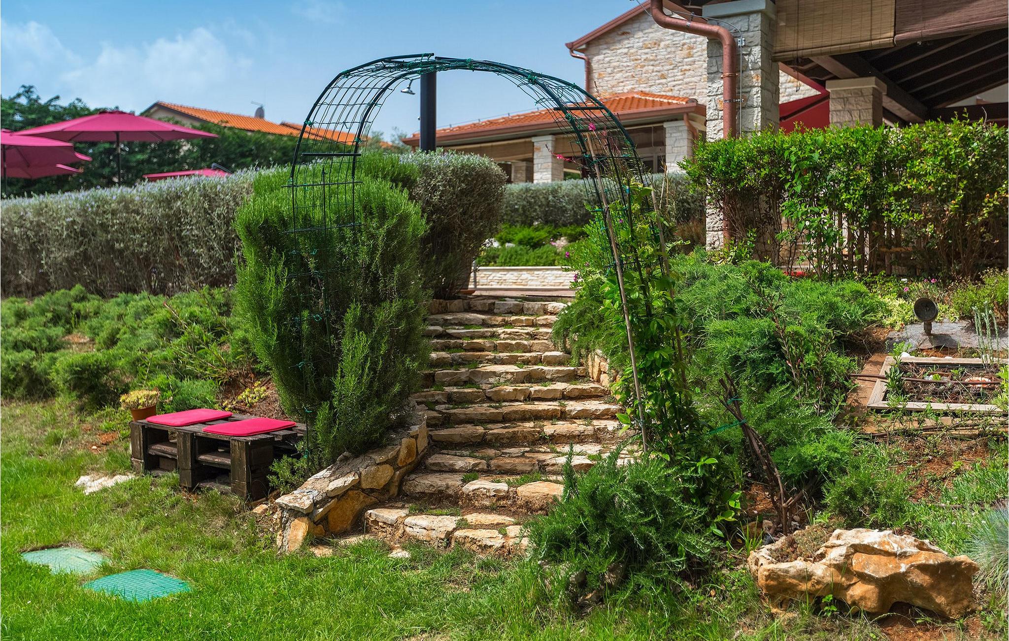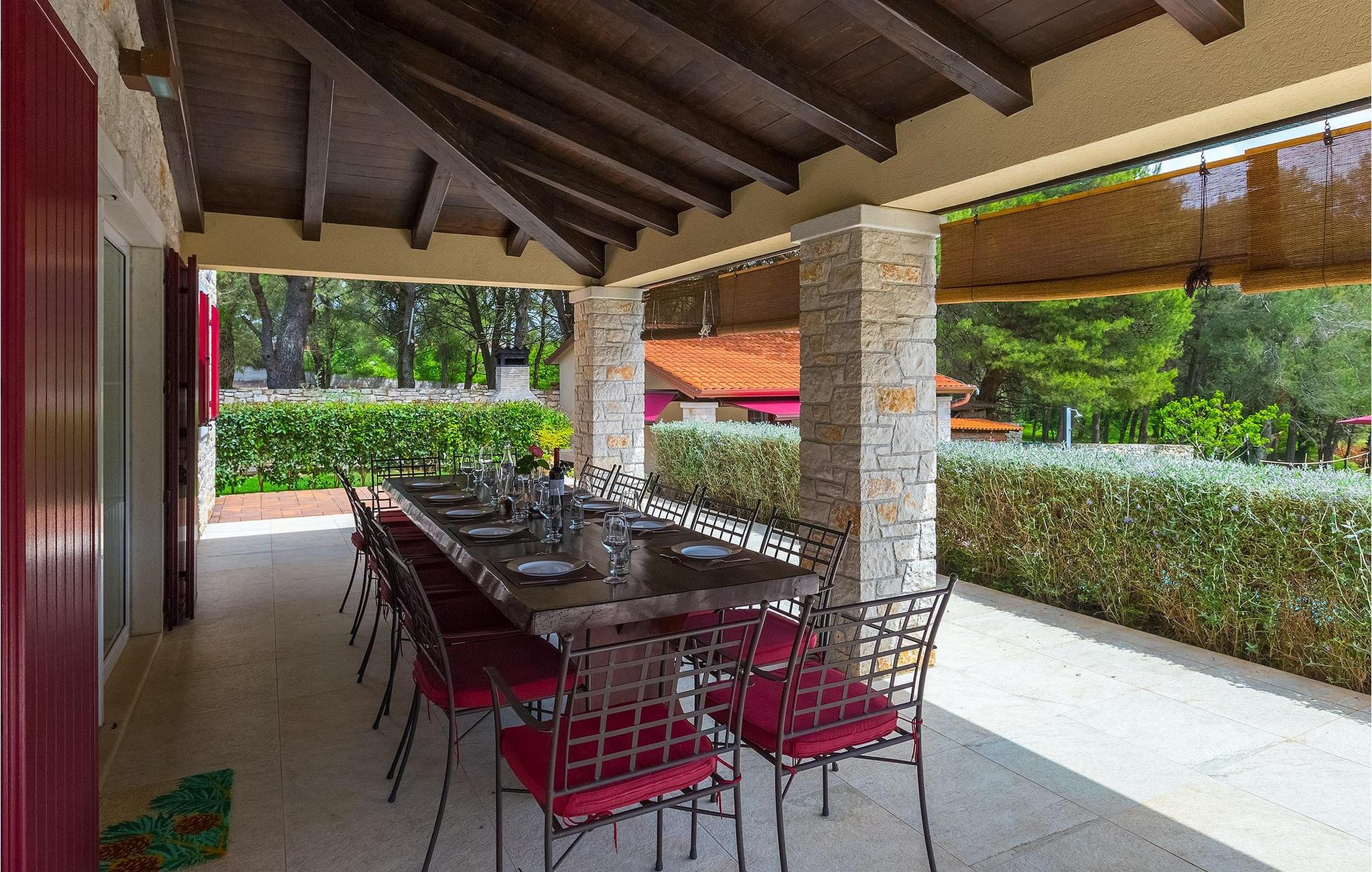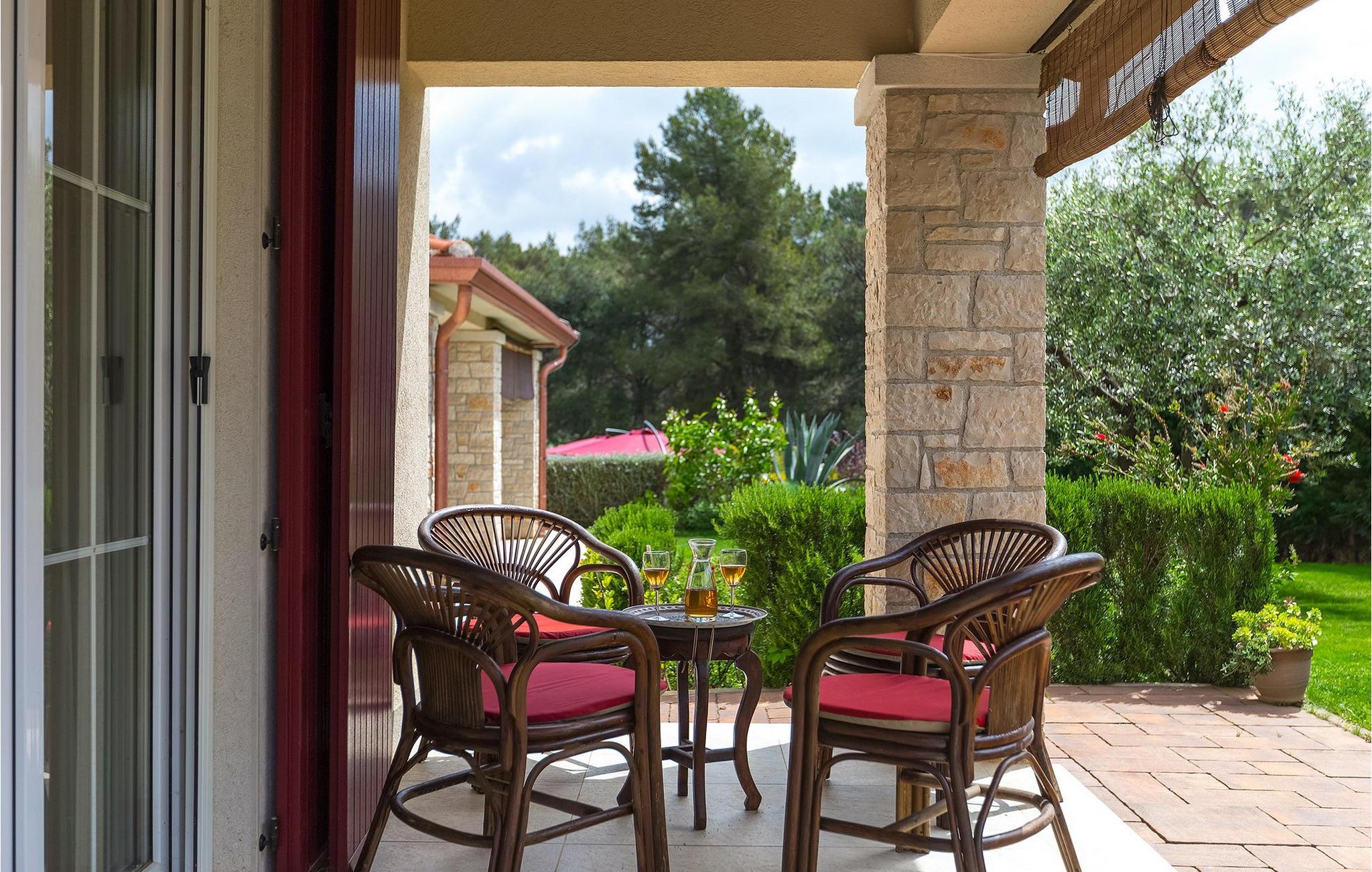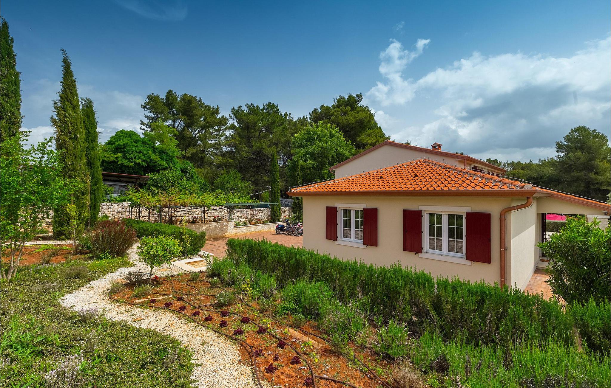 Die Villa Eda ist eine wunderschöne, charmante Familienvilla mit äußerst einladendem Außen- und Innenbereich. Die Villa ist von einem 1950 m2 großen Garten umgeben mit einem privaten Pool im Zentrum. Die Villa ist ideal für Gruppen von zwei oder drei Familien, da sie bis zu 14 Personen beherbergen kann. Auf dem Anwesen befinden sich zwei Häuser, wobei das kleinere, das neben dem Pool ist, ideal für diejenigen Gäste ist, die ihre Privatsphäre besonders schätzten. Insgesamt verfügt die Villa über 4 Schlafzimmer und 4 Badezimmer. Neben dem Pool befindet sich auch die Sommerküche, in der Sie grillen oder einfache Mahlzeiten zubereiten können. Obwohl Ihnen alles, was man brauchen könnte, in der Villa zur Verfügung steht, sind Restaurants, Strände und Bars nur 2 km von der Villa entfernt.Dieses wunderschöne Ferienhaus befindet sich in der Ortschaft Tar-Vabriga bei Porec. Die Villa ist nur 2 km vom Strand entfernt. Tar-Vabriga bietet Kultur- und Freizeitveranstaltungen (z.B. Eselrennen). Während Ihres Aufenthaltes besuchen Sie die Euphrasius-Basilika (Unesco Kulturerbe) in der Kultur- und Altstadt Porec. Višnjan (11 km von Porec entfernt) ist eine kleine Stadt auf einem Hügel, umgeben von Wäldern, bekannt für das international berühmte astronomische Observatorium.