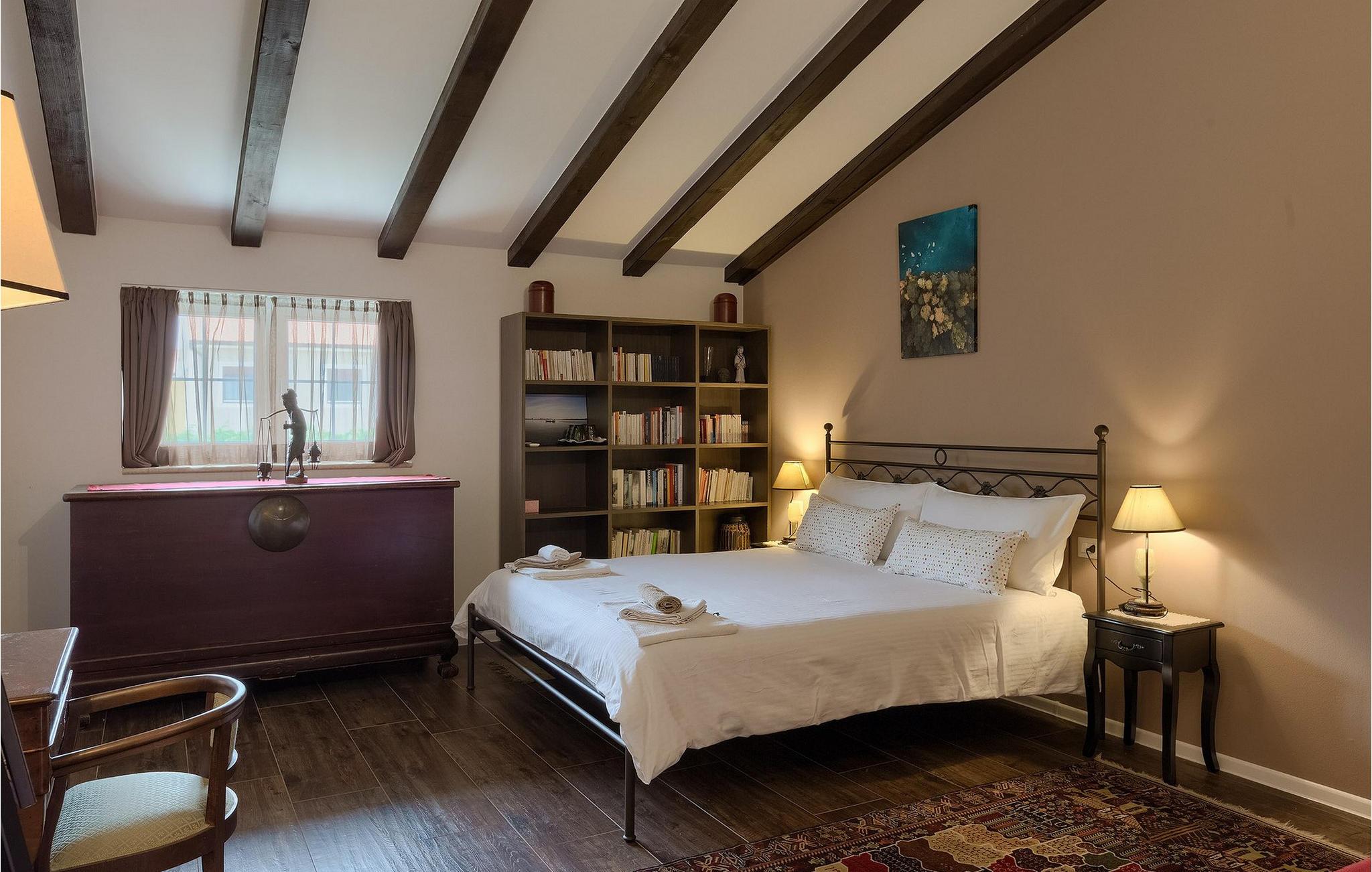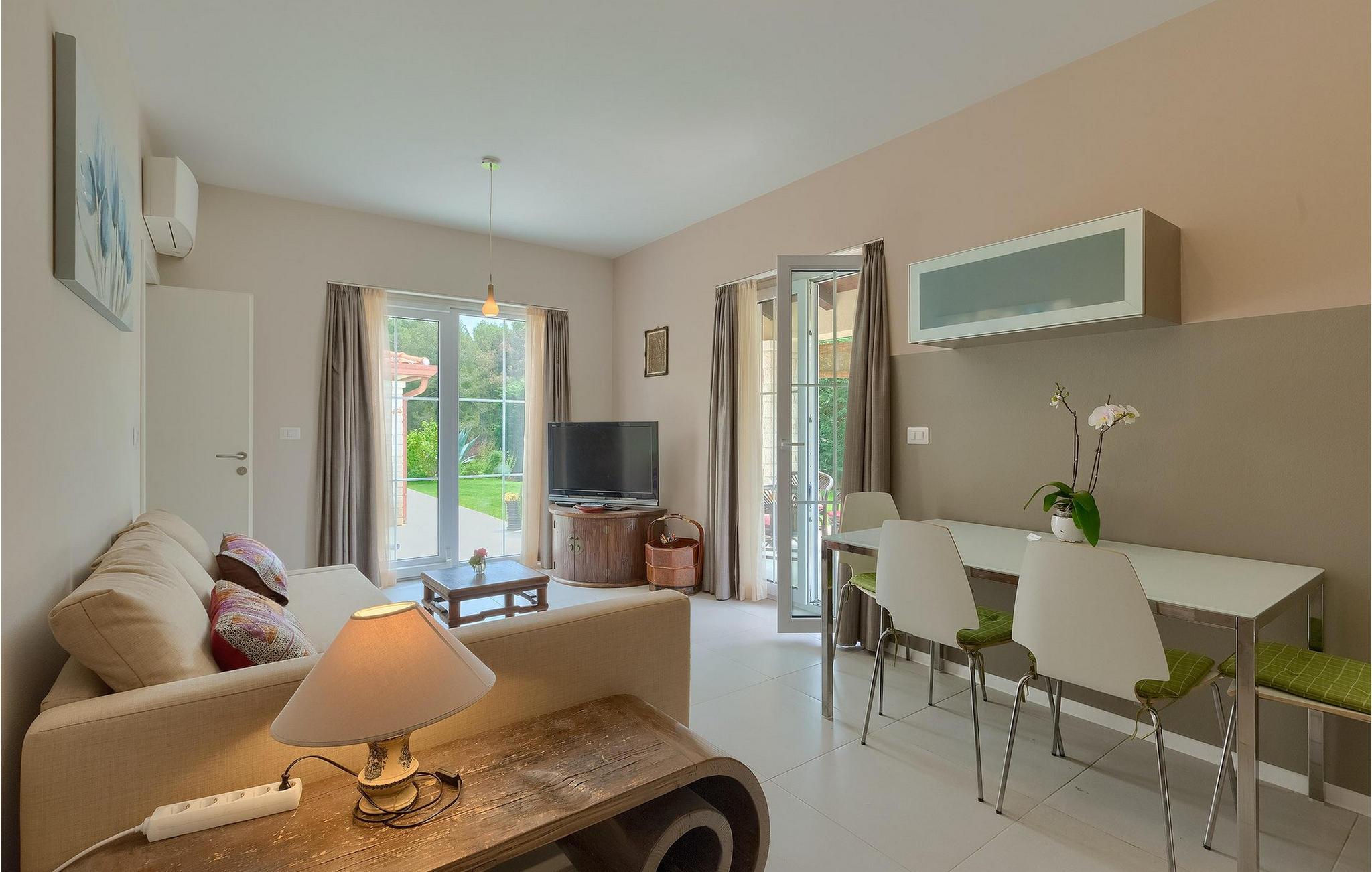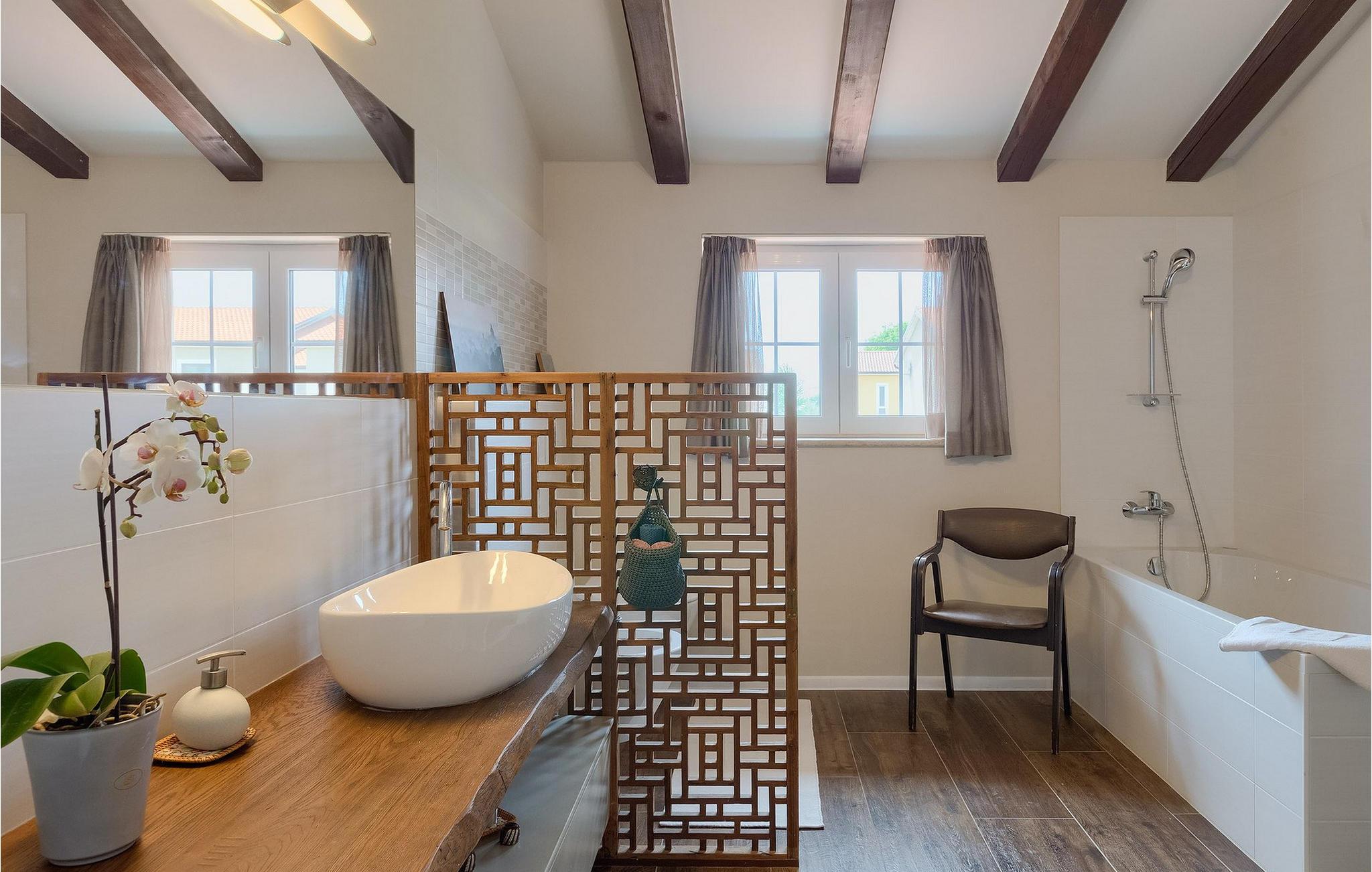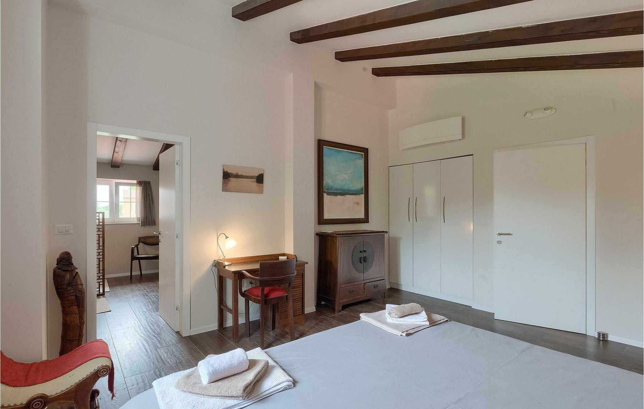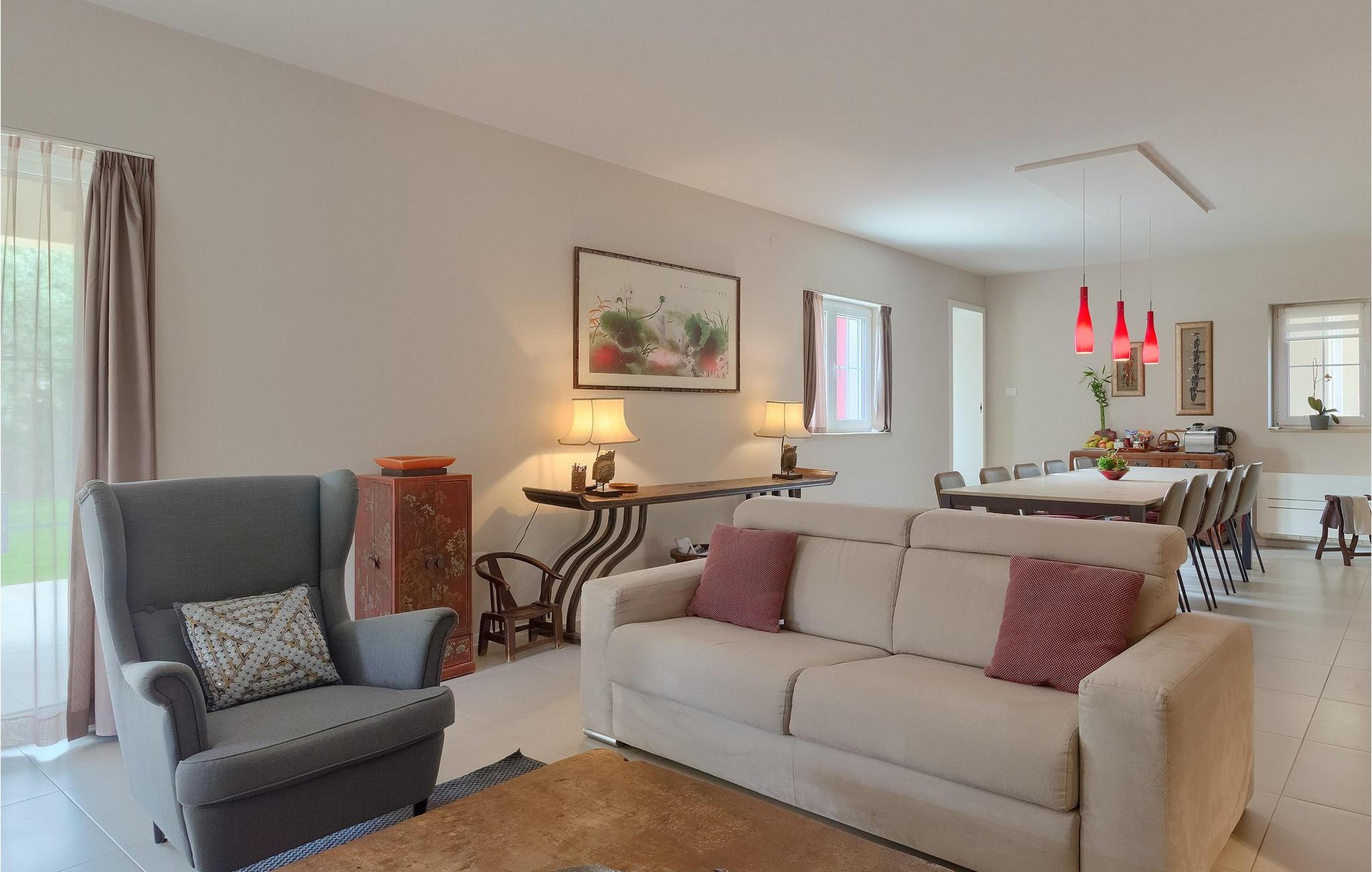 Die Villa Eda ist eine wunderschöne, charmante Familienvilla mit äußerst einladendem Außen- und Innenbereich. Die Villa ist von einem 1950 m2 großen Garten umgeben mit einem privaten Pool im Zentrum. Die Villa ist ideal für Gruppen von zwei oder drei Familien, da sie bis zu 14 Personen beherbergen kann. Auf dem Anwesen befinden sich zwei Häuser, wobei das kleinere, das neben dem Pool ist, ideal für diejenigen Gäste ist, die ihre Privatsphäre besonders schätzten. Insgesamt verfügt die Villa über 4 Schlafzimmer und 4 Badezimmer. Neben dem Pool befindet sich auch die Sommerküche, in der Sie grillen oder einfache Mahlzeiten zubereiten können. Obwohl Ihnen alles, was man brauchen könnte, in der Villa zur Verfügung steht, sind Restaurants, Strände und Bars nur 2 km von der Villa entfernt.Dieses wunderschöne Ferienhaus befindet sich in der Ortschaft Tar-Vabriga bei Porec. Die Villa ist nur 2 km vom Strand entfernt. Tar-Vabriga bietet Kultur- und Freizeitveranstaltungen (z.B. Eselrennen). Während Ihres Aufenthaltes besuchen Sie die Euphrasius-Basilika (Unesco Kulturerbe) in der Kultur- und Altstadt Porec. Višnjan (11 km von Porec entfernt) ist eine kleine Stadt auf einem Hügel, umgeben von Wäldern, bekannt für das international berühmte astronomische Observatorium.