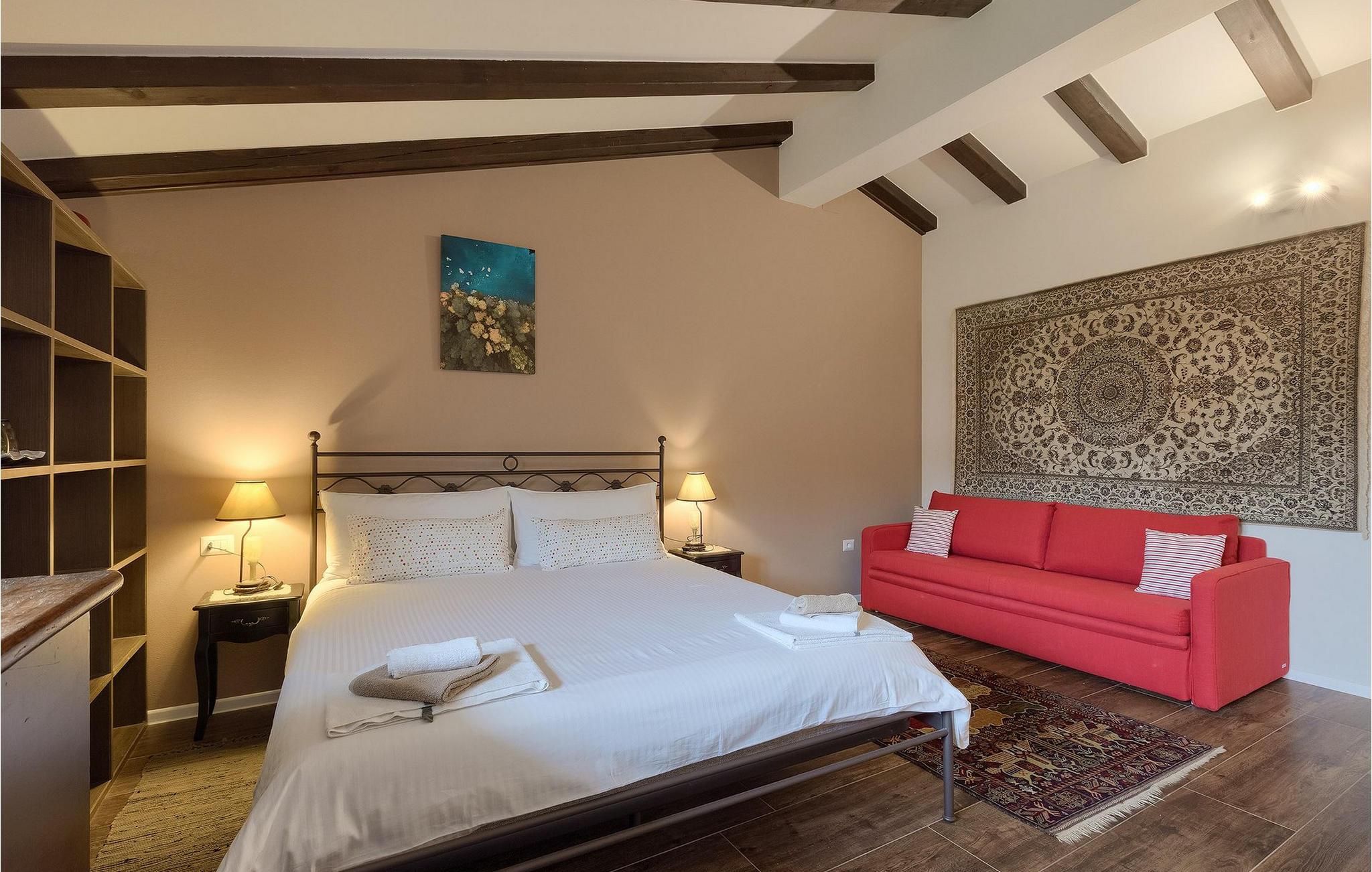 Schlafzimmer (nr. 1) - 2 Schlafmöglichkeiten. (Doppelbett(en)). 1 Schlafmöglichkeit. (Schlafsofa,Matratze,Sonstiges).