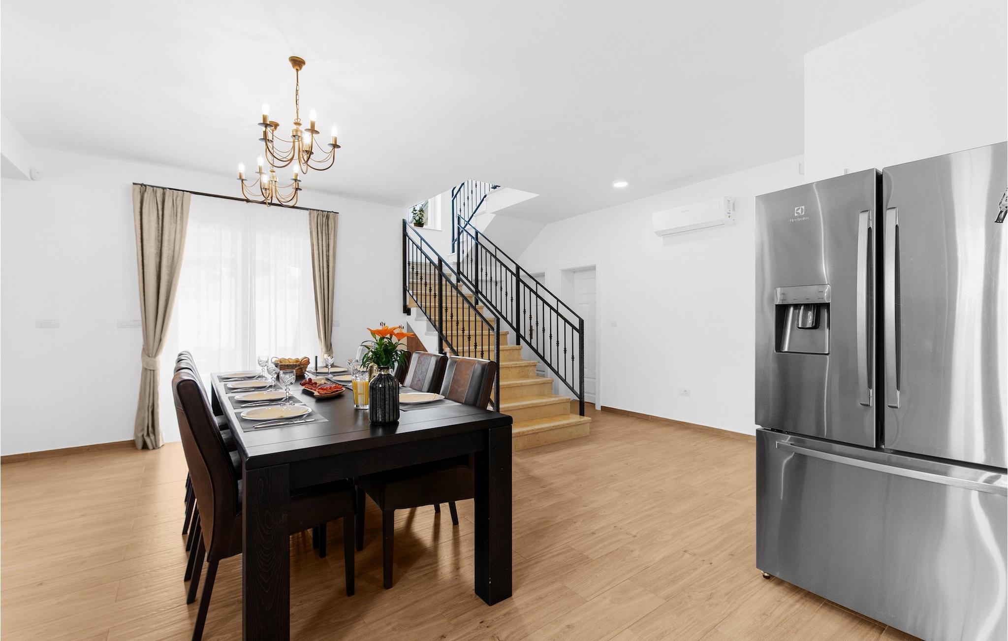 Gå ind i boligområdet i Villa LaDora fra terrassen og føl dig hjemme i den lyse, åbne stue med spiseplads og fuldt udstyret køkken. To smarte soveværelser med dobbeltsenge, hver med en ekstra seng og eget badeværelse samt separat toilet fuldender stueetagen. Den øverste etage består af yderligere to soveværelser med komfortable dobbeltsenge og ensuite badeværelser. Alle værelser har aircondition og TV.