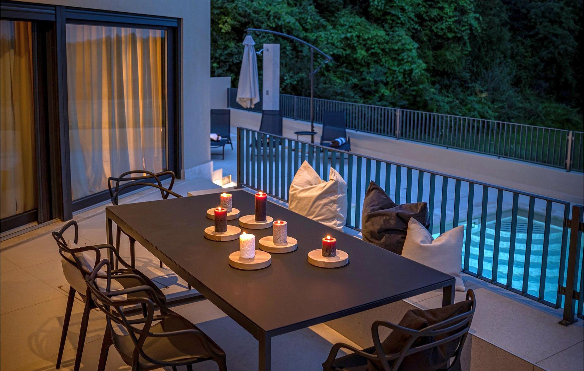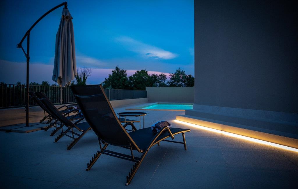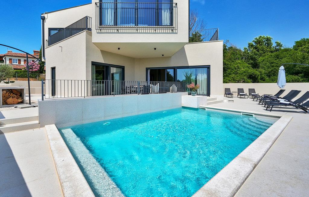 Beliggende på den nordvestlige kyst af Istrien i eventyrbyen Vabriga, inviterer luksusvillaen Itea dig til at nyde din drømmeferie. Udover det rige gastronomiske tilbud og smukke strande i nærheden, tilbyder Istrien dig muligheden for at udforske de mange vinruter, som denne kroatiske region er berømt for. Bygget i en moderne stil med kontrasterende finish og minimalistisk design, optager Villa Itea et areal på 180 m2 og kan rumme maksimalt 8 personer. Der er i alt 4 soveværelser med deres egne komplette badeværelser i villaen. Et soveværelse er i stueetagen og de tre andre er på øverste etage af villaen. En vaskemaskine og et strygejern er også tilgængelige. Hvert værelse har egen terrasse med udsigt til det grønne og uberørte natur. I villaens stueetage er der en rummelig spisestue med køkken og stue. Stuen er indrettet med hjørnesofa, sofabord, pejs, Playstation og brætspil. På villaens terrasse er der en skøn pool på 26 m2 og en dybde på 1,5 m, udstyret med hydromassage på den ene side af poolen. Der er 8 liggestole omkring poolen. Der er også et udendørs spisebord og en udendørs grill til din rådighed. Villa Itea har også adskillige underholdningsfaciliteter såsom cykler eller el-scootere. Der er 3 parkeringspladser til rådighed i villaens fuldt indhegnede gård. Området omkring villaen indbyder til romantiske gåture i uberørt natur. På den nærmeste strand, mindre end 2 km fra villaen, kan du nyde vandsport i det storslåede Adriaterhav. I nærheden ligger en mystisk grotte kaldet Baredine, hvor du vil opdage en sand skatkammer af underjordiske skulpturer arrangeret i fem sale. Baredine-hulen gemmer også på en legende fra det 13. århundrede, en kærlighedshistorie om en adelsmand Gabriel, der forelsker sig i hyrdinden Milka. Gabriels mor modstod hendes kærlighed og betalte røvere for at smide pigen i en pit. Så forsvandt Gabriel med sin hest, og kort efter fandt de kun én hest nær udgangen af en anden grube i nærheden, men der var ingen tegn på Gabriel. Ifølge legenden glider den forstenede krop af en hyrdinde lavere og lavere til bunden af gruben hver dag for at møde sin elskede på den anden side. Istrien er fascinerende ikke kun på grund af dets mange interessante steder, men også på grund af dets talrige middelalderbyer og fæstninger, som vidner om denne regions rige historie. For eksempel er byen Motovun i det centrale Istrien en kilde til middelalderfæstninger. Hver sommer bliver Motovun også skueplads for en berømt filmfestival. På Istriens kyst er der forskellige bycentre såsom Umag, Porec, Rovinj eller Pula, hvis historie går tilbage til før-antikken. I den sydlige del af Istrien-halvøen kan du for eksempel i byen Pula besøge det romerske amfiteater, der også er kendt som et af de største bevarede fortidsminder. Lidt længere nordpå, i byen Porec, kan du se et unikt kompleks af tidlig kristen sakral arkitektur fra det 6. århundrede, som er et af de smukkest bevarede monumenter for byzantinsk kunst i dette område. På grund af sin meget gunstige geografiske placering er Istrien også en region med et rigt øno-gastronomisk tilbud. I dag produceres de bedste vine og olivenolier i Istrien. Gå ikke glip af at prøve andre interessante opskrifter som istrisk Boškarin-kød, stærke trøfler eller traditionelt fremstillet pasta. Hvis du ønsker, at din ferie skal være en ægte oase af fred og privatliv, så vælg Villa Itea, som vil tilbyde dig den luksus, du fortjener. På den anden side vil Istriens rige gastronomiske, kulturelle og sportslige tilbud runde din ferie af og gøre den perfekt. Bemærk venligst, at denne ejendom ikke accepterer ungdomsgrupper eller polterabends. En ungdomsgruppe i denne ejendom består af personer under 30 år. Book ikke denne ejendom, hvis du er en ungdomsgruppe eller polterabend, da din reservation vil blive afvist efter reservationen, hvilket også kan være tilfældet ved ankomst til overnatningsstedet eller under dit ophold, og du vil ikke modtage en refusion.