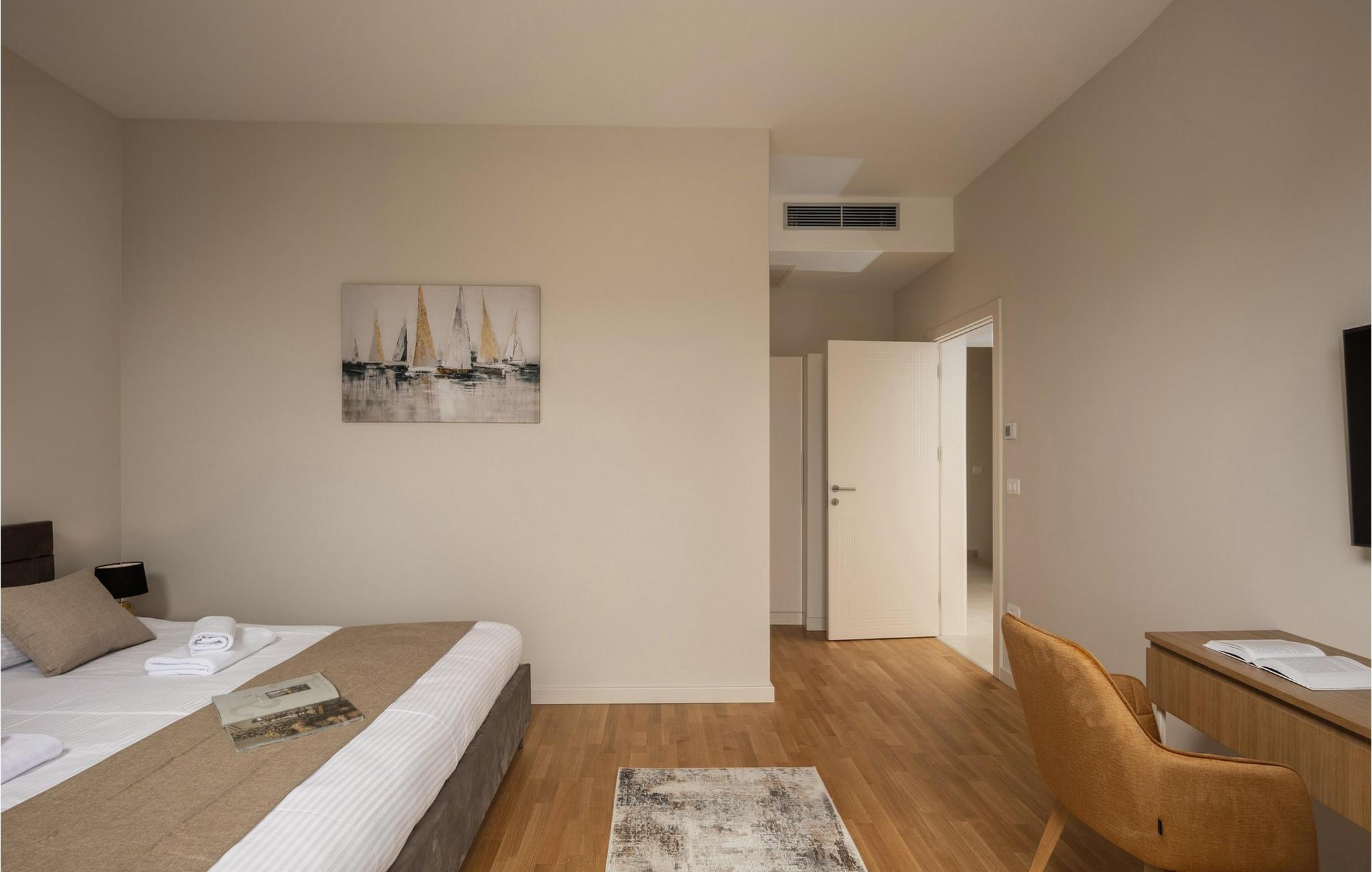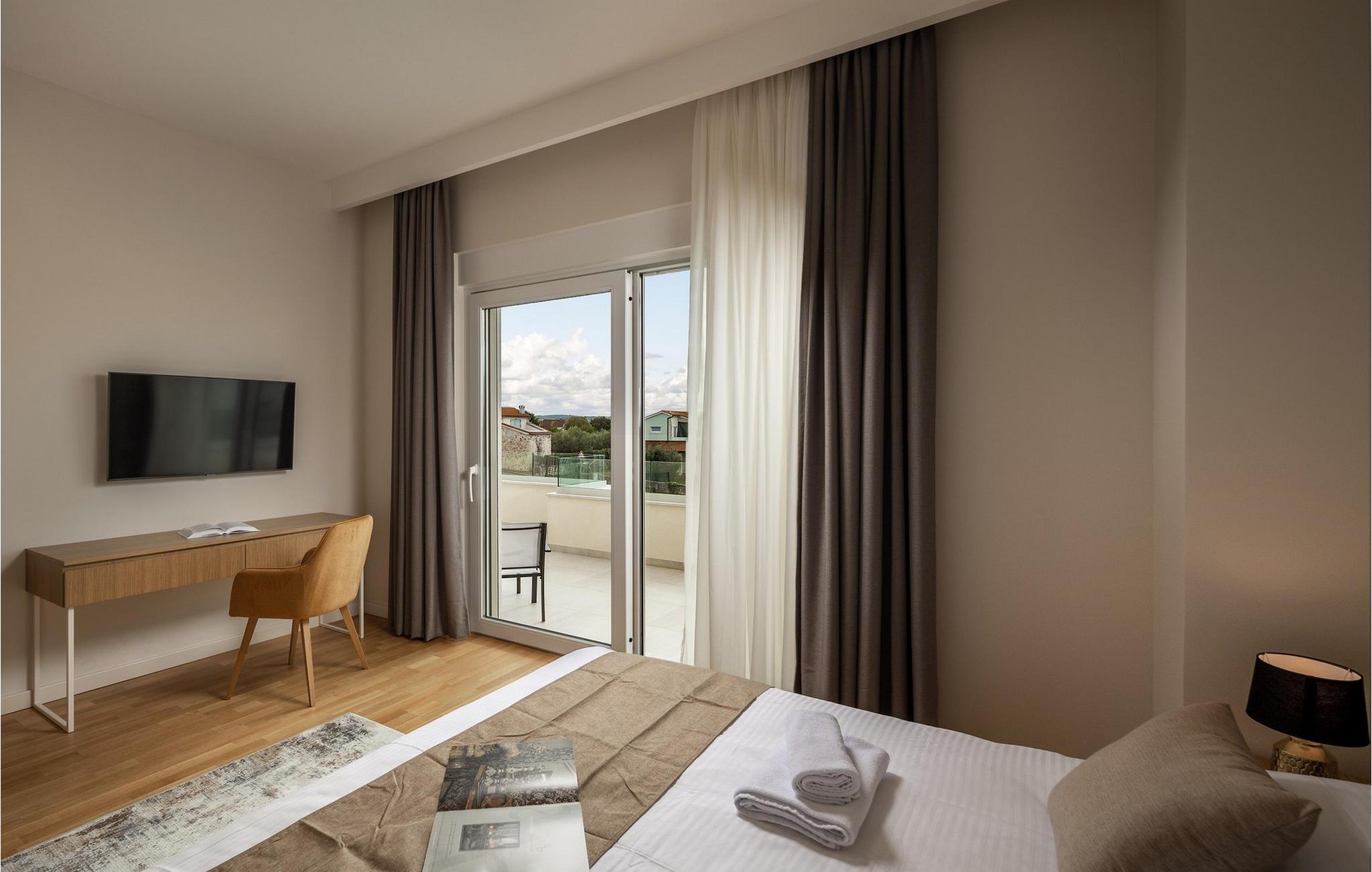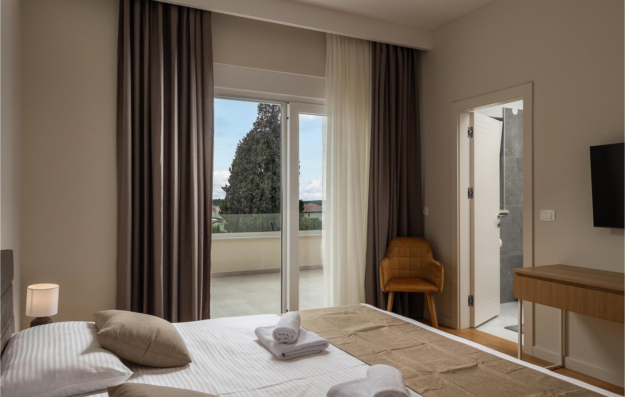 Villa Santina ligger i det eventyrlige Istrien i Vabriga. Denne lille landsby ligger på Istriens vestkyst og kun 7 km fra byen Porec. Placeringen af Villa Santina er ideel til en rolig og afslappende ferie med familie eller venner, samtidig med at den er tæt nok på alle de aktiviteter, du kan ønske dig. Hvis du ønsker at forkæle dig selv og dine kære med en luksuriøs ferie, så er denne villa det rigtige valg for dig! Villa Santina er bygget i rustik arkitektonisk stil og tilbyder sine gæster 208 m2 boligareal, mens det samlede areal af ejendommen er 725 m2. Det er 1,5 km væk fra den nærmeste strand og det klare hav, hvor du kan nyde solen og udforske havets dybder. Villaen er fuldt klimatiseret og sover maksimalt 8, ideelt set 6 personer. Gæsterne er indkvarteret i 3 komfortable og smukt indrettede dobbeltværelser, og du vil blive glad for at vide, at hvert af de nævnte værelser har eget badeværelse med bruser. To soveværelser er placeret på øverste etage af villaen og har adgang til en privat terrasse med havudsigt, mens det tredje soveværelse er i stueetagen. I stueetagen er der desuden en rummelig stue med to sofaer, en lænestol, et sofabord og et tv. Lige ved siden af stuen ligger spisestuen med spisebord til 8 personer, samt et moderne og fuldt udstyret køkken med bar, bag hvilken der er yderligere 4 barstole. Fra spisestue og stue er der direkte udgang til den udendørs terrasse, hvor du på varme sommerdage kan slappe af i den opvarmede pool på 28 m2 og en dybde på 1,6 meter. Du kan solbade på 8 liggestole og læse din yndlingsbog eller bare hvile krop og sjæl i fred. Der er også et overdækket spisebord på den udendørs terrasse, ved siden af er der en udendørs kul- eller brændegrill, perfekt til at tilberede lækre måltider for hele familien. Ved siden af poolen er der også et opholdsområde, ideelt til at nippe til kaffe om morgenen eller socialt samvær om aftenen. Andre funktioner i Villa Santina omfatter 1 separat toilet, vaskemaskine, tørretumbler og strygejern. Som en ekstra seng til to personer er der også en sovesofa i stuen, samt et foderbord og en babyseng. Massage er muligt efter forudgående aftale. Villaen er helt indhegnet og byder på 2 private parkeringspladser i gården. Der er også masser af grønne områder, hvor børn kan lege ubekymret. Hvis du beslutter dig for at besøge Istrien og Vabriga, kan vi garantere, at du ikke bliver skuffet. Hvert år bliver Istrien besøgt af talrige indenlandske og udenlandske turister, der er forbløffet over skønheden, den uberørte natur og eventyrlige steder i nærheden af Vabriga. Naturelskere kan udforske omgivelserne, svømme i små og skjulte bugter og besøge Mirna-flodens dal, hvor der er skove rige på trøfler. Hvis du er mere interesseret i kulturarv, kan du nå byen Porec på kun 20 minutter i bil, og der er andre nærliggende byer som Novigrad, Rovinj eller Pula, hvor du vil blive overrasket over det romerske amfiteater. Det gastronomiske tilbud er fremragende og omfatter adskillige restauranter, taverner og landlige husholdninger, hvor du kan smage istriske specialiteter og lokale vine af topkvalitet. Overgiv dig til Istriens charme og nyd en vidunderlig årlig ferie i Villa Santina! Kæledyr er tilladt på denne ejendom efter ejerens skøn eller mod et gebyr.