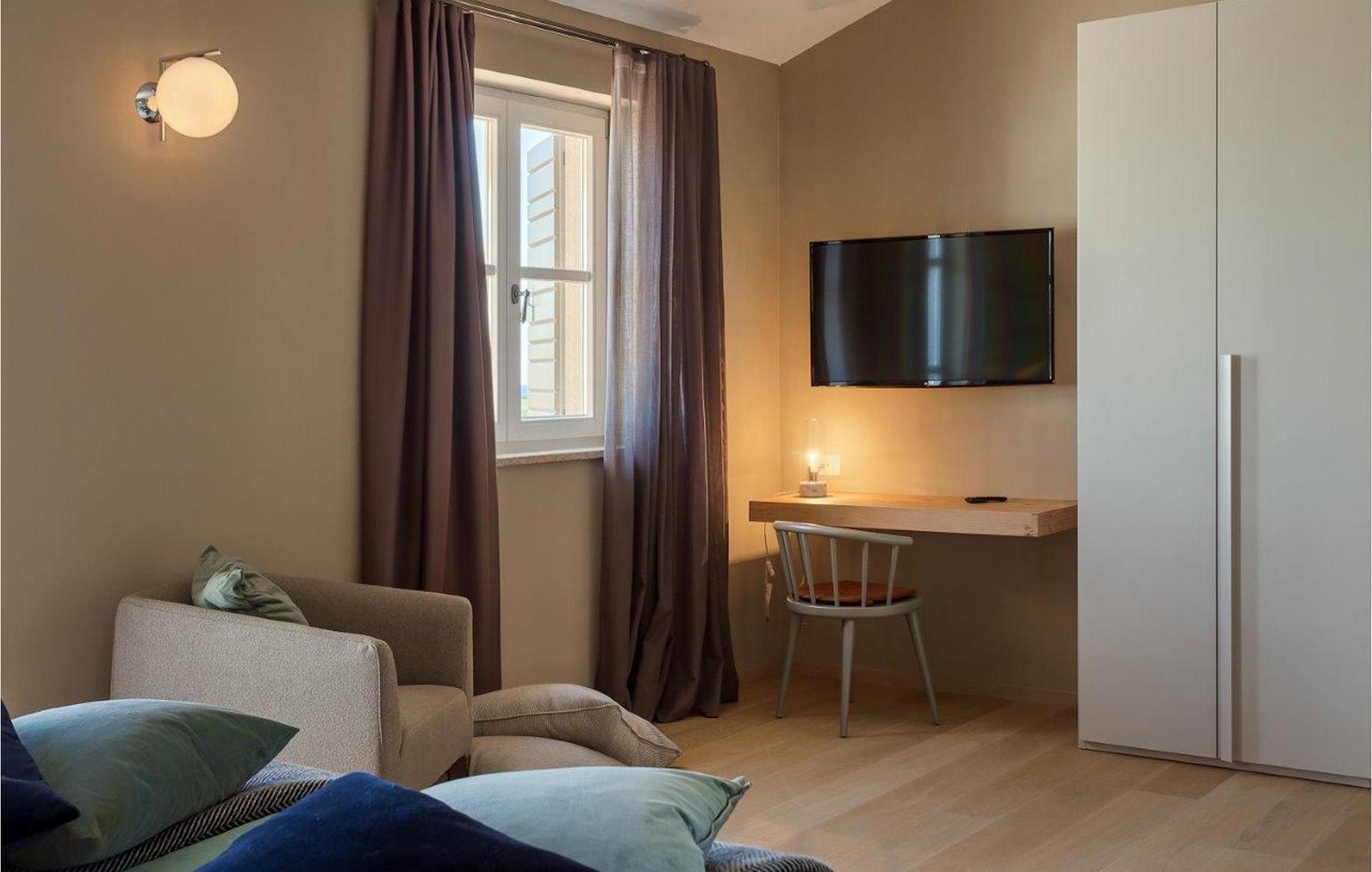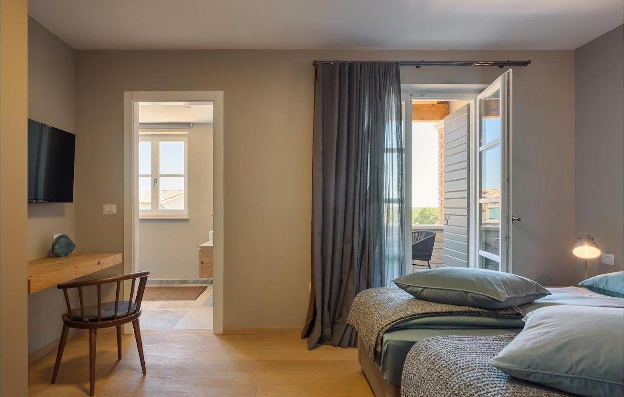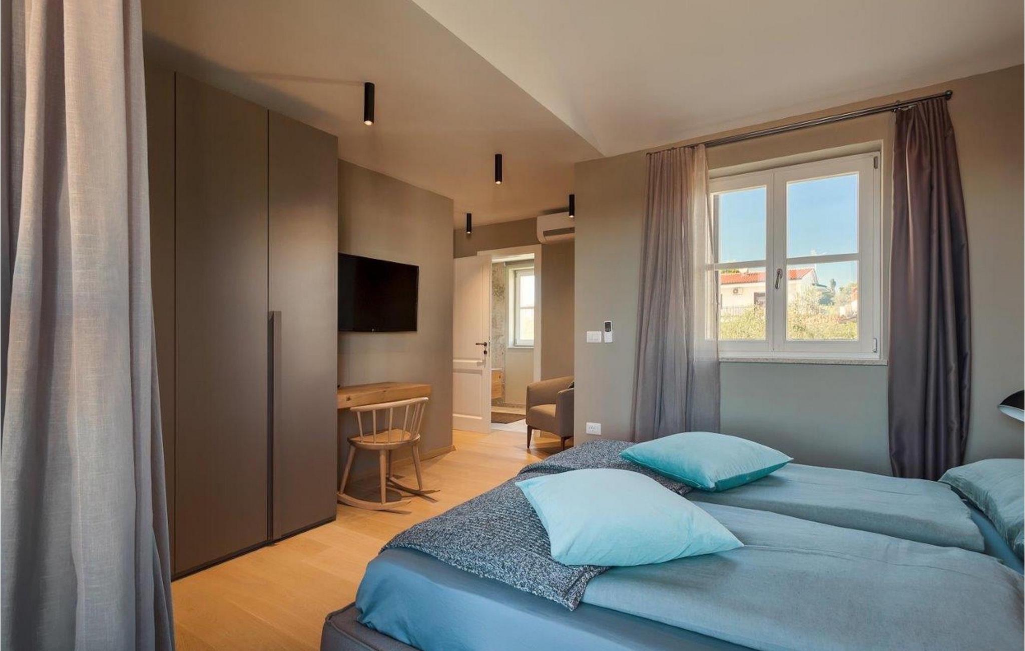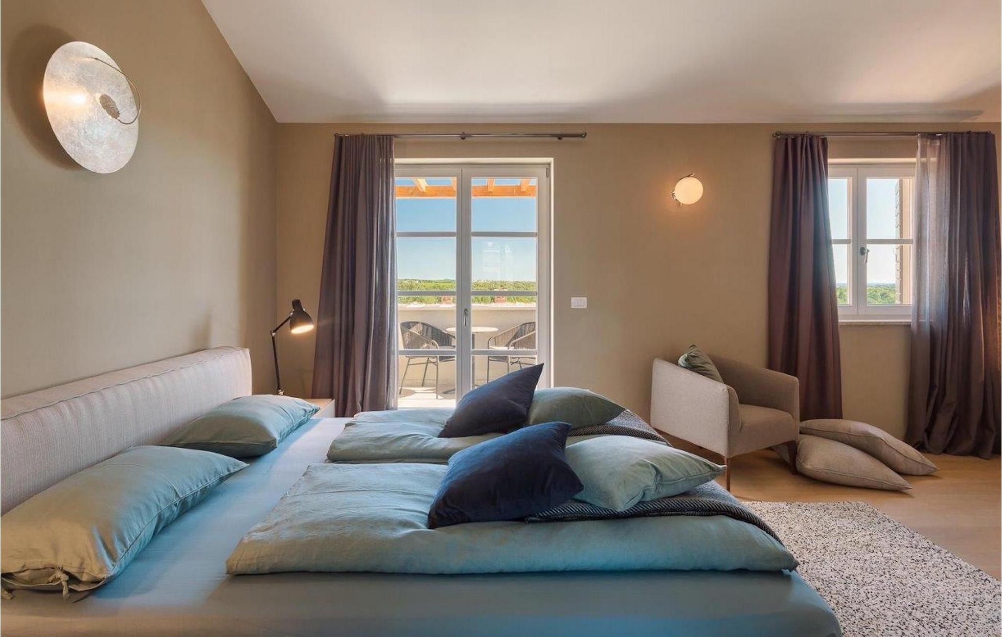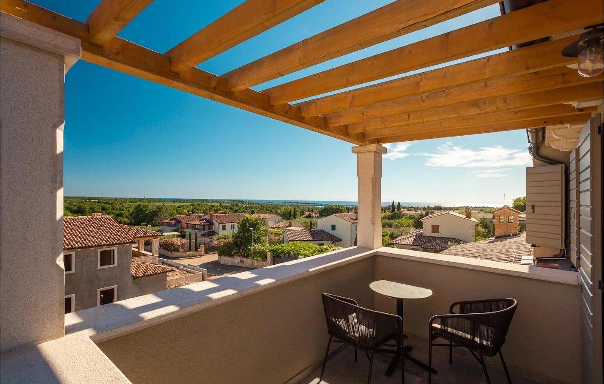 Den lyse og moderne indrettede villa byder på i alt 3 soveværelser og komfortable dobbeltsenge til op til 6 personer. To soveværelser er på første sal og har hver udgang til altan. Men soveværelset på anden sal har også sin egen altan, hvorfra man kan nyde en vidunderlig udsigt, mens man nyder sin første slurk kaffe ved solopgang. Stuen, spisepladsen og det fuldt udstyrede køkken har alt hvad du behøver for at slappe af og nyde din ferie. Du vil helt sikkert føle dig hjemme med det samme og tilbringe den ferie i Villa Fendt 2, som du har længtes efter! Villa Fendt 2 ligger i Vabriga, mellem de romantiske byer Porec og Novigrad. De to berømte byer i Istrien ligger kun 7 km fra villaen og byder på mange muligheder for deres besøgende lige ved havet. Vabriga er dog et ret roligt sted, hvor alt er tilgængeligt til daglige behov - supermarkeder, restauranter og caféer. Istriens vestkyst er ideel for kulturentusiaster, sportsfans og aktive feriegæster. Uanset om det er sightseeing, cykling, vandreture, golf, tennis, dykning, fri klatring eller paragliding. Her er noget for enhver smag, hvormed de kan gøre deres ferie til noget helt særligt. Nyd de lokale specialiteter, smag vin eller olivenolie og udforsk denne unikke region! Villa Fendt 2 er det ideelle udgangspunkt for en afslappende og alligevel varieret ferie i Kroatien!