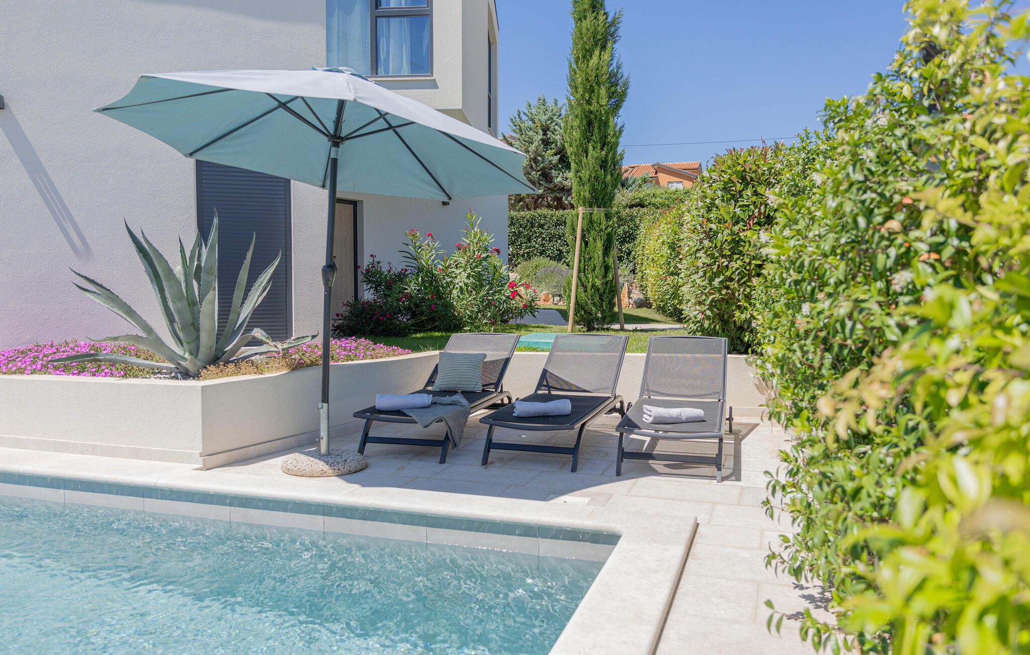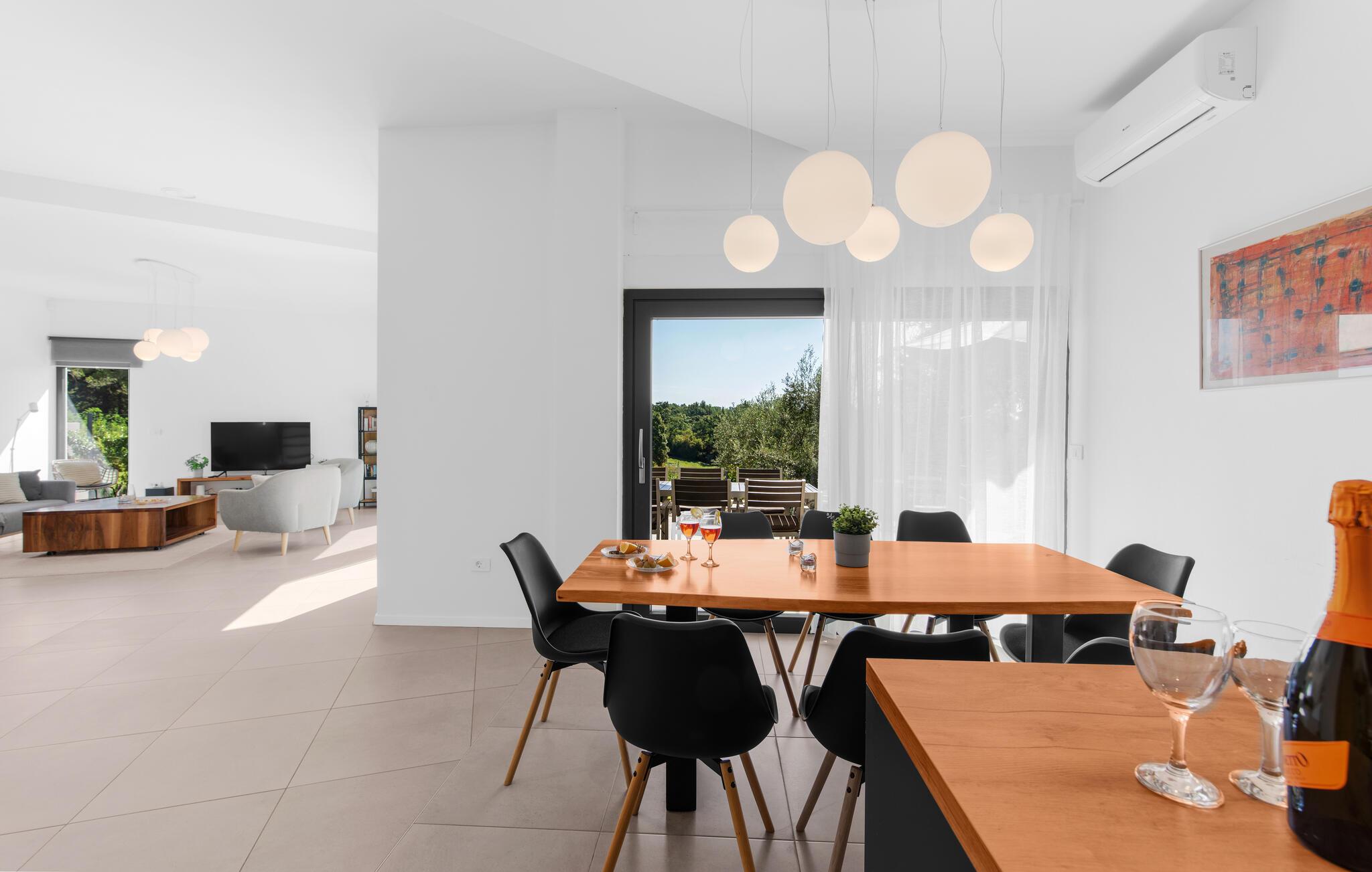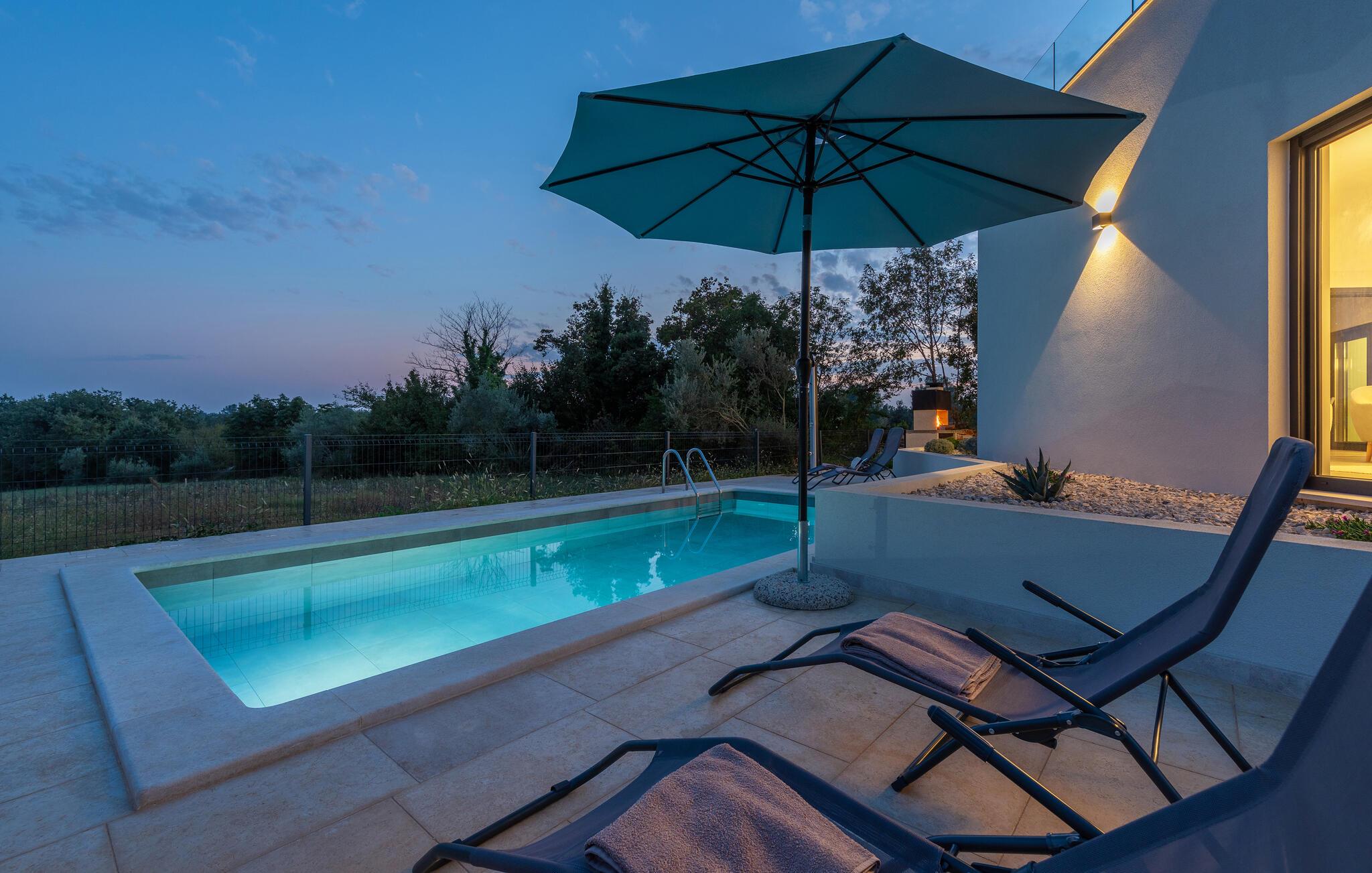 Denne smukke villa Marko Aurelia ligger i Istrien, i den lille by Vabriga, ikke langt fra byen Porec. Villaen kan rumme op til 10 personer og er ideel til en rigtig familieferie. Der er en privat pool med udsigt over natur og grønne områder og vil være det perfekte sted at forfriske dig selv på varme sommerdage, slappe af på liggestolene. For at tilbringe en behagelig tid med din familie, er der også en kulgrill til din rådighed, som vil være et godt valg til at tilberede lækre måltider. Stueetagen af villaen har en stue med spiseplads og et fuldt udstyret køkken, med alt hvad du behøver for at tilberede lækre måltider, samt et soveværelse med ensuite badeværelse. På første sal i villaen er der 3 komfortable soveværelser, hver med sit eget badeværelse. Alle værelser har aircondition. Book den smukke villa Marko Aurelia og nyd din velfortjente ferie!Villa Marko Aurelia ligger i Vabriga, nær Porec. Vabriga byder på mange kulturelle og turistbegivenheder, såsom æselræset. Gaderne i Porec er hjemsted for mange gallerier og atelierer samt forskellige museer, gallerier og mange prisværdige bymonumenter. Vi anbefaler dig bestemt at besøge Eufrasiusbasilikaen, som blev bygget i midten af det 6. århundrede i byzantinsk stil og betragtes som et af de smukkeste kunstværker i verden.