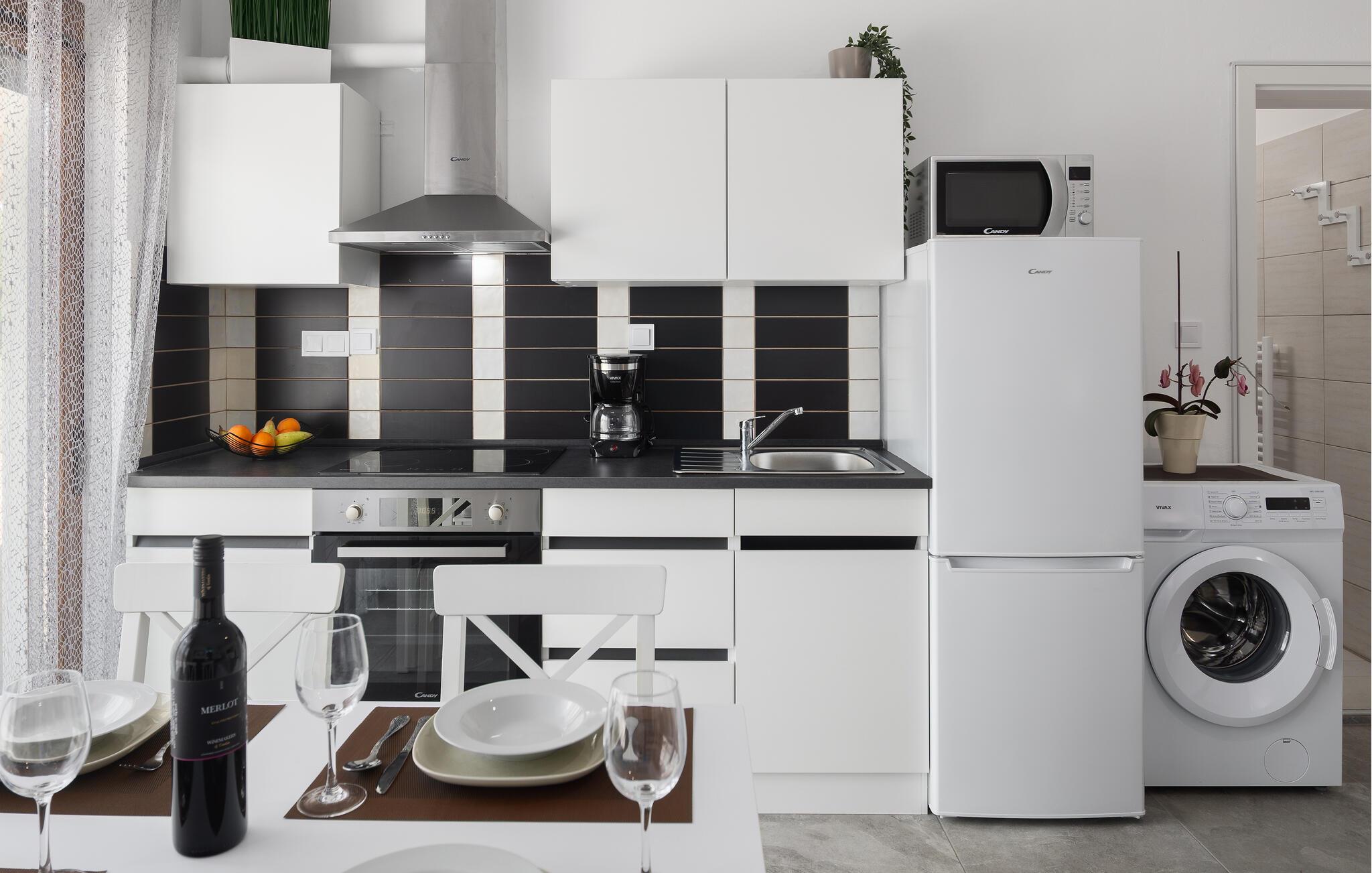 Nyd den hyggelige atmosfære i denne moderne indrettede lejlighed i intimt samvær, som tilbyder jer alt hvad I behøver til en afslappende ferie nær Adriaterhavskysten. Brug det veludstyrede køkken til at forberede romantiske middage og tilbringe afslappende timer på den komfortable sofa. Læs en god bog eller brug tiden sammen til stimulerende samtaler.