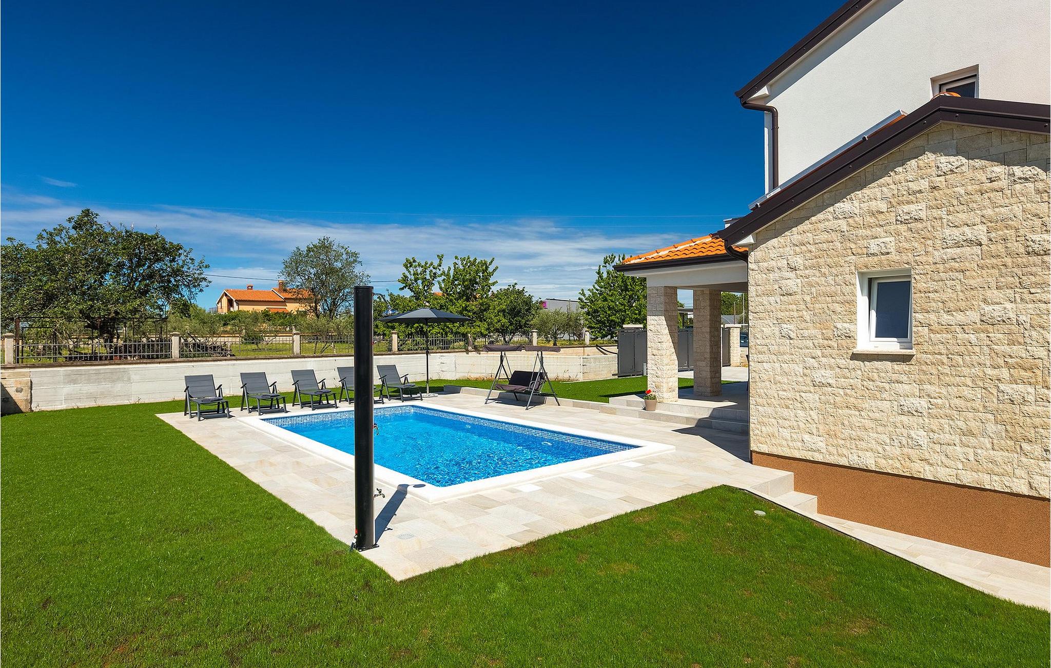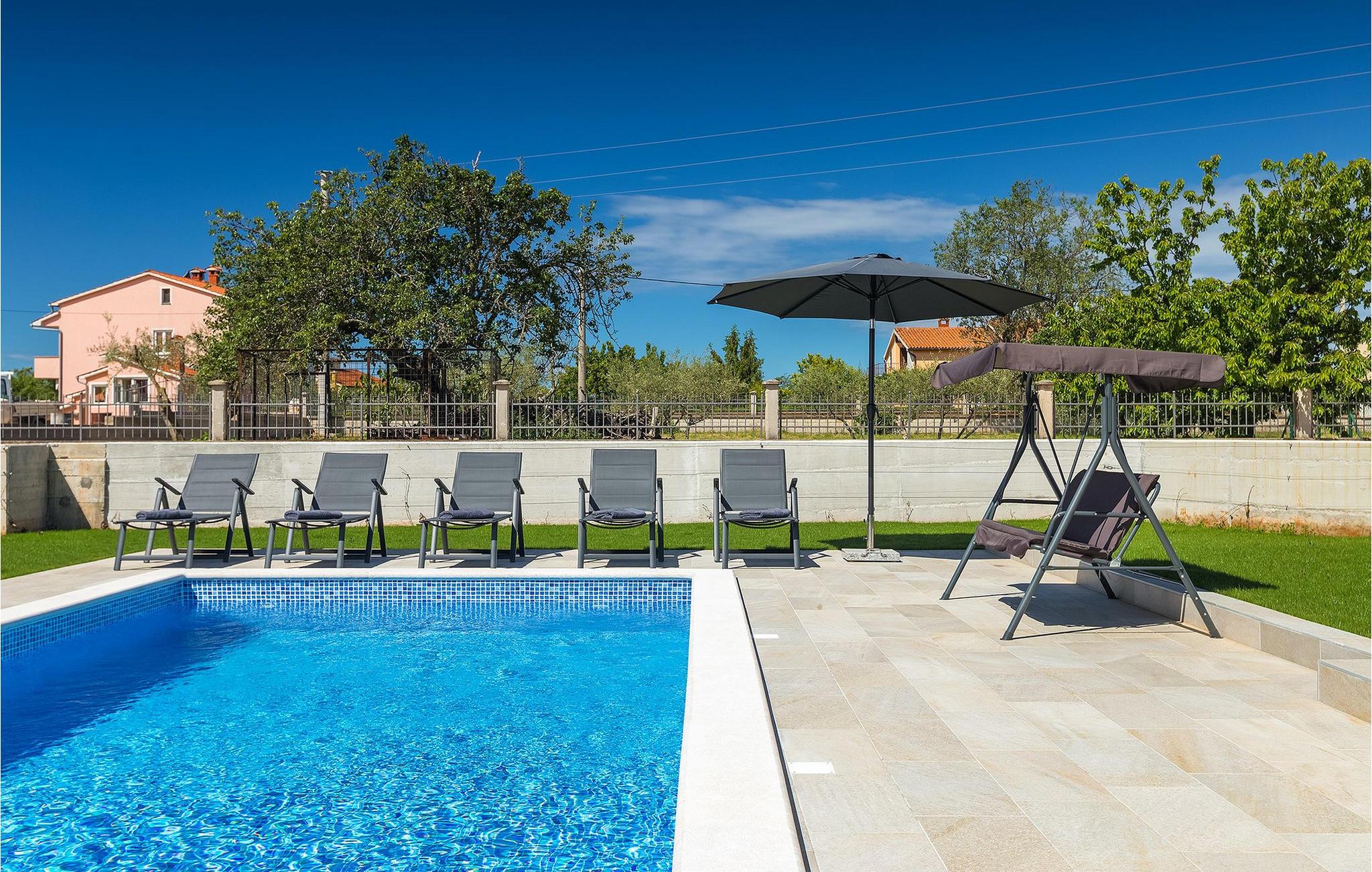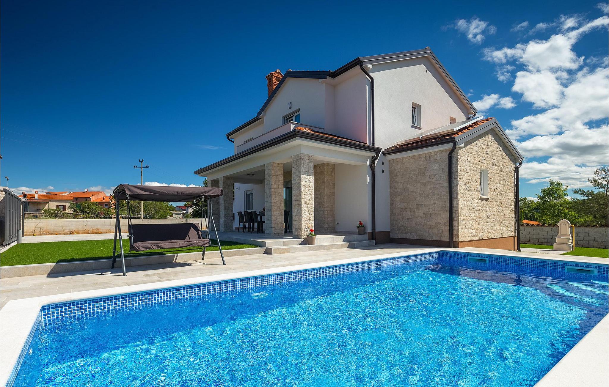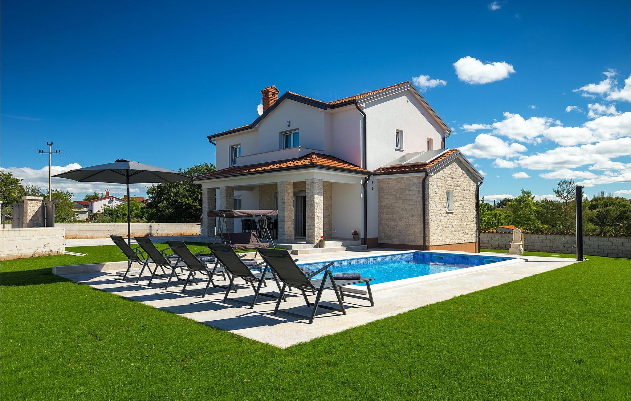 Dejlige Villa Zirdum er et glimrende valg til en afslappet familieferie. Med 3 soveværelser kan villaen rumme op til 6 gæster (+ 1 barn op til 7 år efter anmodning). Stueetagen har et åbent koncept - der finder du en hyggelig stue med pejs, samt et fuldt udstyret køkken med spiseplads. Også i stueetagen er et af soveværelserne udstyret med en dobbeltseng samt 2 badeværelser. På øverste etage finder du yderligere 2 soveværelser, begge med eget badeværelse for at gøre dit ophold så behageligt som muligt. Villaen er lys og luftig, men foretrækker du at bruge tid udenfor, vil du blive begejstret for din egen indbydende pool. Nyd solen og nyd den sindsro en lille landsby i Istrien kan tilbyde. Til din rådighed er en kulgrill - hav det sjovt med at grille og nyd dine måltider al fresco på terrassen. Der er Wi-Fi og aircondition. Vælg Villa Zirdum til din ferie og tilbring en dejlig ferie i Istrien!