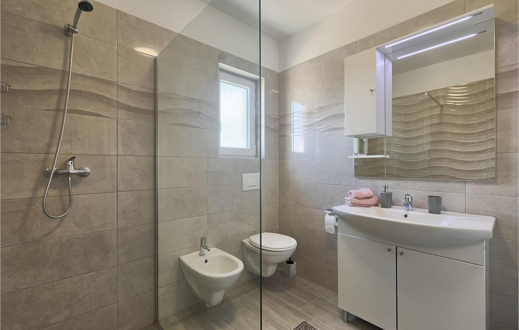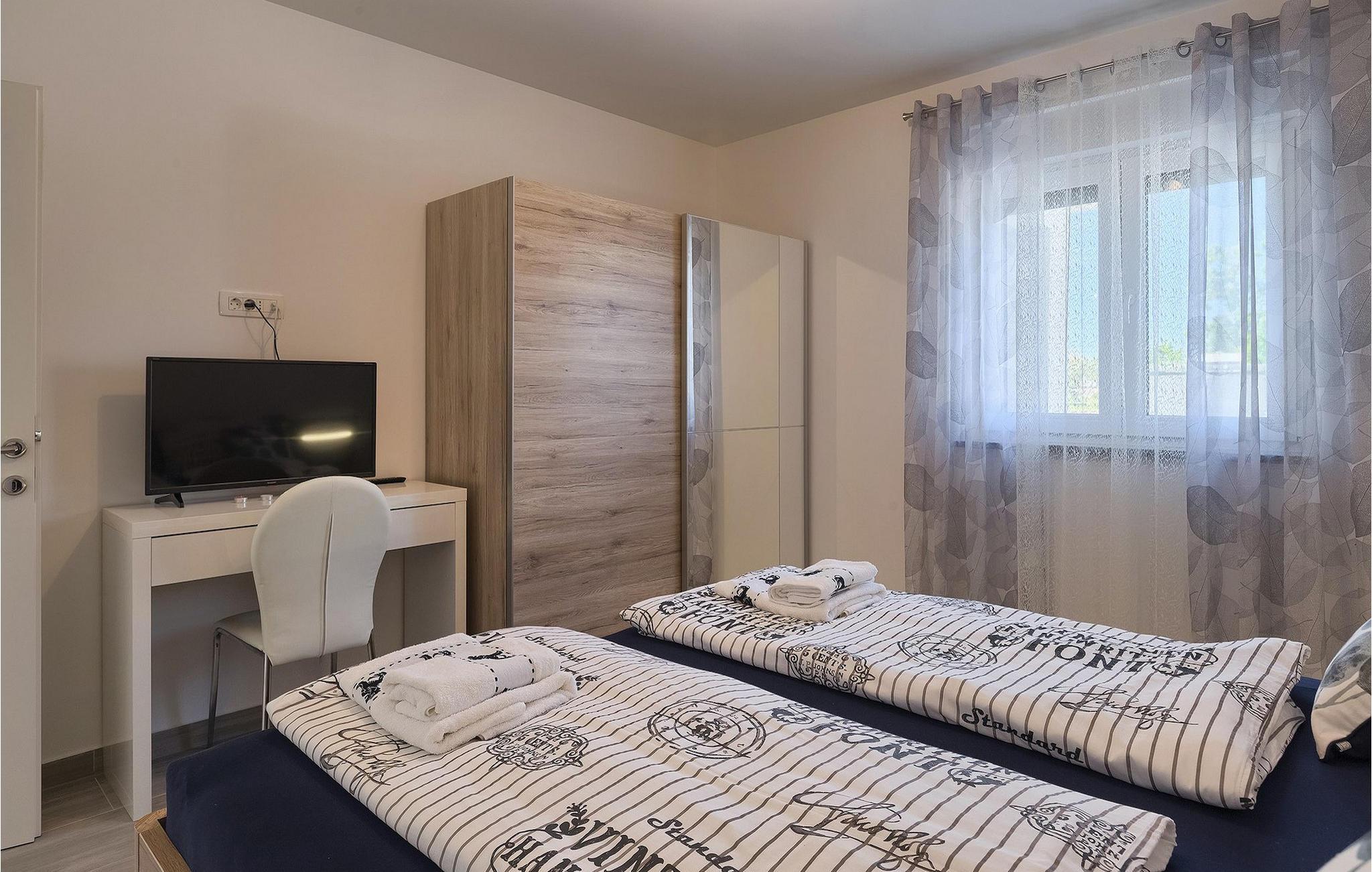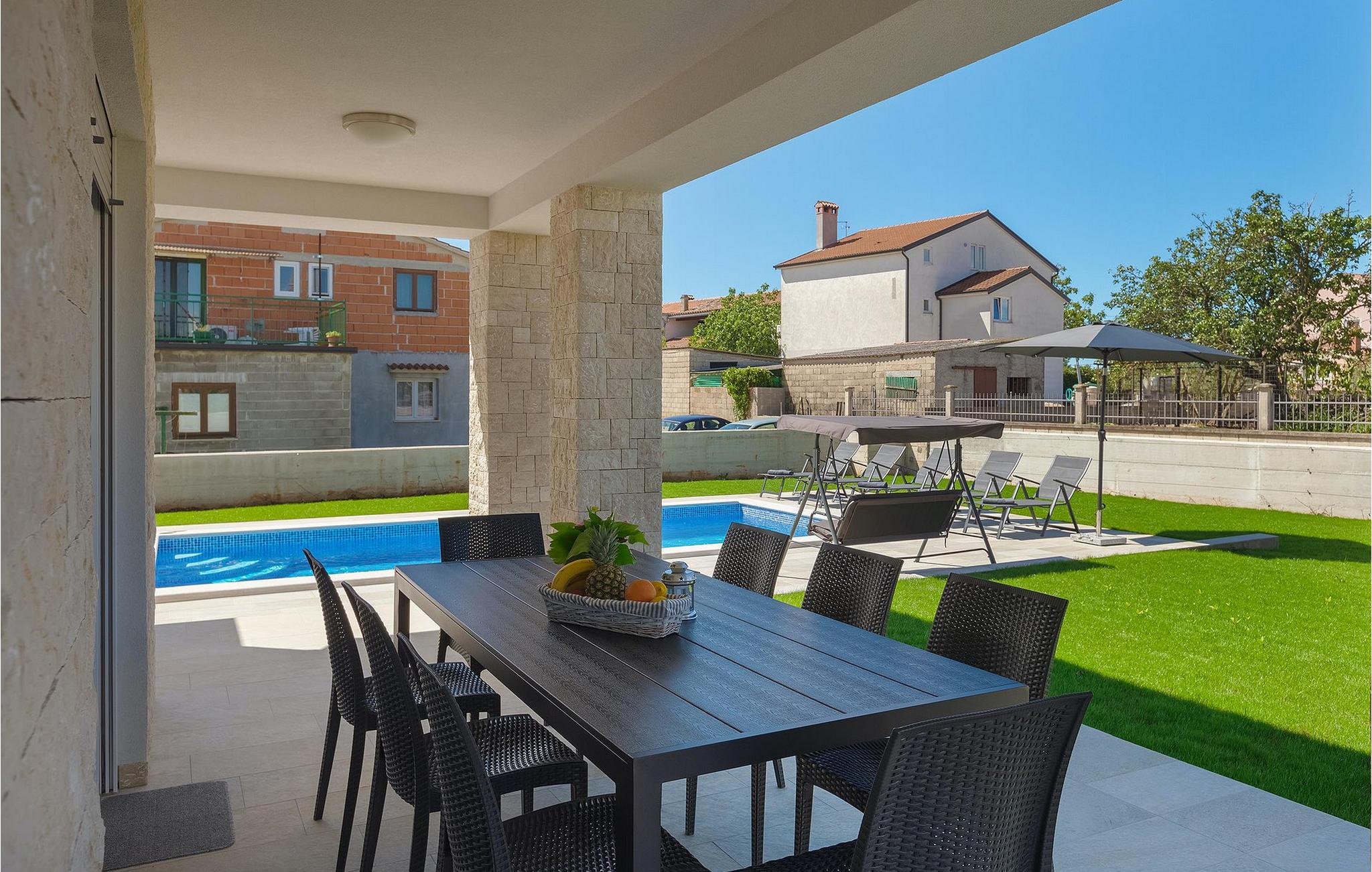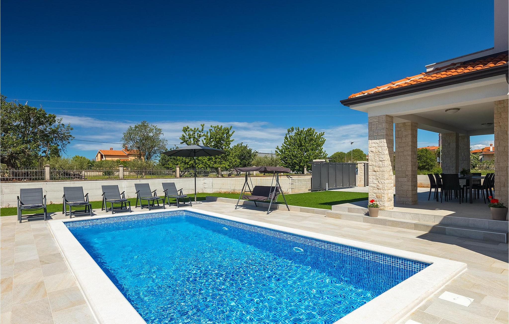 Dejlige Villa Zirdum er et glimrende valg til en afslappet familieferie. Med 3 soveværelser kan villaen rumme op til 6 gæster (+ 1 barn op til 7 år efter anmodning). Stueetagen har et åbent koncept - der finder du en hyggelig stue med pejs, samt et fuldt udstyret køkken med spiseplads. Også i stueetagen er et af soveværelserne udstyret med en dobbeltseng samt 2 badeværelser. På øverste etage finder du yderligere 2 soveværelser, begge med eget badeværelse for at gøre dit ophold så behageligt som muligt. Villaen er lys og luftig, men foretrækker du at bruge tid udenfor, vil du blive begejstret for din egen indbydende pool. Nyd solen og nyd den sindsro en lille landsby i Istrien kan tilbyde. Til din rådighed er en kulgrill - hav det sjovt med at grille og nyd dine måltider al fresco på terrassen. Der er Wi-Fi og aircondition. Vælg Villa Zirdum til din ferie og tilbring en dejlig ferie i Istrien!