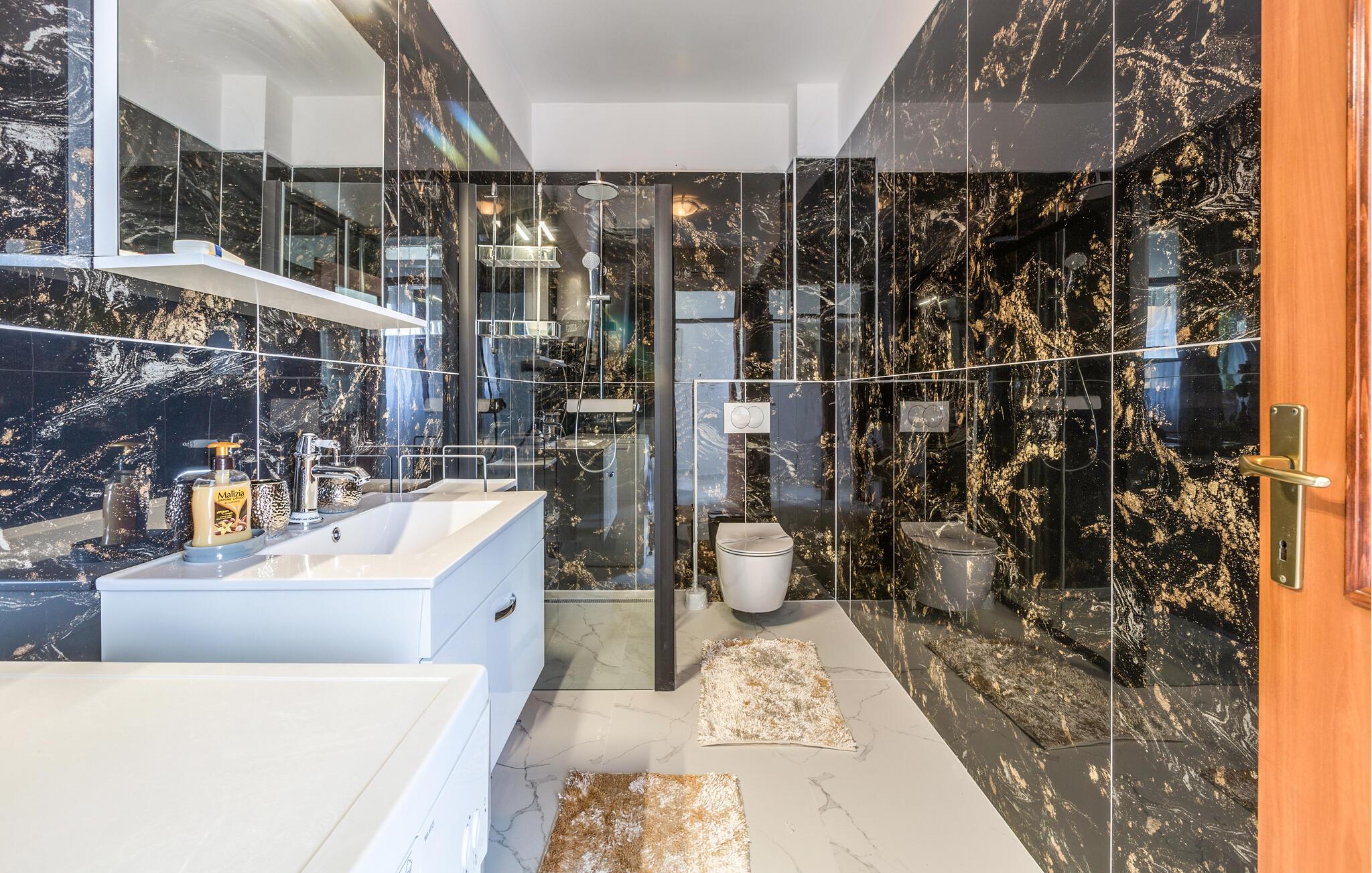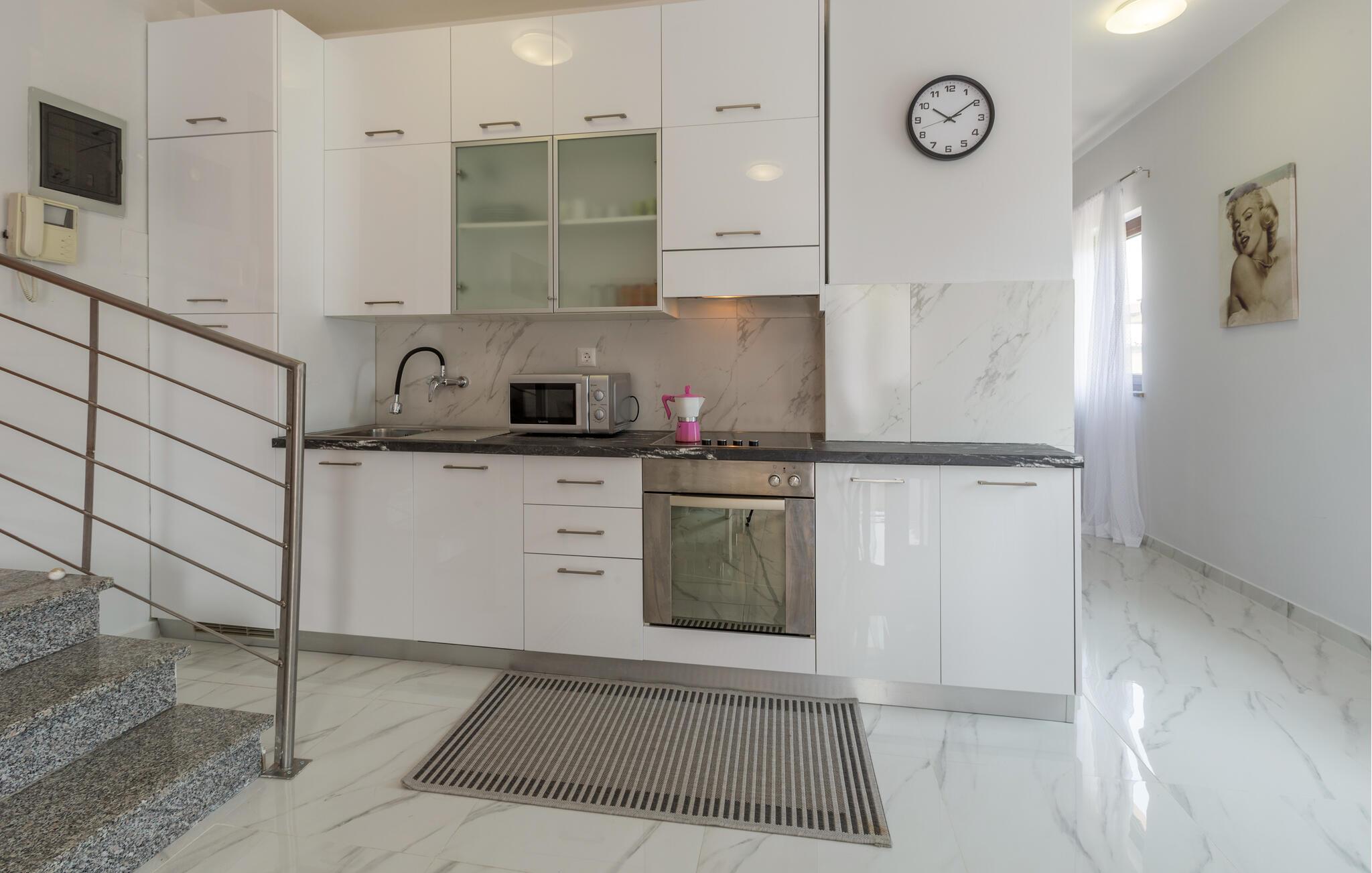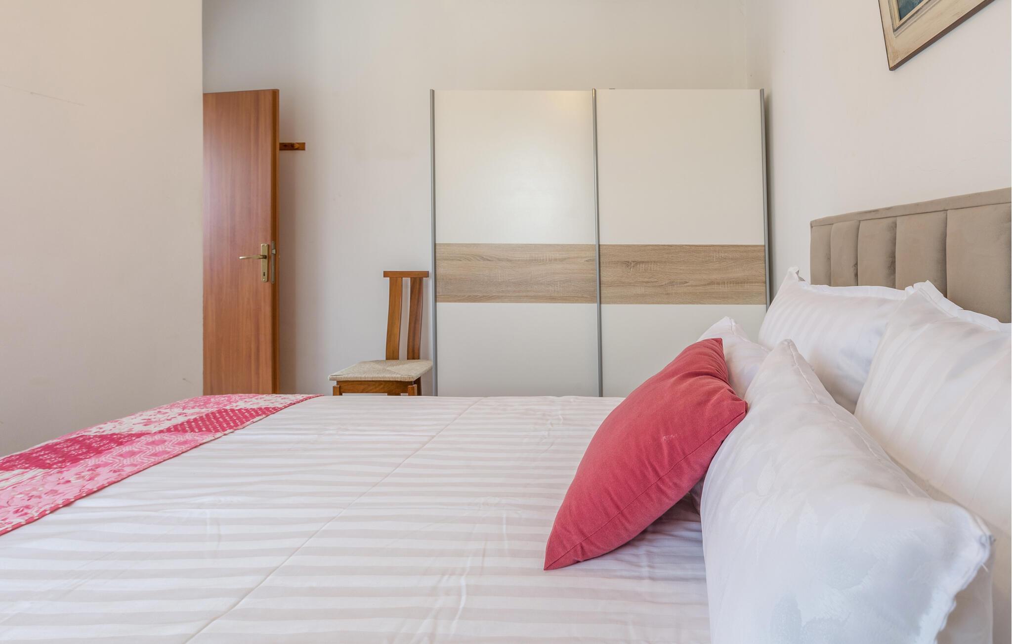 Hvis I planlægger en ferie nær havet, der også inkluderer masser af eventyr i området, er denne lejlighed det rette valg. Den byder gæster velkommen ikke langt fra kysten og tilbyder med lyse værelser og en smuk udsigt de ideelle rammer for en afslappende pause. Efter en aktiv dag kan I gøre det behageligt i stuen, nyde et måltid sammen med terrassedørene åbne og snakke længe i sofaen.