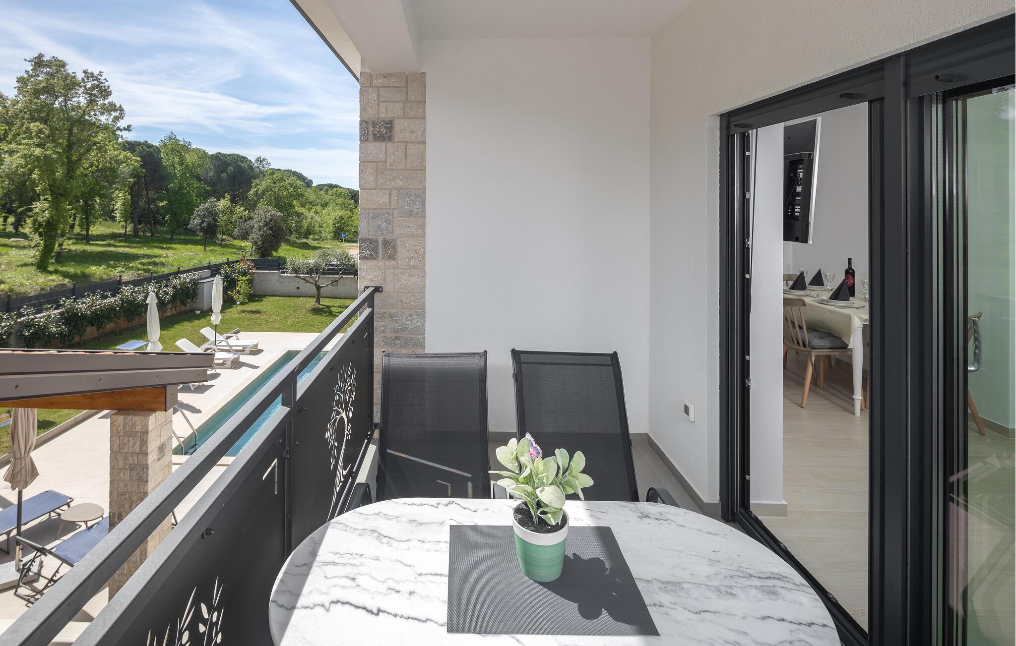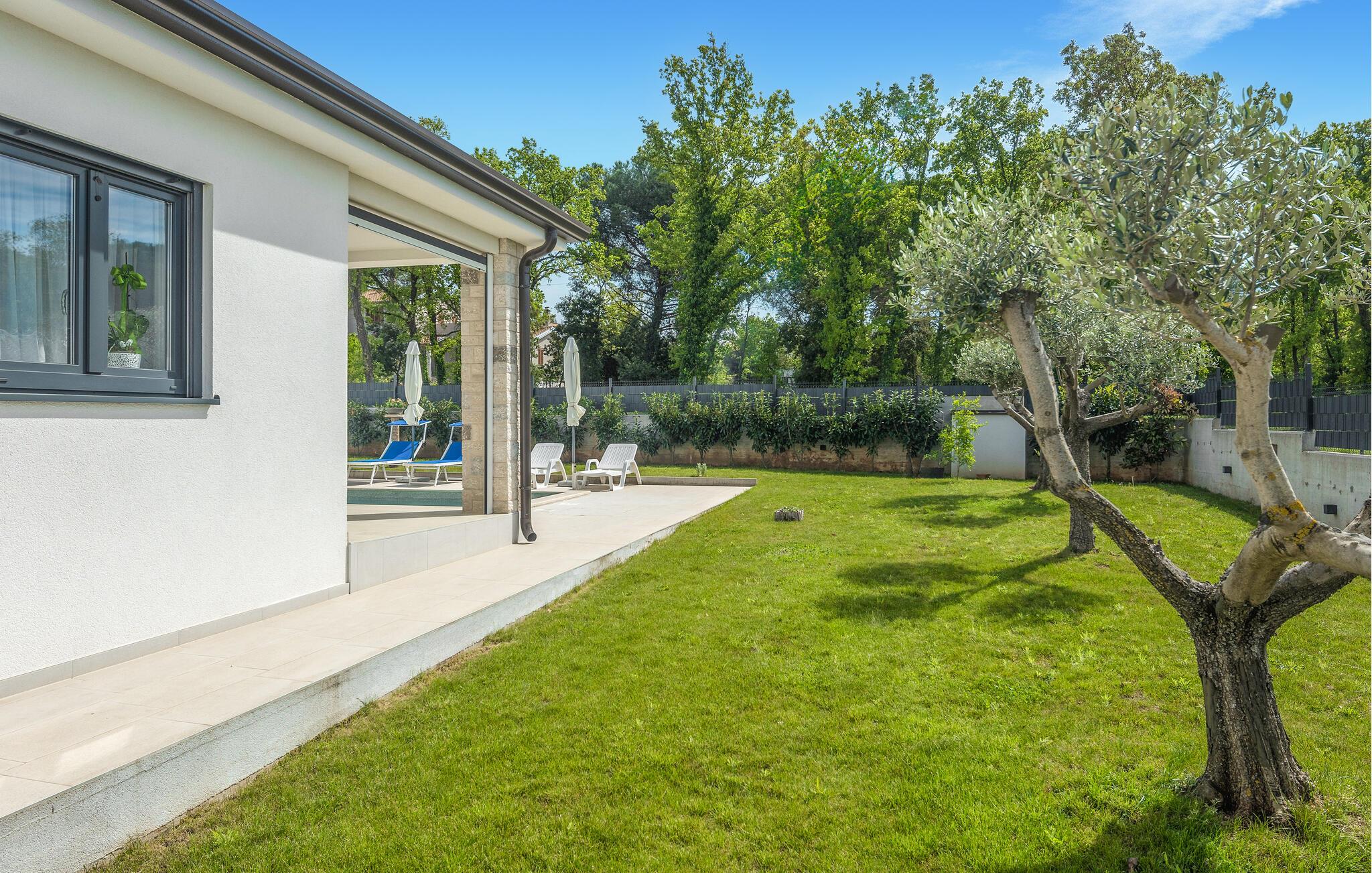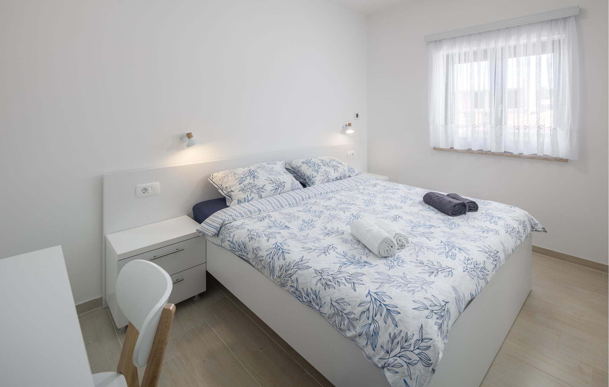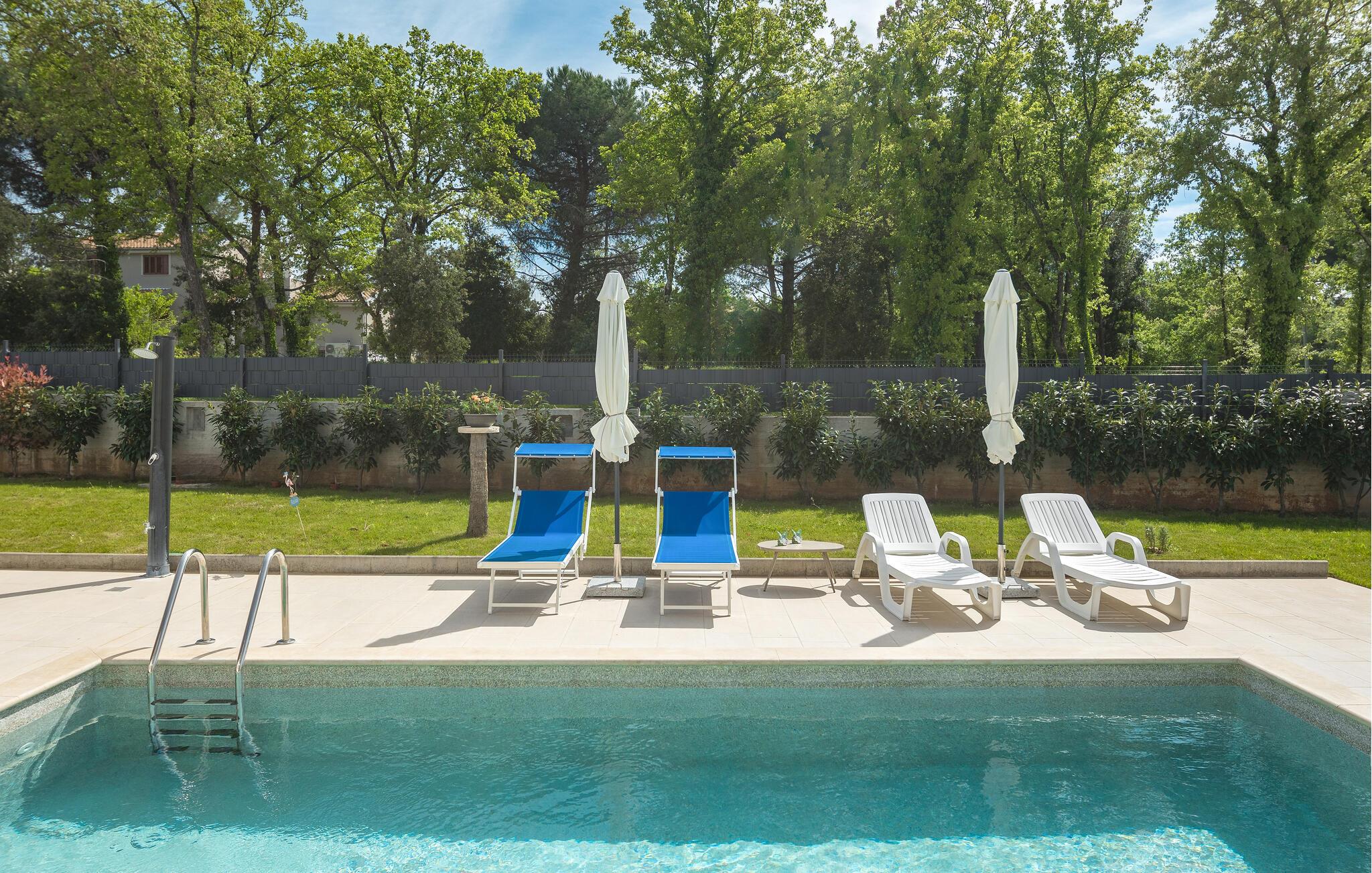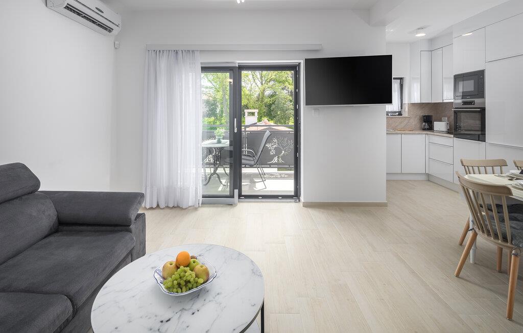 Tag den lille familie under armen og rejs til Porec, hvor der venter jer en herlig base i denne lækre lejlighed. Boligen er særdeles veludstyret med høj kvalitet over hele linjen, både hvad angår indretning og møblement. Kræs om livretterne i det moderne køkken og nyd dem på jeres altan i solen. Udover altanen har I også adgang til en fælles have, hvor I kan dyppe jer i poolen, så ofte I lyster. Poolen og haven deles med gæsterne i den anden lejlighed i huset.