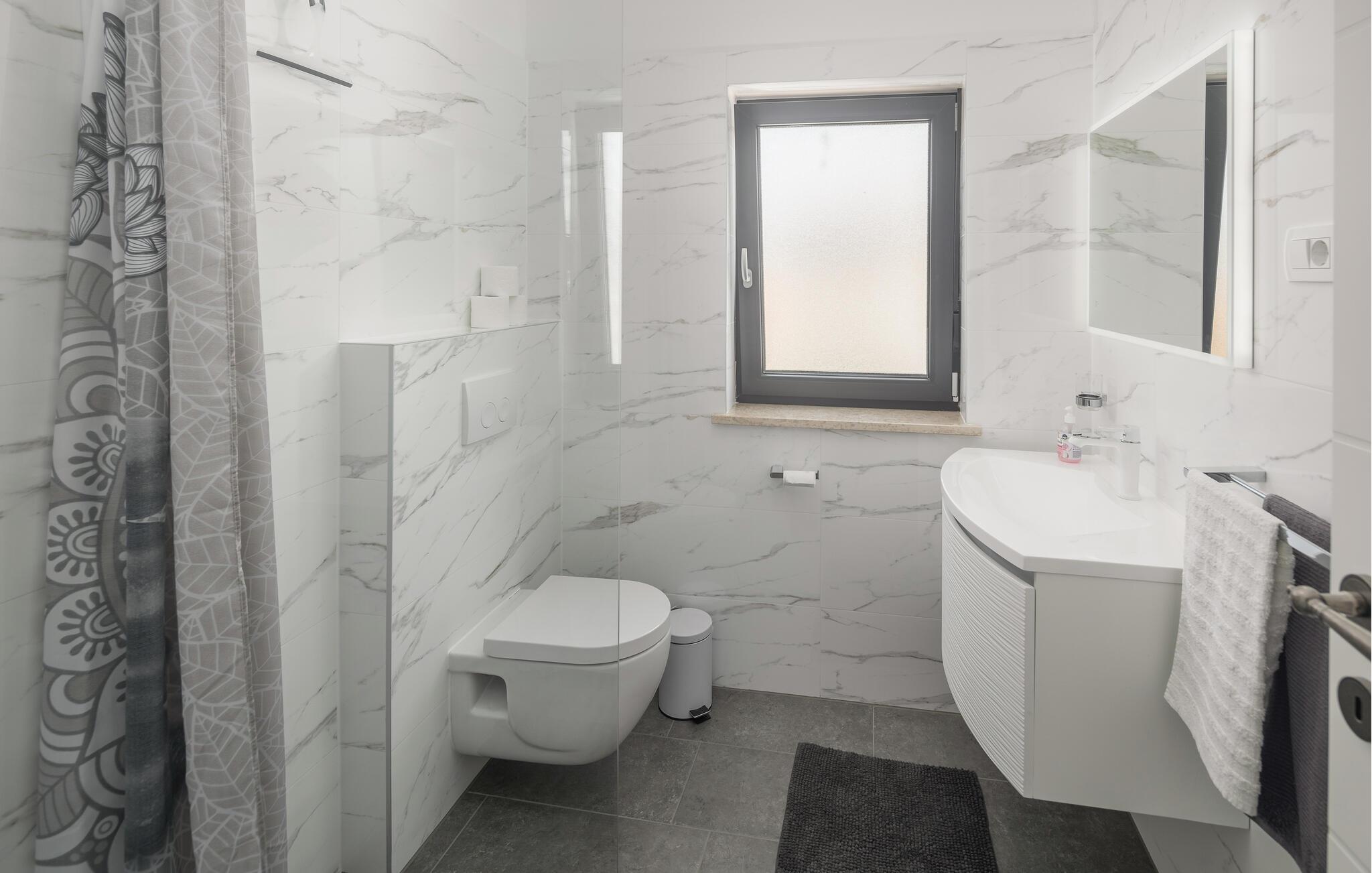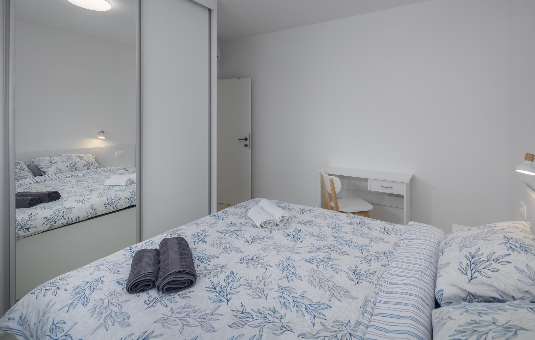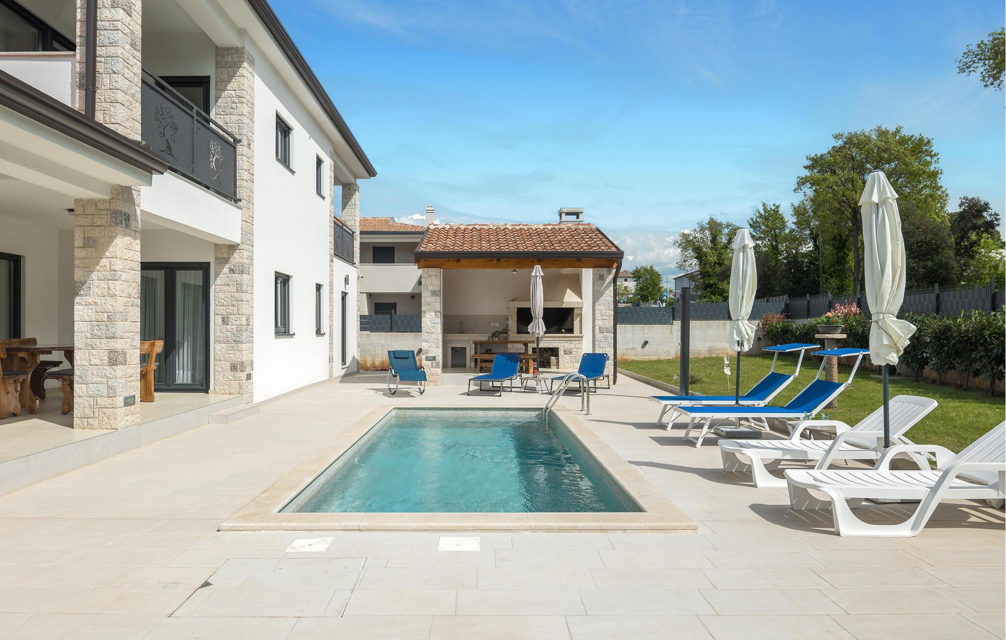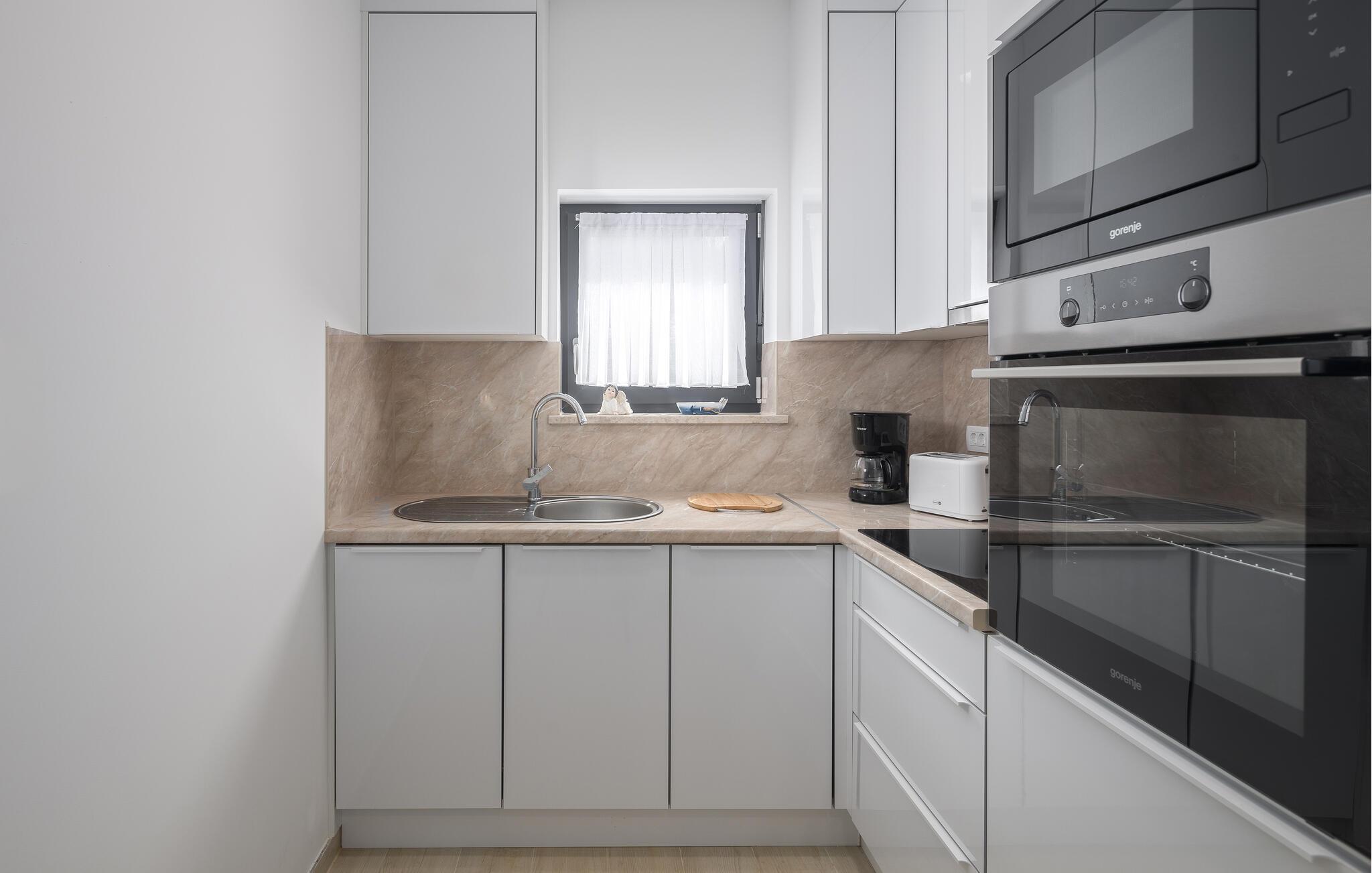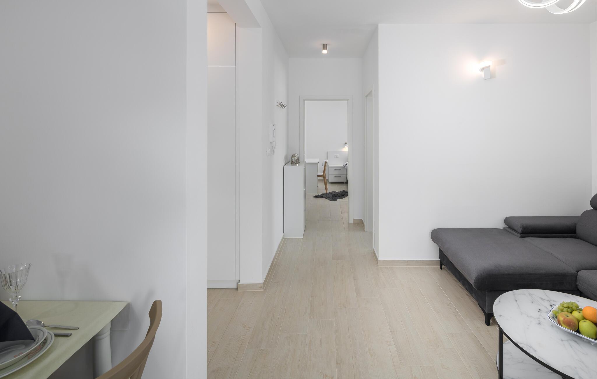 Tag den lille familie under armen og rejs til Porec, hvor der venter jer en herlig base i denne lækre lejlighed. Boligen er særdeles veludstyret med høj kvalitet over hele linjen, både hvad angår indretning og møblement. Kræs om livretterne i det moderne køkken og nyd dem på jeres altan i solen. Udover altanen har I også adgang til en fælles have, hvor I kan dyppe jer i poolen, så ofte I lyster. Poolen og haven deles med gæsterne i den anden lejlighed i huset.