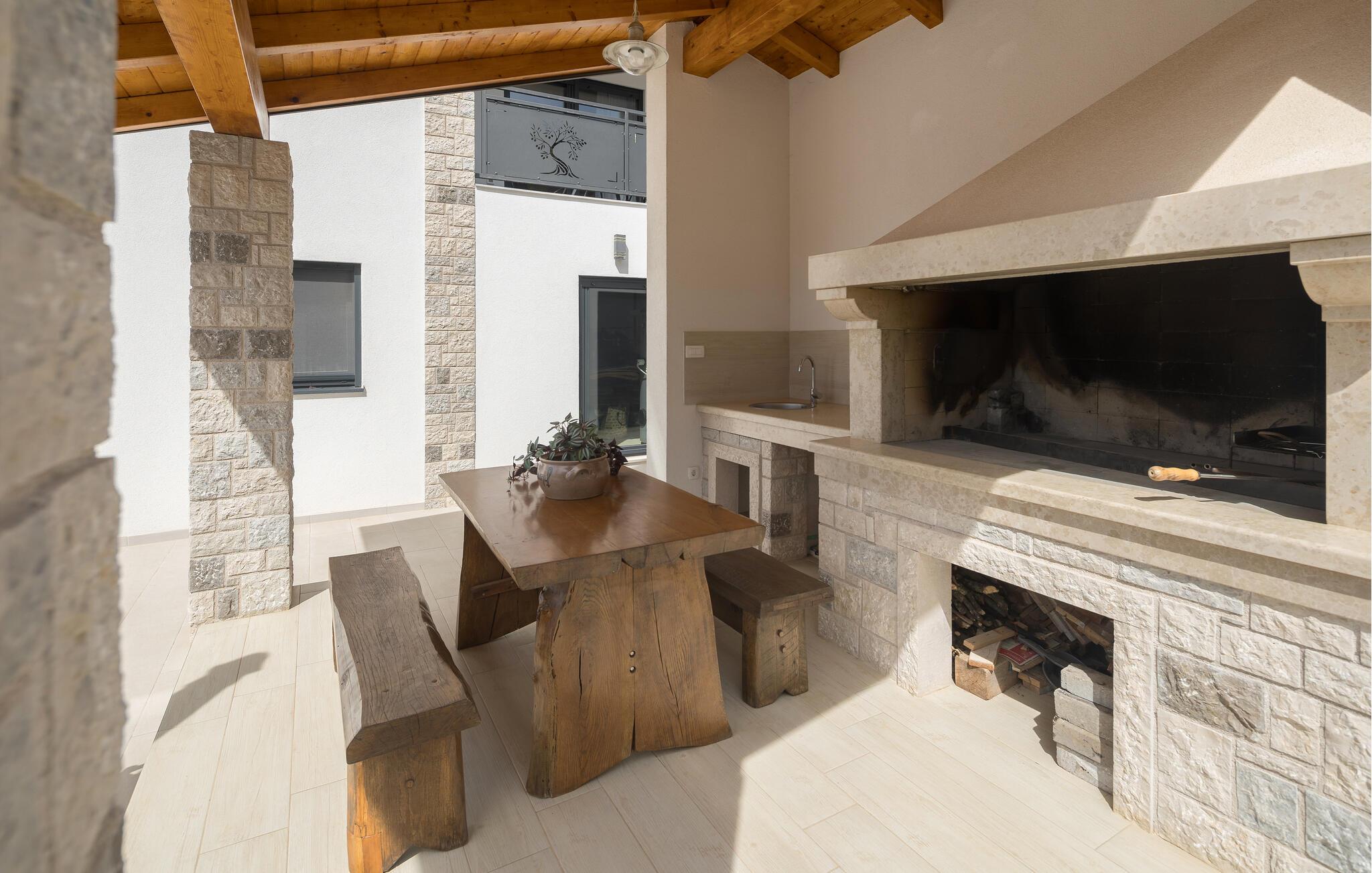 På den store, overdækkede terrasse kan I runde en lækker feriedag af med saftige bøffer fra murstensgrillen i udekøkkenet og sidde til langt ud på aftenen med et godt glas vin.