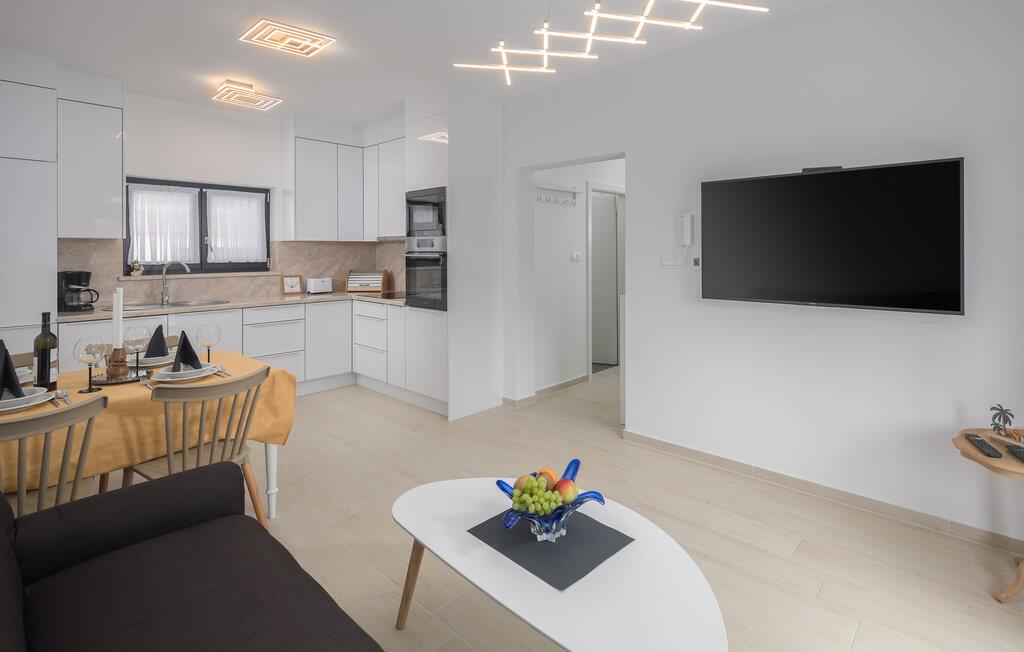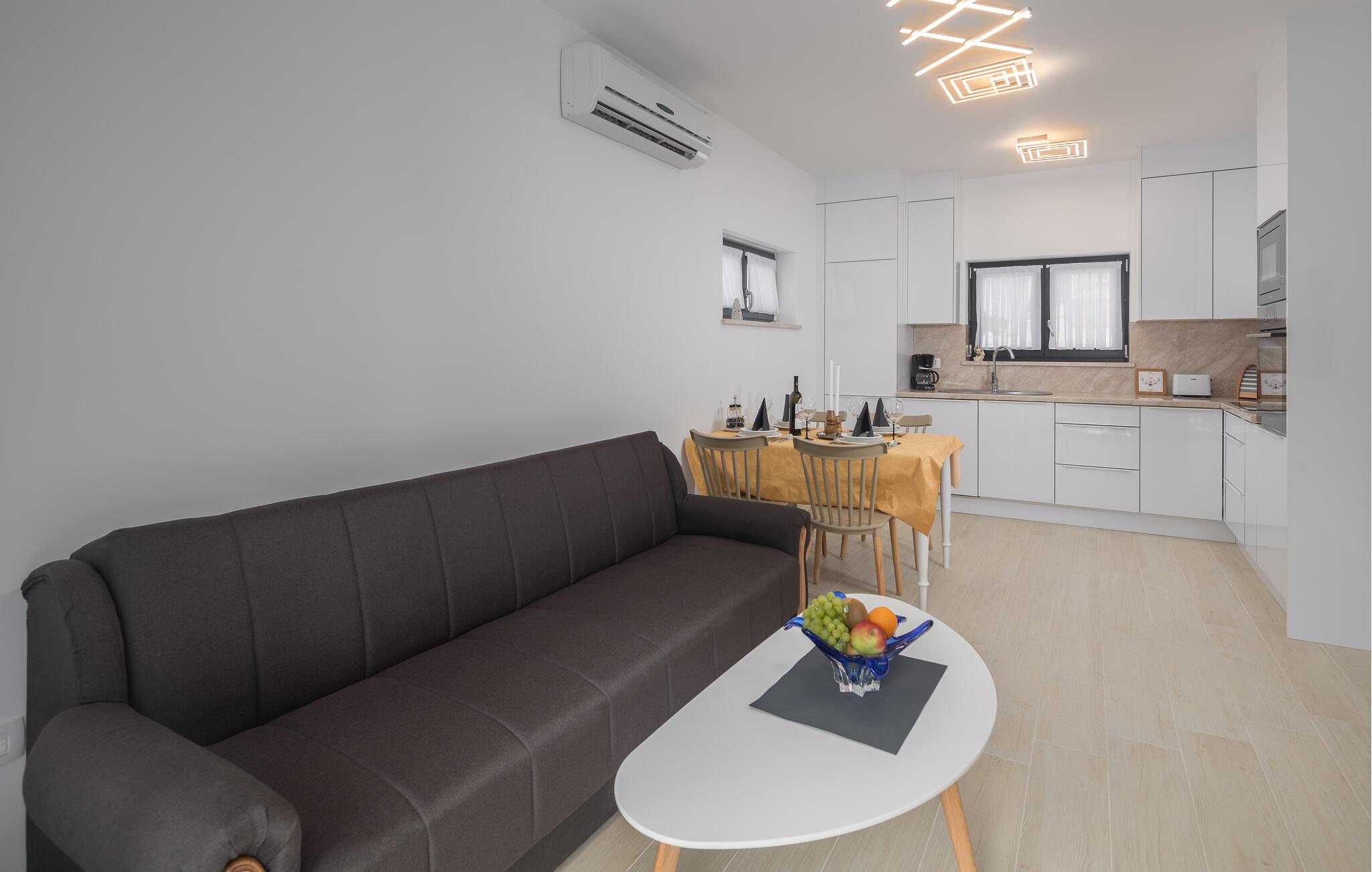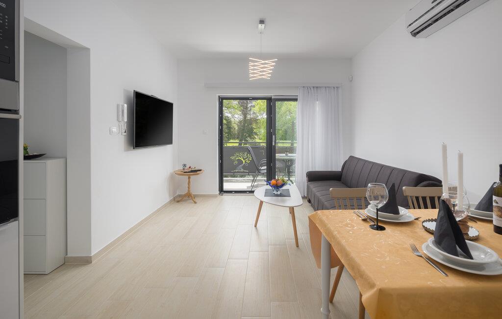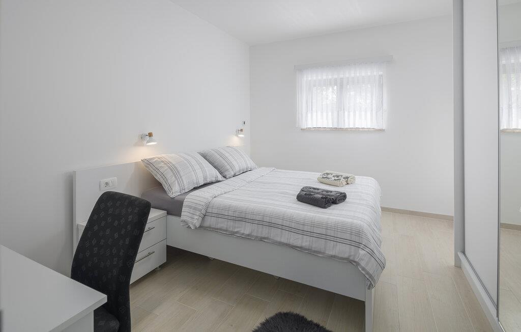 Tag den lille familie under armen og rejs til Porec, hvor der venter jer en herlig base i denne lækre lejlighed. Boligen er særdeles veludstyret med høj kvalitet over hele linjen, både hvad angår indretning og møblement. Kræs om livretterne i det moderne køkken og nyd dem på jeres altan i solen. Udover altanen har I også adgang til en fælles have, hvor I kan dyppe jer i poolen, så ofte I lyster. Poolen og haven deles med gæsterne i den anden lejlighed i huset.
