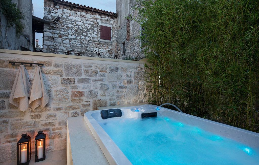 Smukke Villa Euphrasiana er en nyligt renoveret og smagfuldt indrettet villa i centrum af Porec. Kun en kort gåtur fra villaen finder du den berømte Euphrasian Basilica, et af de fineste overlevende monumenter af tidlig byzantinsk kunst i Middelhavet. Forskellige lokale faciliteter er også inden for gåafstand, herunder den nærmeste fantastiske strand kun 50 m væk. Villaens elegante og frem for alt interessante indretning skaber en særlig varm og imødekommende atmosfære med et strejf af luksus. Med et boligareal på 120 m2 har Villa Euphrasiana to rummelige soveværelser med dobbeltsenge. Begge soveværelser har et komfortabelt badeværelse med brusekabine. Det store soveværelses badeværelse er også udstyret med en sauna, hvor villaens gæster kan slappe af og slappe af. Stueetagen af villaen består af et elegant og fuldt udstyret køkken med spiseplads og en smuk stue perfekt til eftermiddags fritid. Hele villaen har gulvvarme, hvilket gør den til det perfekte valg til en ferie året rundt. Villaens luksuriøse tilbud suppleres af en jacuzzi på terrassen på første sal, som enhver gæst i huset helt sikkert vil nyde. Byen Porec er kendt for sit spektakulære turist- og gastronomiske tilbud, rige kulturarv, lokalbefolkningens gæstfrihed og fester arrangeret både i byens centrum og i de omkringliggende turistlandsbyer. Gå ikke glip af muligheden for at få en virkelig vidunderlig ferie på Villa Euphrasiana og opleve alt, hvad Porec har at byde på. Kæledyr er tilladt på denne ejendom efter ejerens skøn eller mod et gebyr.