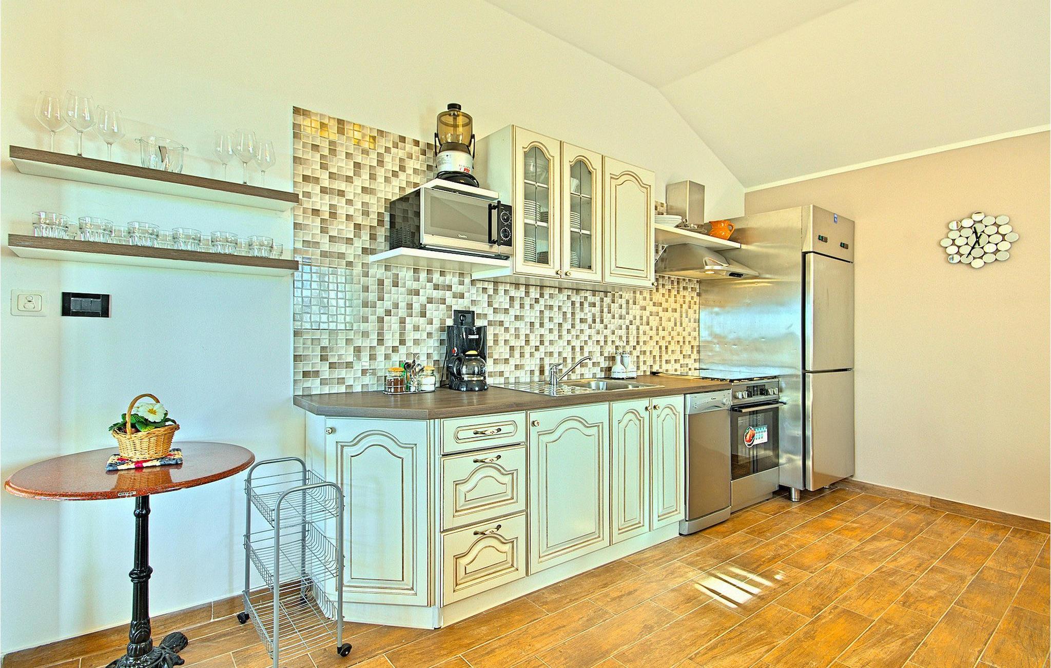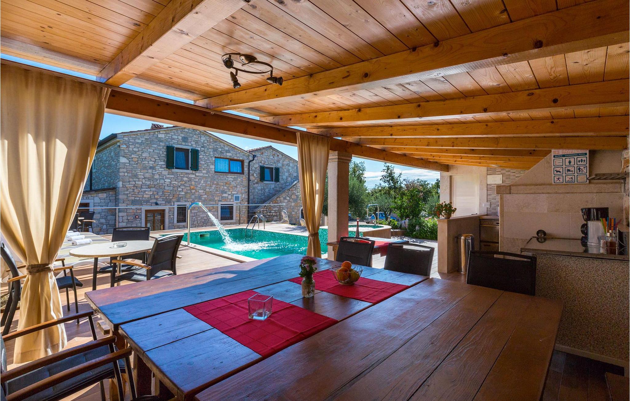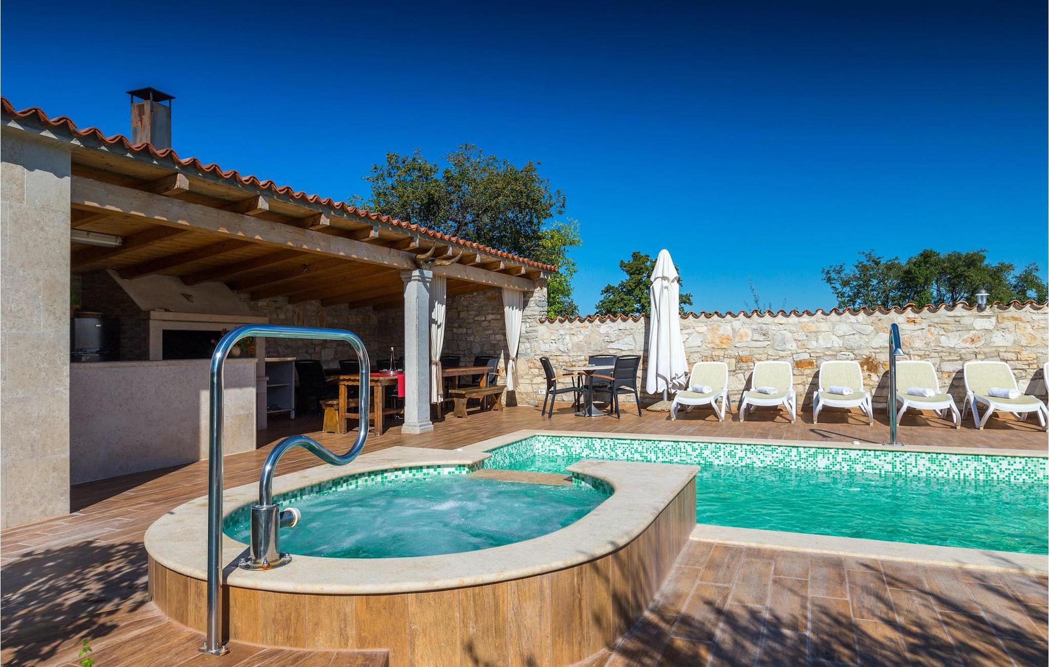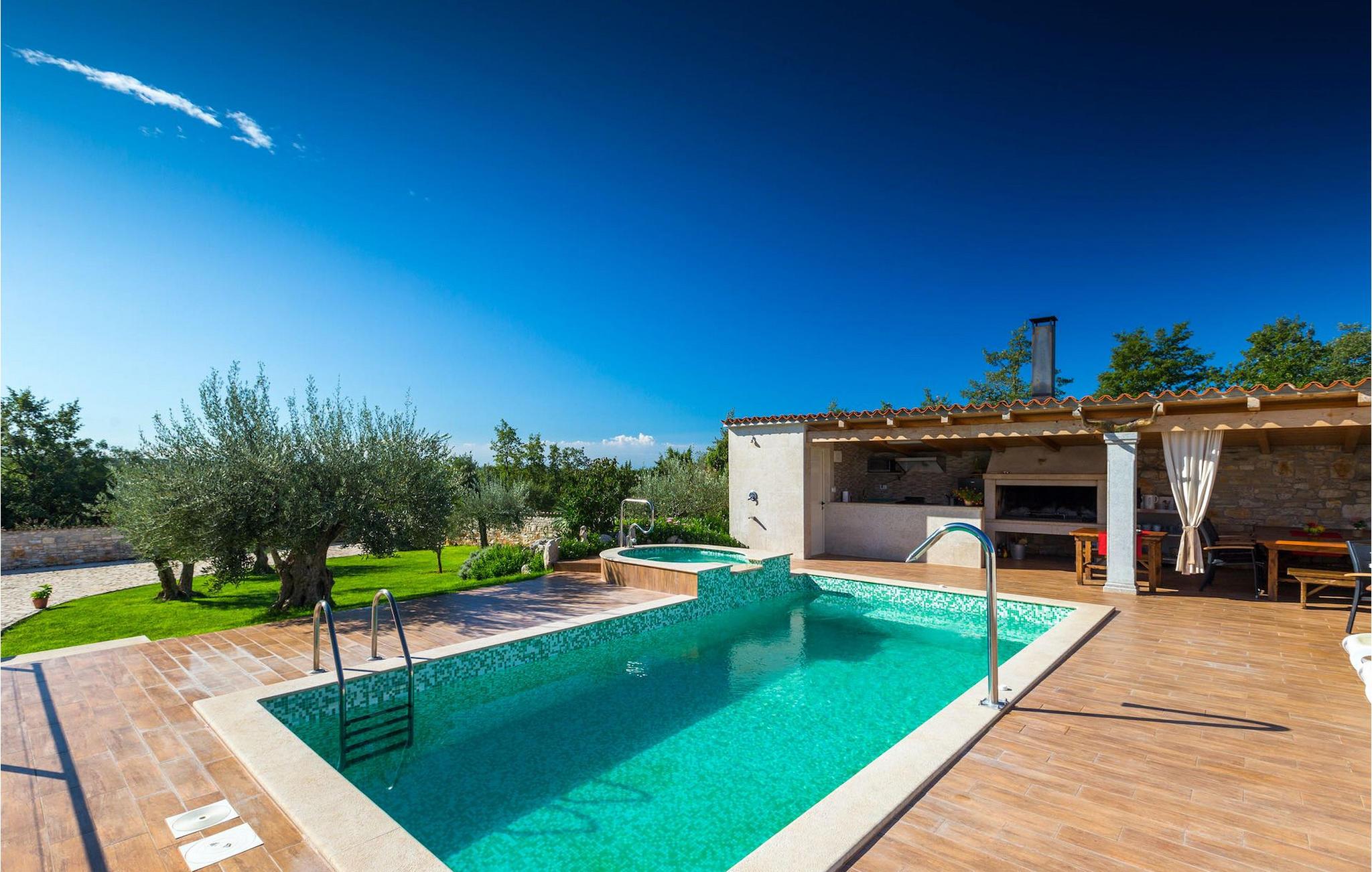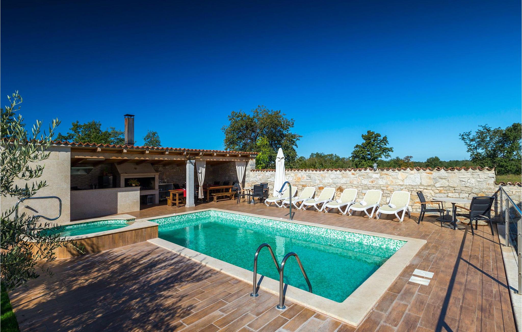 Villa Perci tilbyder det perfekte tilflugtssted kun 10 minutter væk fra det turistiske hotspot i Porec og er ideel for alle dem, der ikke har lyst til at lave mad, mens de er på ferie, da på den anden side af denne villa er en konoba / restaurant, hvor du kan bestille mad og drikkevarer med 20% rabat, også ejet af villaejerne. Du behøver ikke bekymre dig om privatlivets fred, da konobaen har en separat indgang. Villaen ligger i udkanten af en lille landsby på en stor 1500 m2 grund og er omgivet af stengærder. Du kan tilbringe din ferie med at nyde swimmingpoolen eller bare slappe af i solen. Villaen består af to lejligheder, med et soveværelse hver samt to separate soveværelser og et større køkken og spiseplads. Der er også en dejlig lukket terrasse med et opholdsområde samt et ekstra udekøkken med grill. Stueetagen udlejes ikke, da det er her restauranten ligger. Perci, en lille landsby på Istriens vestkyst, inden for rækkevidde fra Porec er indlejret i det magiske miljø på halvøen Istrien. Vores villa er omgivet af middelhavsvegetation og ligger kun få minutters kørsel fra Middelhavet. Porec turisme er mere end havet, solen og turistbilledet. Turisterne kan sagtens genkende byen, der bevarer sine historiske værdier. Du kan finde museer, gallerier og mange værdifulde bypaladser. Den uvurderlige bymidte, beliggende på en lille halvø nedsænket i havet. Dens grundlag blev sat på plads under det romerske imperiums styre. Bil anbefales.