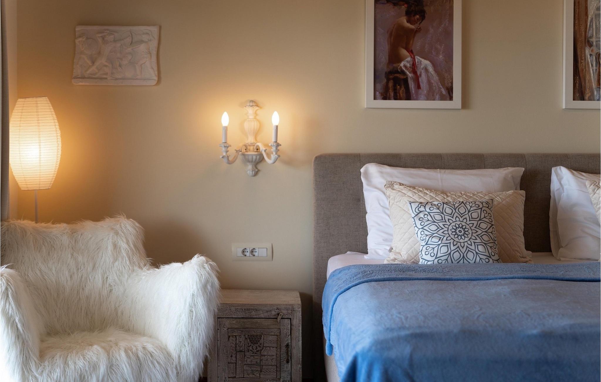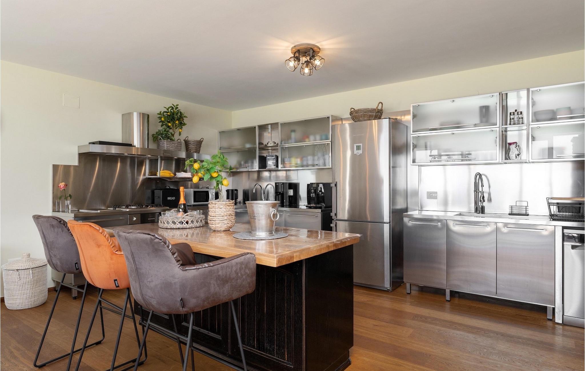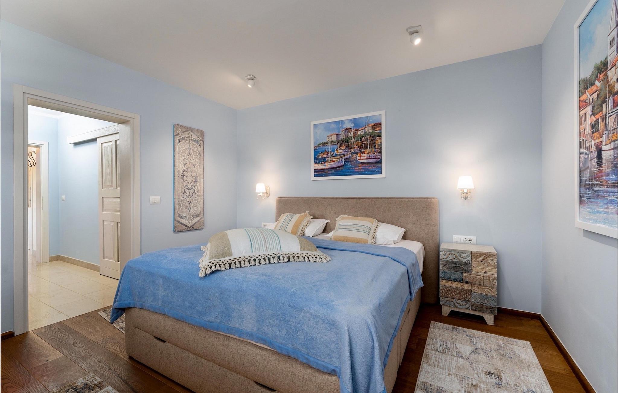 Denne smukke villa er beliggende nær Porec, i en lille landsby, som er 10 km væk fra havet og byens centrum. Villaen er bygget med sten og gode kvalitetsmaterialer, og den har en størrelse på 354m2, med 265m2 i stueetagen og 89m2 på første sal. Denne ejendom er beliggende på en 1.400m2 grund bestående af en velholdt have og eng. Ved siden af huset er der en garage på 58m2 til 2 køretøjer. Stueetagen har en stor stue med pejs, spisestue, køkken, spisekammer og 2 soveværelser med badeværelser (et af soveværelserne er placeret ved siden af køkkenet og det har en komfortabel sovesofa til 2 personer). Første sal har to soveværelser med ensuite badeværelser. Fra stuen har gæsterne let adgang til poolområdet og 40m2 privat swimmingpool. Soveværelserne ovenpå og poolområdet har en betagende havudsigt, så du kan nyde at svømme med udsigt til olivenlunde og Middelhavet. Udendørs kan du også slappe af i jacuzzien, som er tilgængelig på anmodning mod et ekstra gebyr. Denne ejendom er perfekt beliggende i fredelige olivenlunde og omkringliggende vinmarker, hvilket gør det til et perfekt tilflugtssted fra det hektiske moderne liv. Villaen er beliggende i udkanten af en lille landsby, der tilbyder fred og privatliv til familieferier, og alligevel er det kun 10-15 minutters kørsel fra den istriske juvel - Porec. Porec er det største turisthotspot i Istrien, hvor du vil finde alle slags aktiviteter, bemærkelsesværdige oplevelser og rig kulturarv. Det har 100 års erfaring inden for gæstfrihed og turisme. Sørg for ikke at gå glip af de mange fester, der arrangeres i turistlandsbyer og byens centrum. Der er strandklubber, kaffebarer, og efter midnat kan du nyde den behagelige atmosfære på natbarer og diskoteker. Intet andet end sjov fra solnedgang til solopgang! En bil anbefales. Temperaturen i den opvarmede swimmingpool er afhængig af eksterne faktorer, herunder vejrforhold, og som sådan kan temperaturen på vandet ikke garanteres.