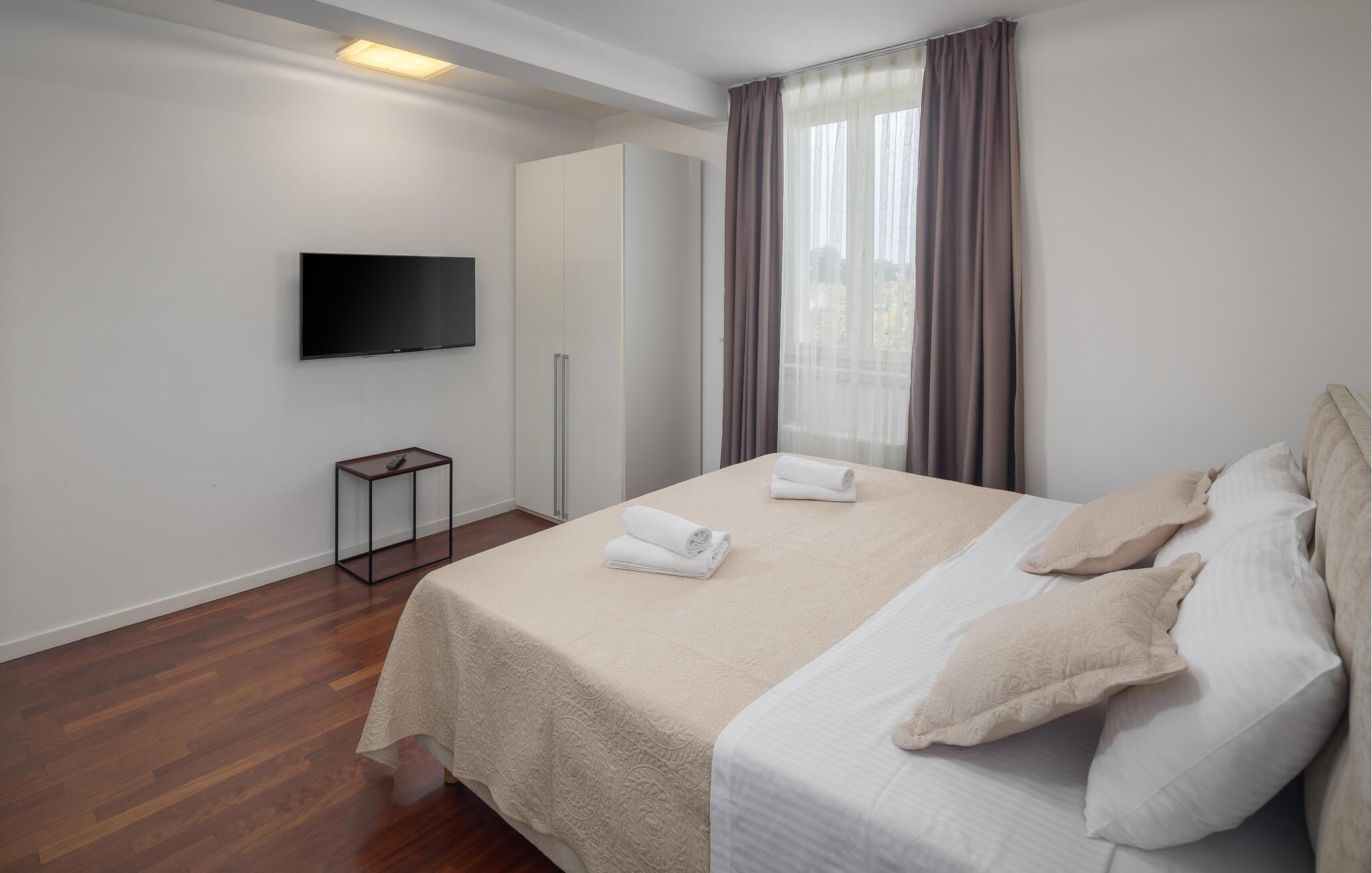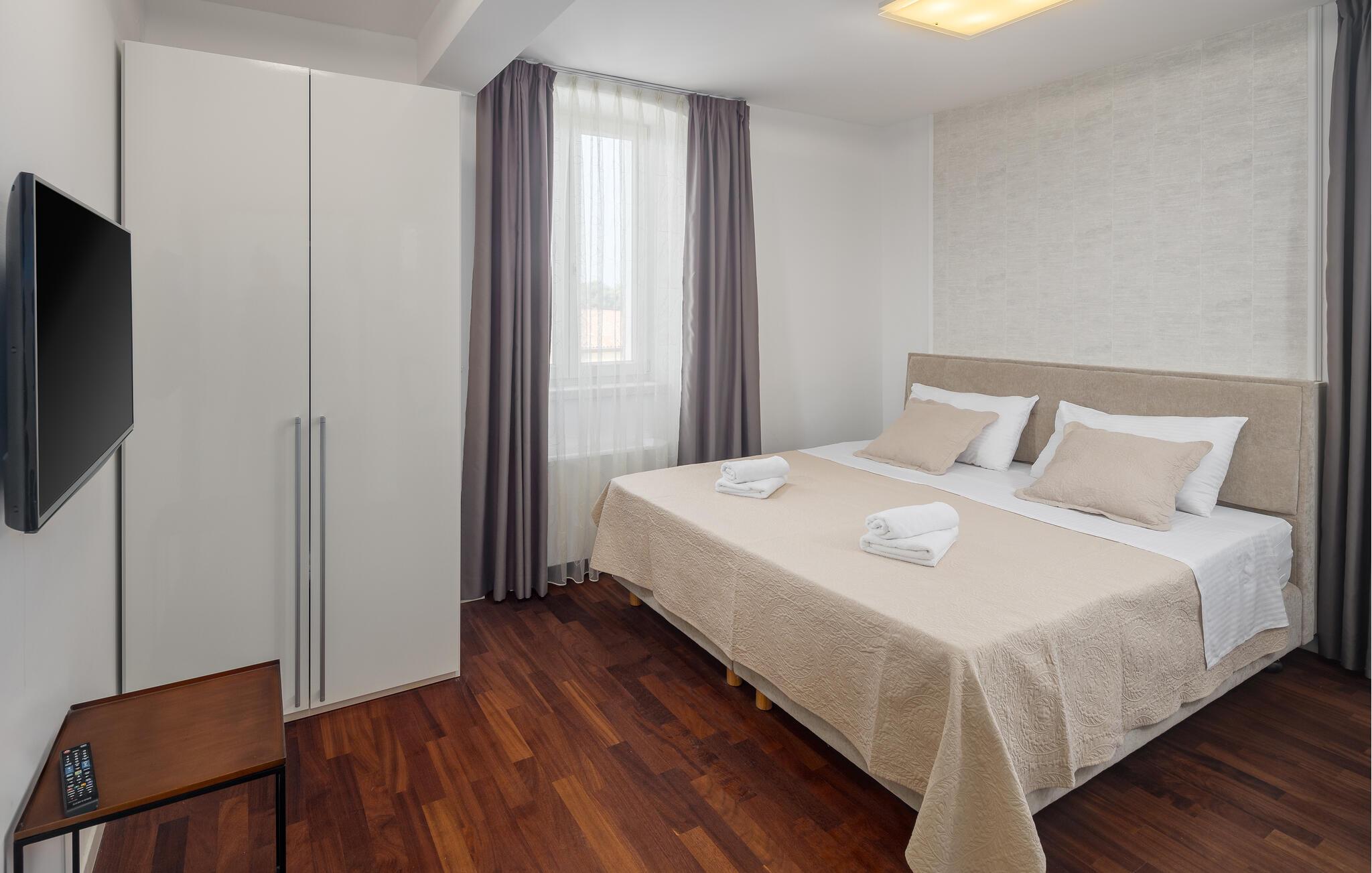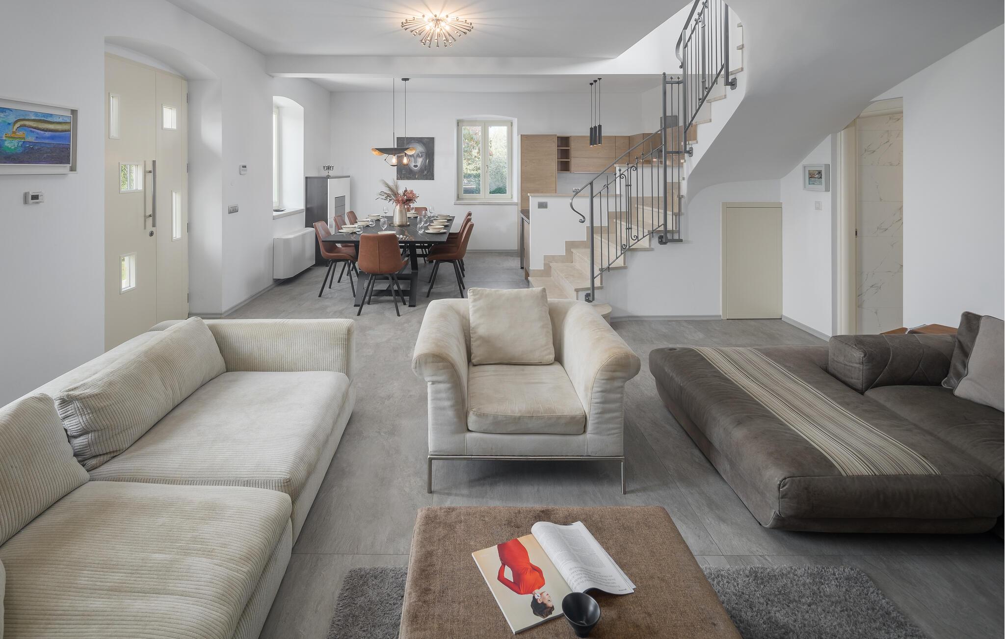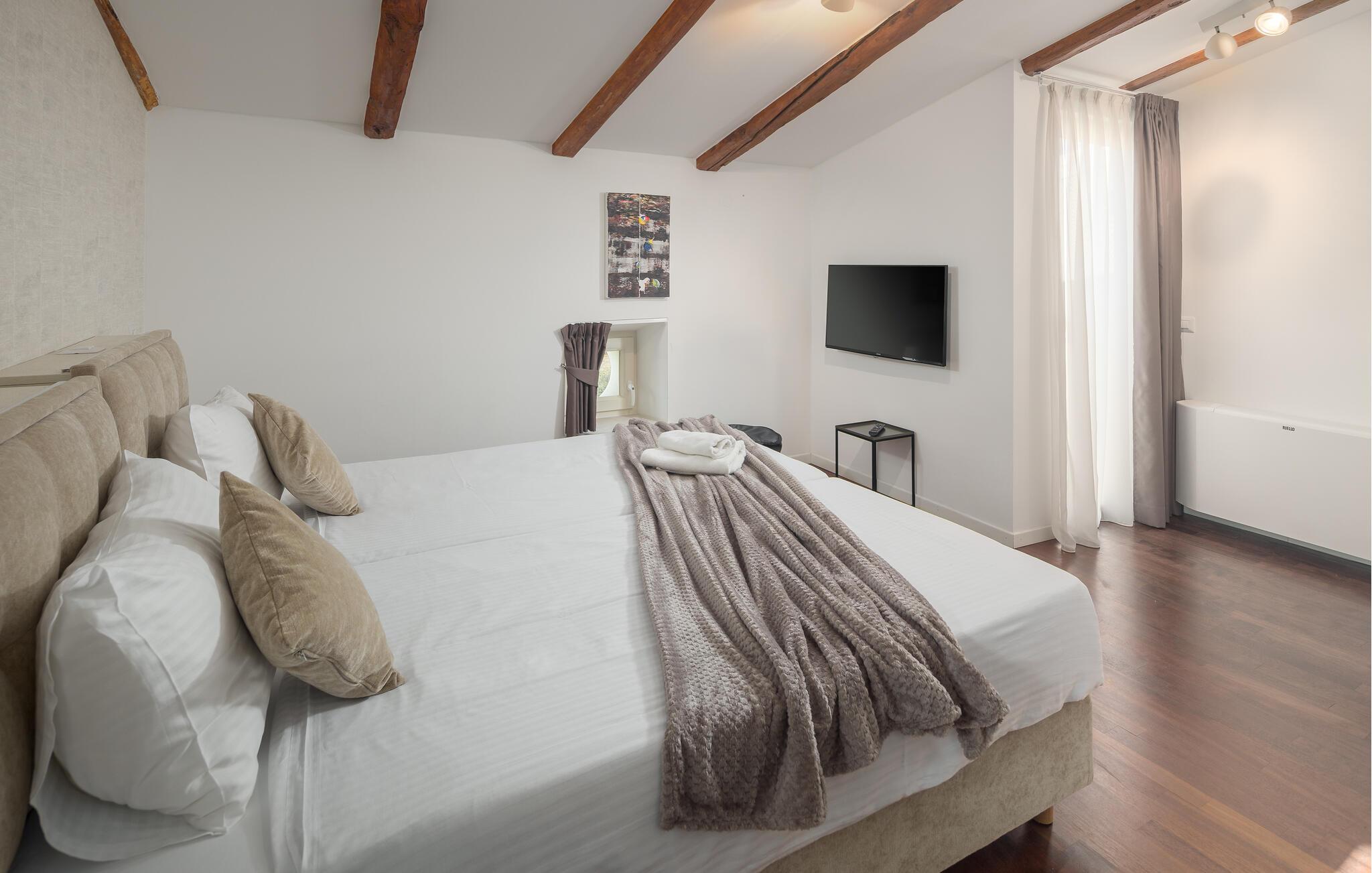 Beliggende i en by kendt for sin historiske arv, er den luksuriøse Villa Bruna i Porec den ideelle form for indkvartering til din afslappende ferie. Villaen blev restaureret på en moderne måde med nøje udvalgte detaljer og møbler, hvilket giver en varm og indbydende atmosfære. Ejendommen består af tre huse og kan rumme op til 10+2 gæster. Hovedhuset har 3 etager. I stueetagen finder du en rummelig stue, en spisestue og et fuldt udstyret køkken. Soveværelserne er fordelt på første og anden sal. Du finder 2 soveværelser med dobbeltsenge på første sal og yderligere 2 soveværelser med enkeltsenge, som kan skubbes sammen, på anden sal.