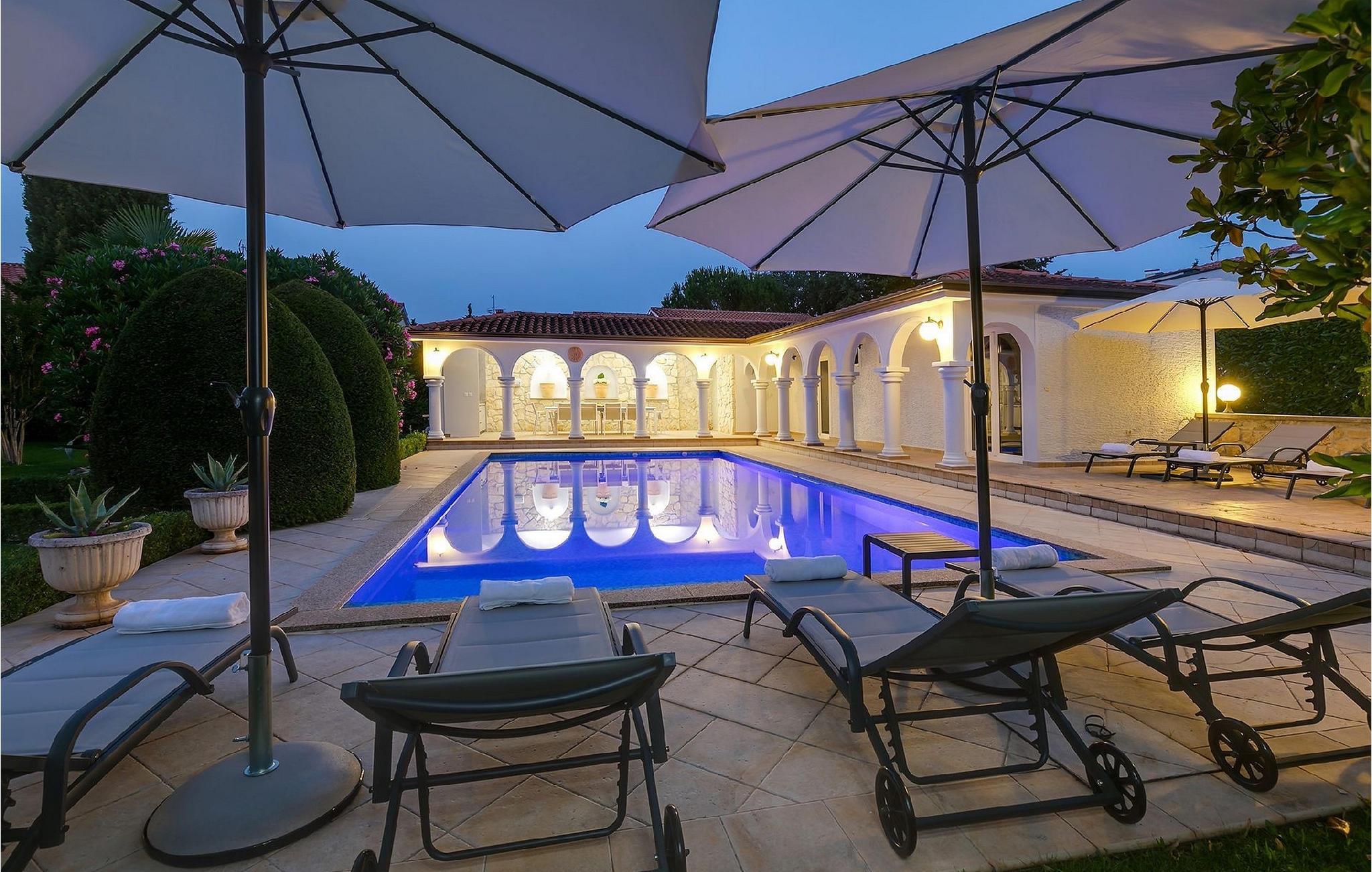 VIGTIGT: Ungdomsgrupper er ikke tilladt!Villa My Lia ligger i en lille landsby Kukci, ikke langt fra centrum af Porec. Ønsker du at holde din ferie ved havet, ligger smukke stenstrande kun 3 km fra villaen. Sørg for at besøge den smukke kystby Porec, som er fuld af historiske og kulturelle seværdigheder, såsom den Unesco-opførte Euphrasius-basilika. For alle gastronomielskere anbefaler vi at besøge Istriens bagland og prøve lokale og traditionelle retter i en af de mange toprestauranter. Når du er her, kan du besøge små middelalderbyer som Motovun, Buzet og Visnjan, fra hvis tinder du kan nyde en unik udsigt. For alle sportsfans er Istriens vestkyst det ideelle valg. For cyklister er der en række cykelstier, der egner sig til både øvede og mindre øvede cyklister. Der er også tre veludstyrede golfbaner. Den ene ligger i Brijuni National Park, som tiltrækker ikke kun golfspillere, men også andre naturelskere.