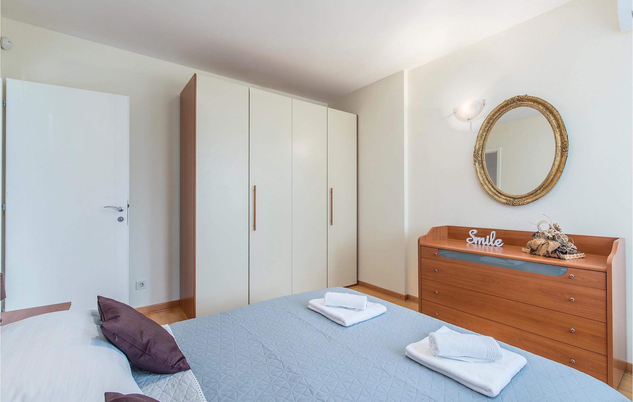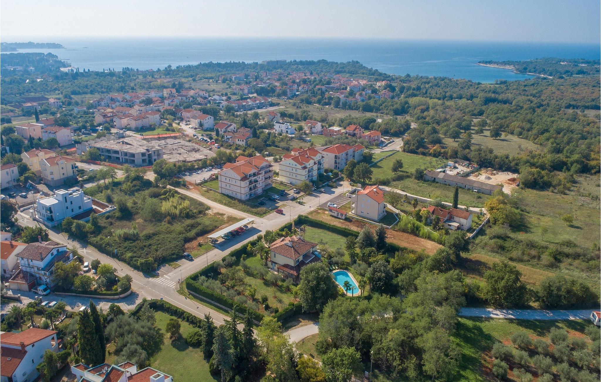 Det er kun 1 km væk fra havet, og dets beliggenhed er ideel for alle, der foretrækker en afslappende ferie, men også for dem, der kan lide at udforske turistbyer. I Porec kan du finde forskellige former for underholdning, fra sportsaktiviteter til restauranter, barer og natklubber. Da Porec er en tidligere romersk koloni, er byen primært kendt for sin rige kulturarv. Besøg den smukke Eufrasiusbasilika, som i øjeblikket er under Unesco-beskyttelse. I nærheden ligger byerne Groznjan og Motovun og kystbyer som Vrsar og Rovinj. Hvis du ønsker at udforske mere fjerntliggende dele af Istrien, er nationalparken Brijuni og det romerske amfiteater i Pula også let tilgængelige.