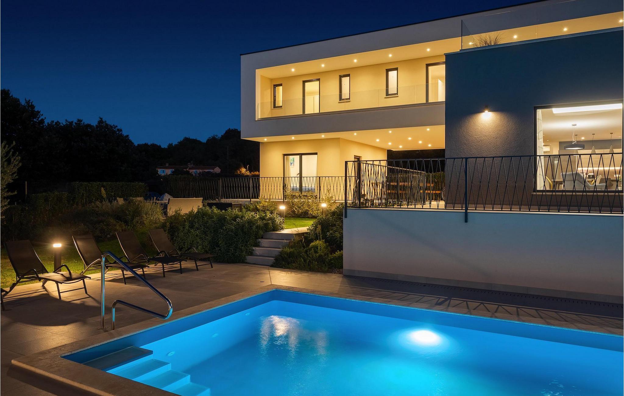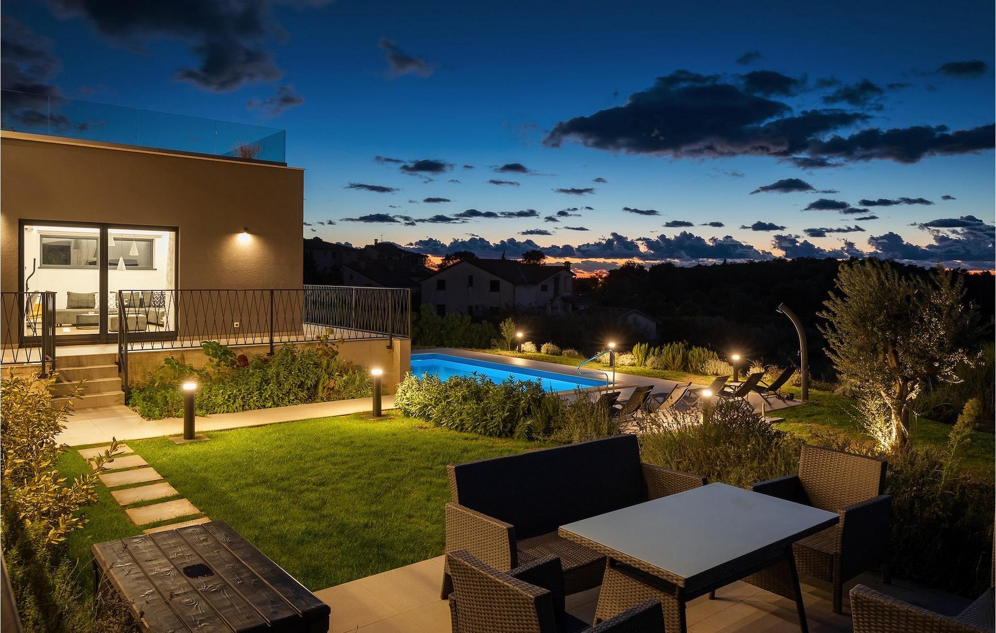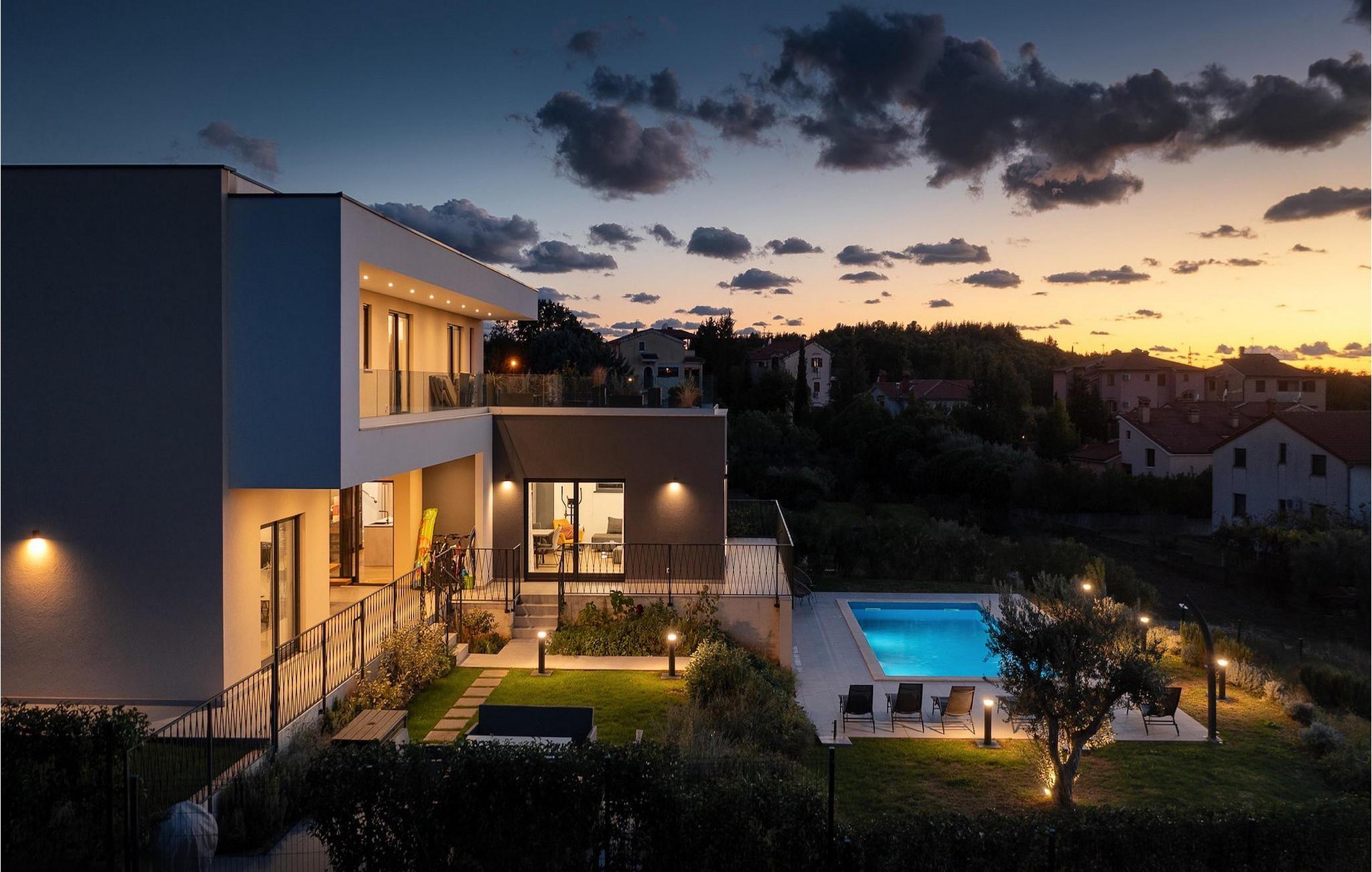 Rene linjer og elegante farveaccenter - Villa Maya Mugeba er kendetegnet ved et tidløst, moderne design. Med i alt 244 kvm byder den på plads og komfort for op til 8 personer. Udearealet er ikke mindre attraktivt. Der venter dig en forfriskende privat pool og have, som vil være smukt grøn, når du ankommer. Lad os tage en tur!