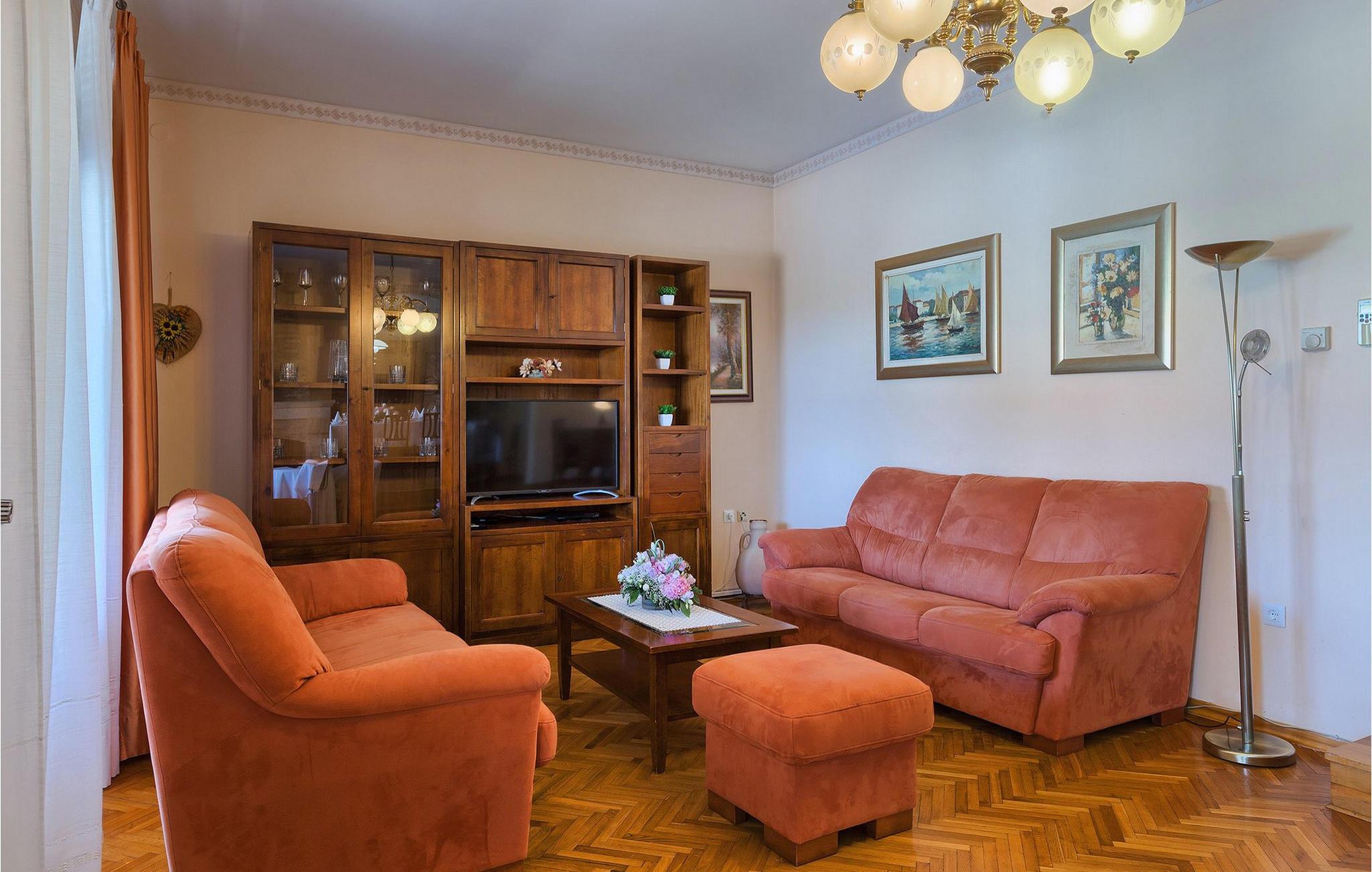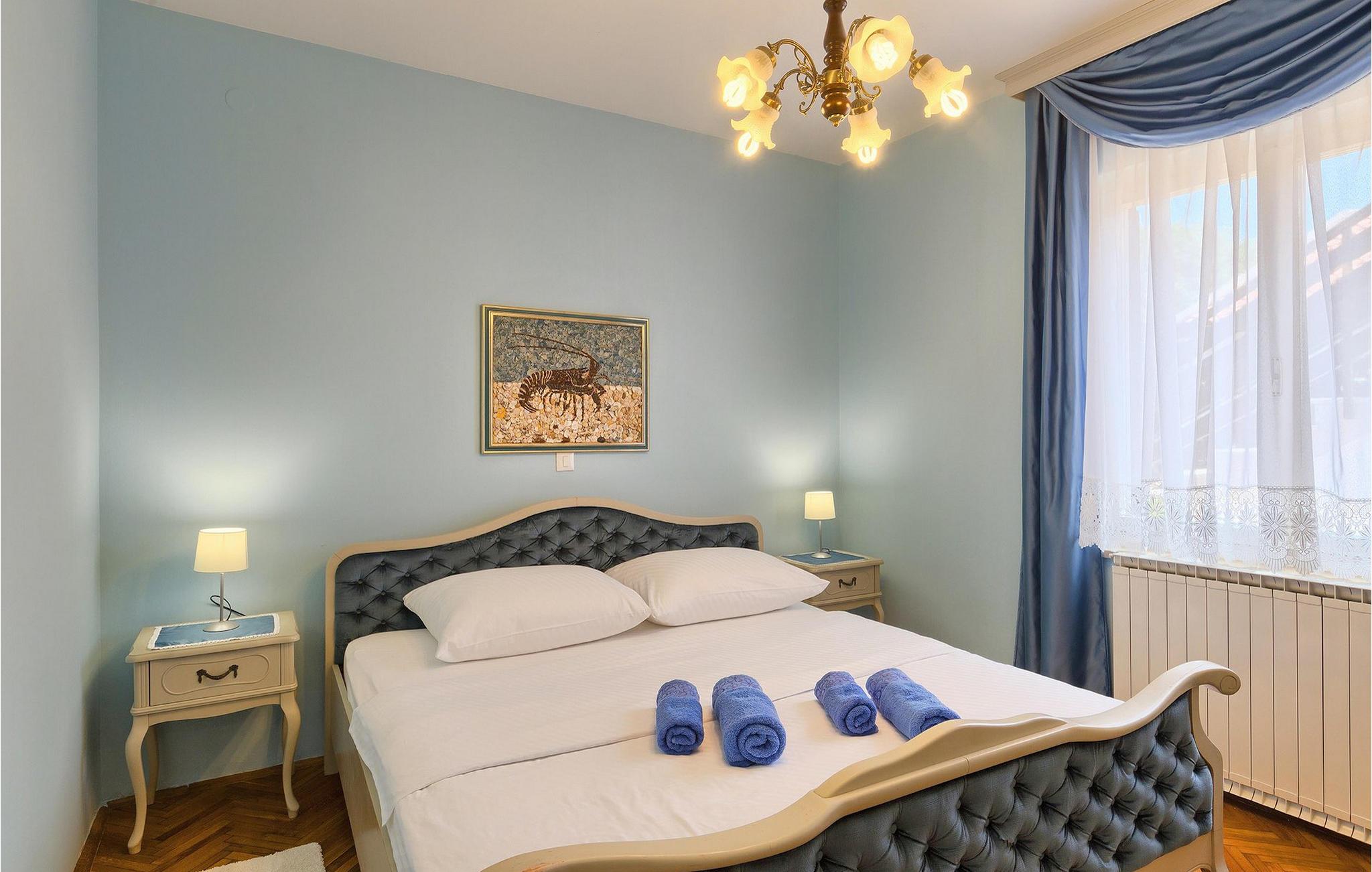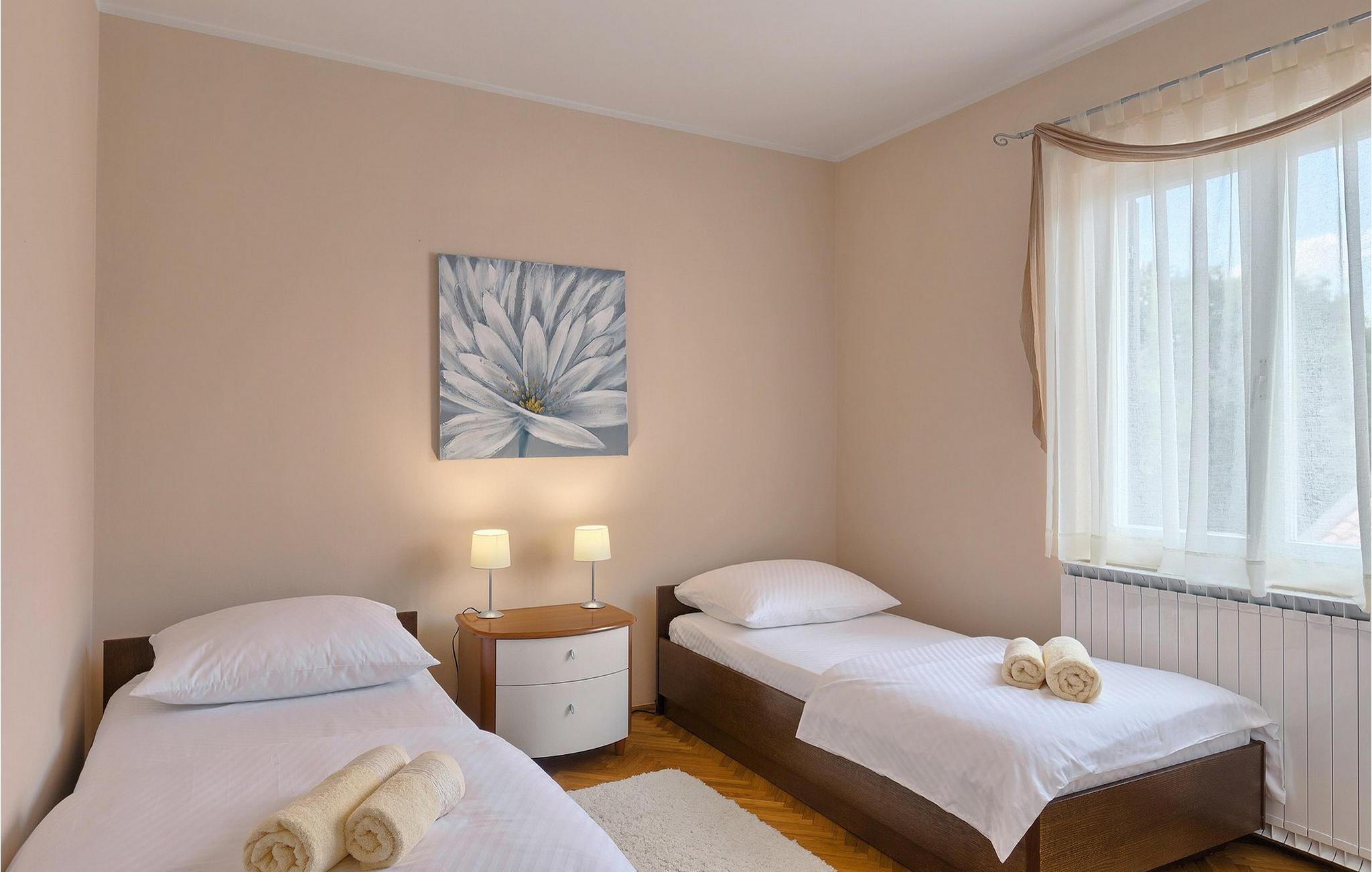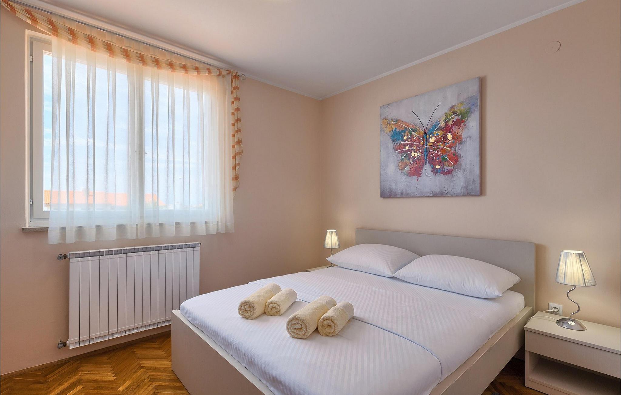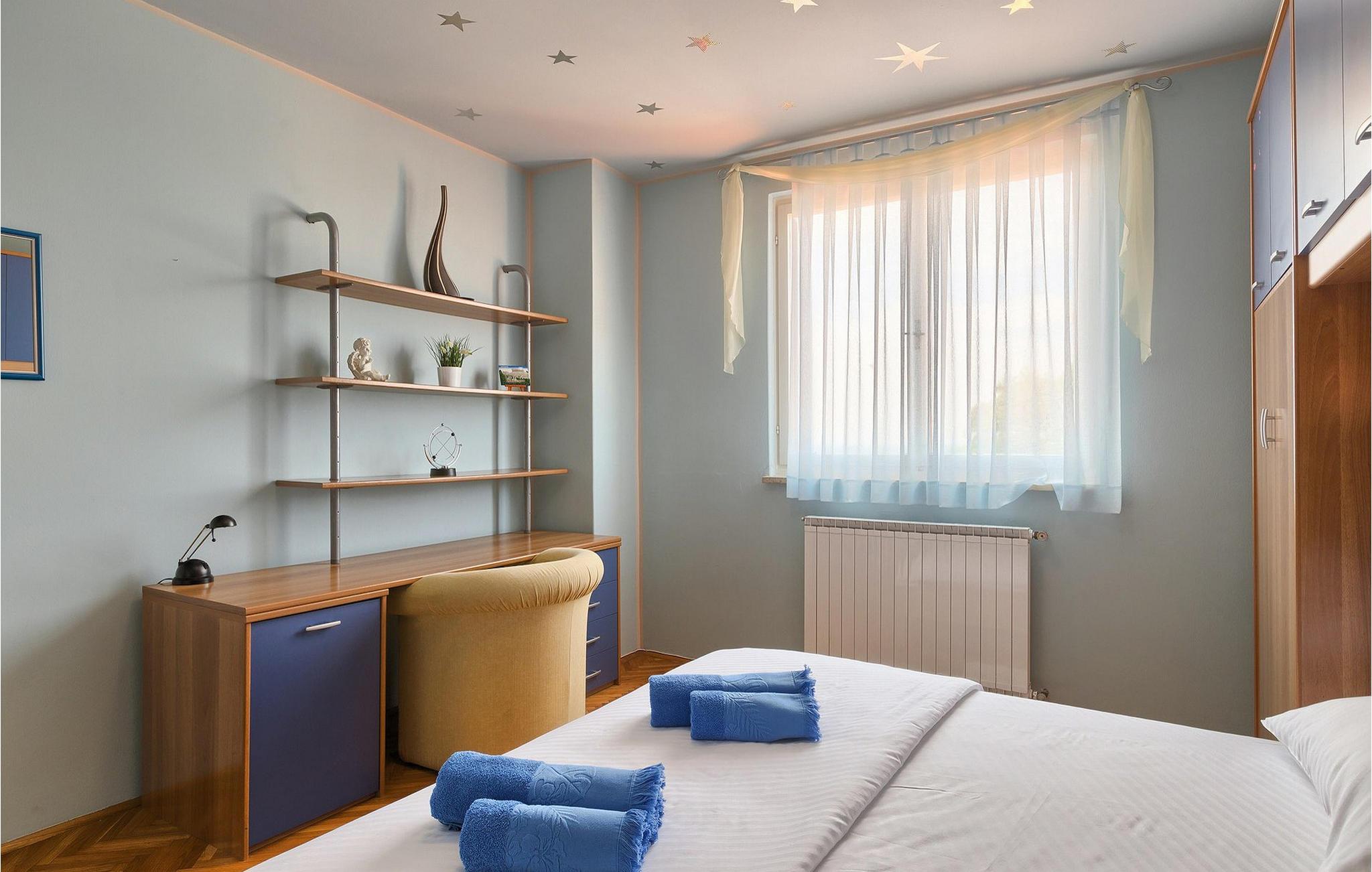 Diese wunderschöne Villa für 10 Personen befindet sich am Rande der schöner Küstenstadt Porec. Gelegen in einer friedlichen Nachbarschaft, Villa David ist die ideale Wahl für Familien, die nach einem Ort suchen, wo sie sich entspannen können und den Alltagsleben vergessen. Der wunderschön gepflegter grüner Garten wird Sie begeistern. Der Garten ist mit Pflanzen und Bäumen erfüllt, die einen besonderen mediterranen Duft verbreiten. Der Höhepunkt des Gartens ist der großer privater Pool mit Hydromassage. Der Pool ist von gemütlichen Liegestühlen umgeben und nur wenige Schritte von der wunderschönen überdachten Terrasse mit Außenküche und Essbereich entfernt, wo Sie Mahlzeiten zubereiten und speisen können. Das Innere der Villa ist schön eingerichtet, sehr hell und geräumig, und besteht aus 5 Schlafzimmern. Drei von ihnen verfügen über ein Doppelbett und zwei bestehen aus zwei Einzelbetten. Es gibt zwei Badezimmer mit jeweils einer Duschkabine. Im Erdgeschoss finden Sie ein Schlafzimmer, das Wohnzimmer, eine völlig ausgestattete Küche und einen Essbereich mit Zugang zur Terrasse mit einer gemütlichen Sitzecke und Tischfußball. Die restlichen vier Zimmer befinden sich im Obergeschoss. Der Balkon mit einem schönen Blick aufs Meer ist der perfekte Ort ist, um jeden Morgen Ihres Urlaubs zu beginnen. Die Villa ist komplett umzäunt, bietet wifi, 4 private Parkplätze und befindet sich in der Nähe aller Annehmlichkeiten, die Sie brauchen und nur eine kurze Fahrt vom nächsten Strand entfernt. Jugendgruppen sind nicht erlaubt.Gelegen im ruhigen Teil von Porec, aber nur eine kurze Fahrt vom Stadtzentrum entfernt, diese Villa ist ideal sowohl für diejenigen, die einen entspannenden Urlaub bevorzugen, als auch für diejenigen, die die Hektik der touristischen Städte mögen. In Porec finden Sie alle Arten von Aktivitäten, Restaurants, Bars und Clubs, aber die Stadt ist vor allem für ihr reiches kulturelles Erbe bekannt. Porec, früher eine römische Kolonie, erreichte seinen Höhepunkt während der Herrschaft des byzantinischen Kaiser Justinian. Die atemberaubende Euphrasius Basilika, unter dem UNESCO- Schutz, ist der beste Beweis dafür, wie glorreich diese Epoche war. Interessensgebiete sind die mittelalterlichen Städte Motovun und Groznjan sowie die Küstenstädte Rovinj und Vrsar. Etwas weiter entfernt, die Brijuni-Inseln, das römische Amphitheater in Pula und Venedig sind von dieser Region leicht erreichbar.