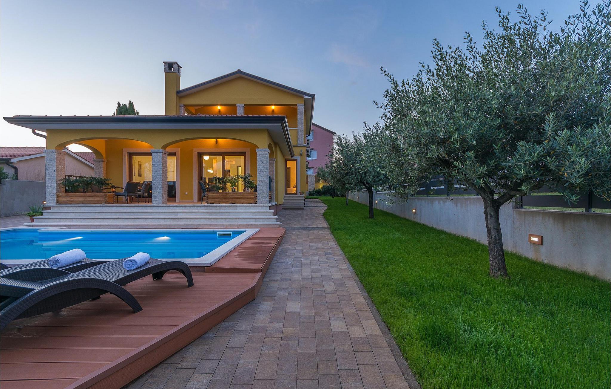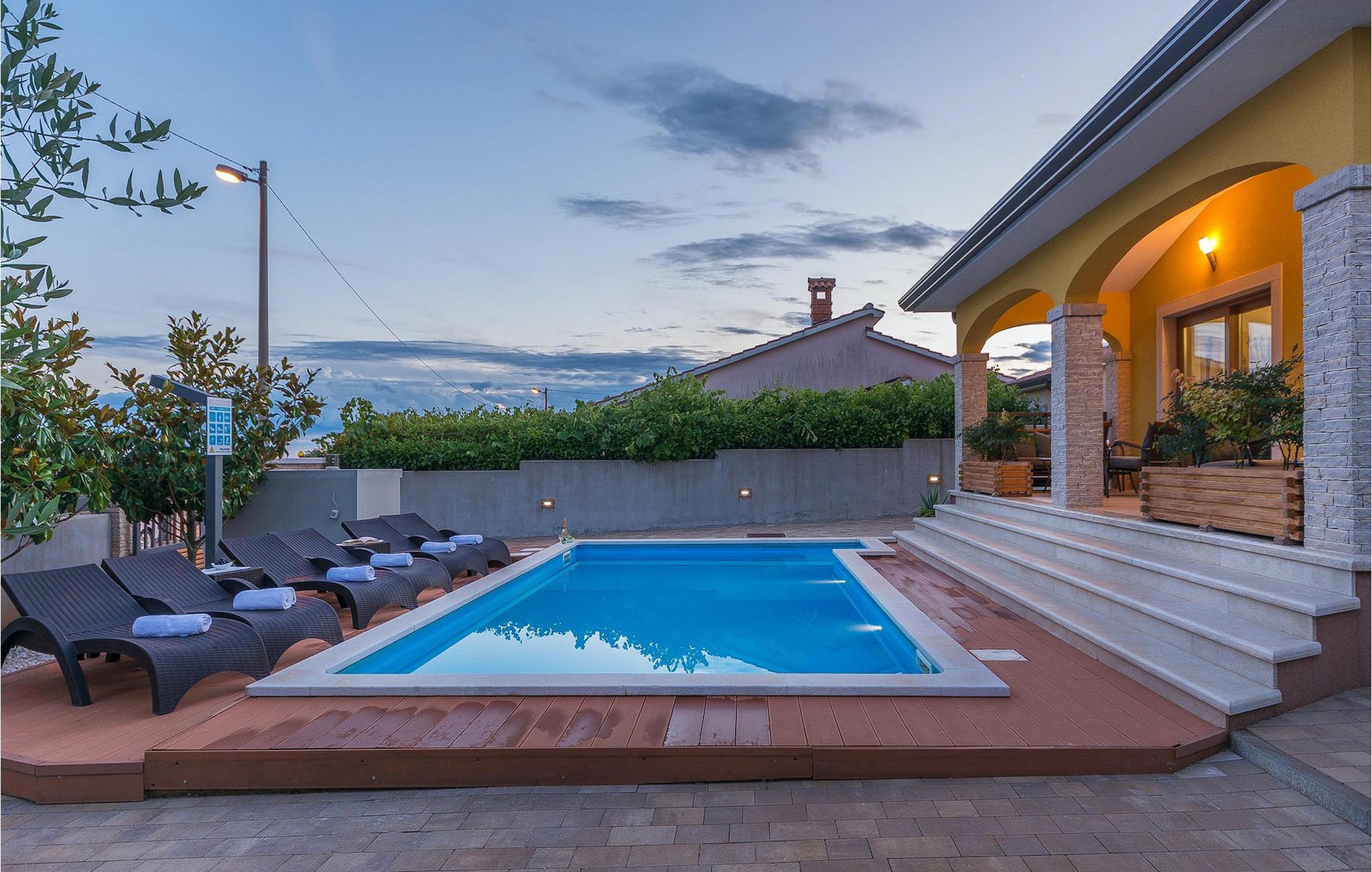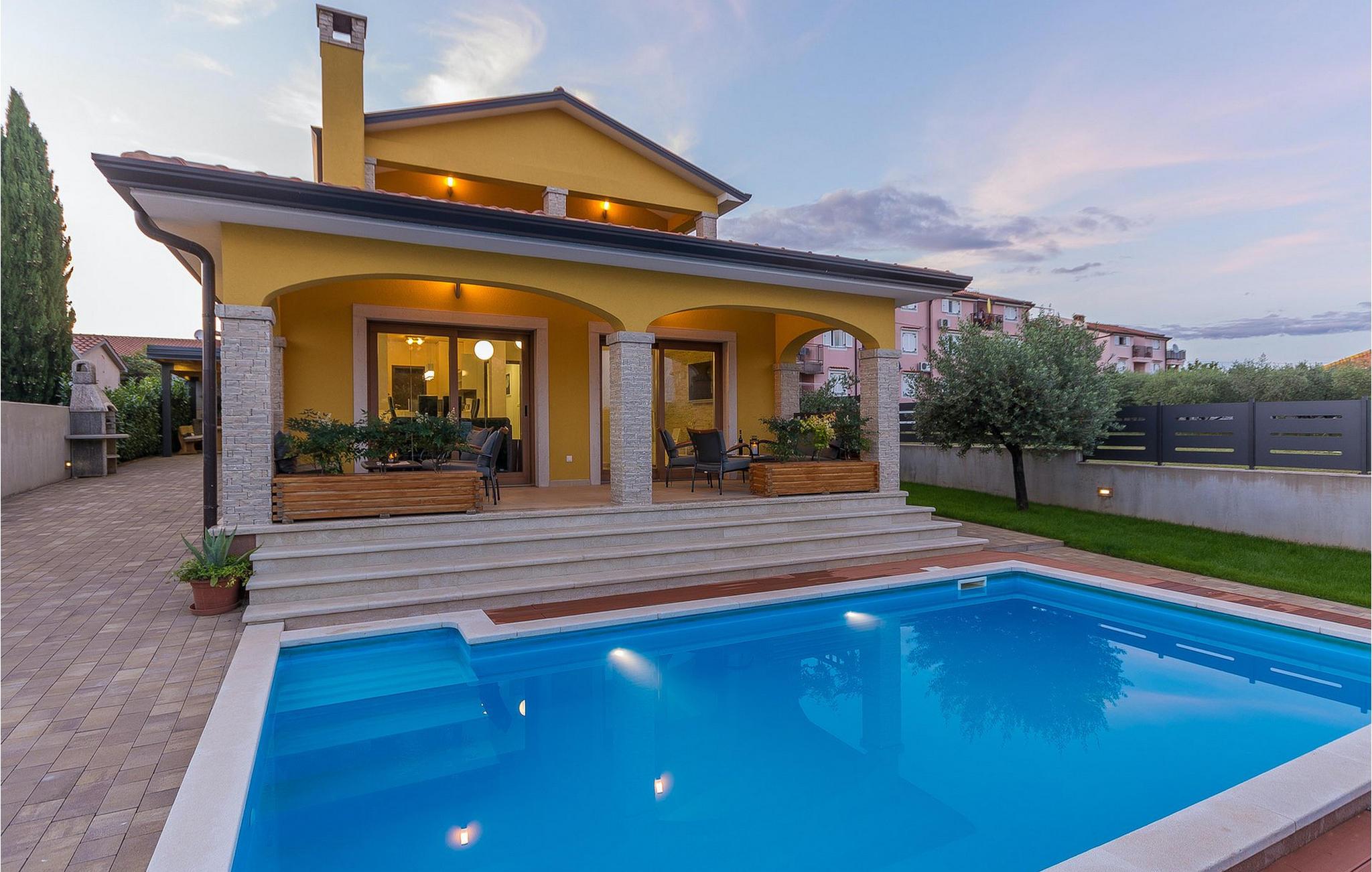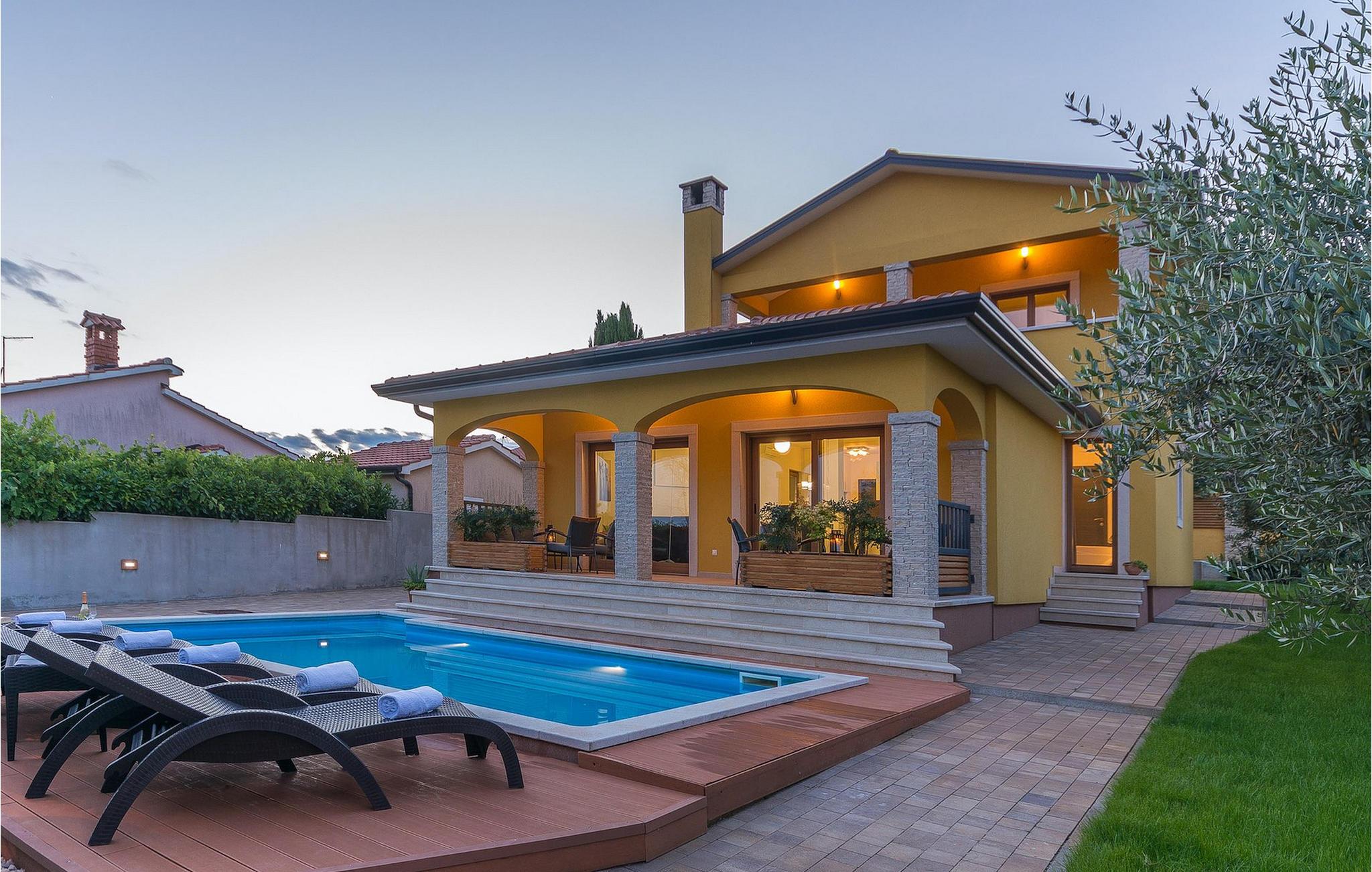 Villa Mala er en ideel familievilla beliggende på et roligt lille sted, men alligevel kun omkring 7 km væk fra turist-hotspottet Porec. Villaen har en dejlig privat pool, hvor du kan nyde de varme sommerdage. Liggestole, overdækket terrasse med udendørs spiseplads, kulgrill, bordfodbold - alt står til din rådighed for en helt afslappet ferie! Lige fra terrassen ved siden af poolen kan du komme ind i den hyggelige stue. Stuen er en del af det åbne koncept i stueetagen sammen med det fuldt udstyrede køkken og spisepladsen. Der er i alt tre soveværelser, hver med aircondition og tv. Den ene er i stueetagen og har eget badeværelse. De resterende to soveværelser og et badeværelse samt en dejlig altan ligger på øverste etage. Villa Mala er perfekt til at rumme 6 gæster. Book det og nyd din tid i denne dejlige villa ved at slappe af ved den indbydende private pool!