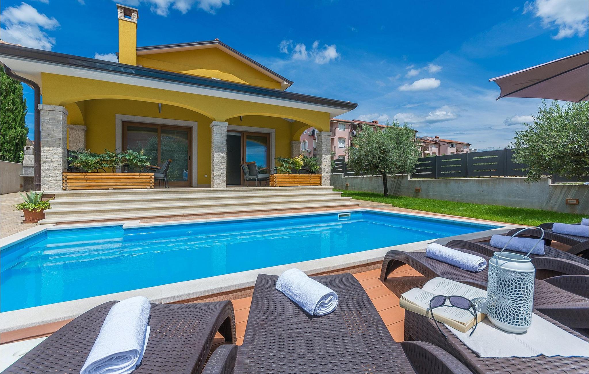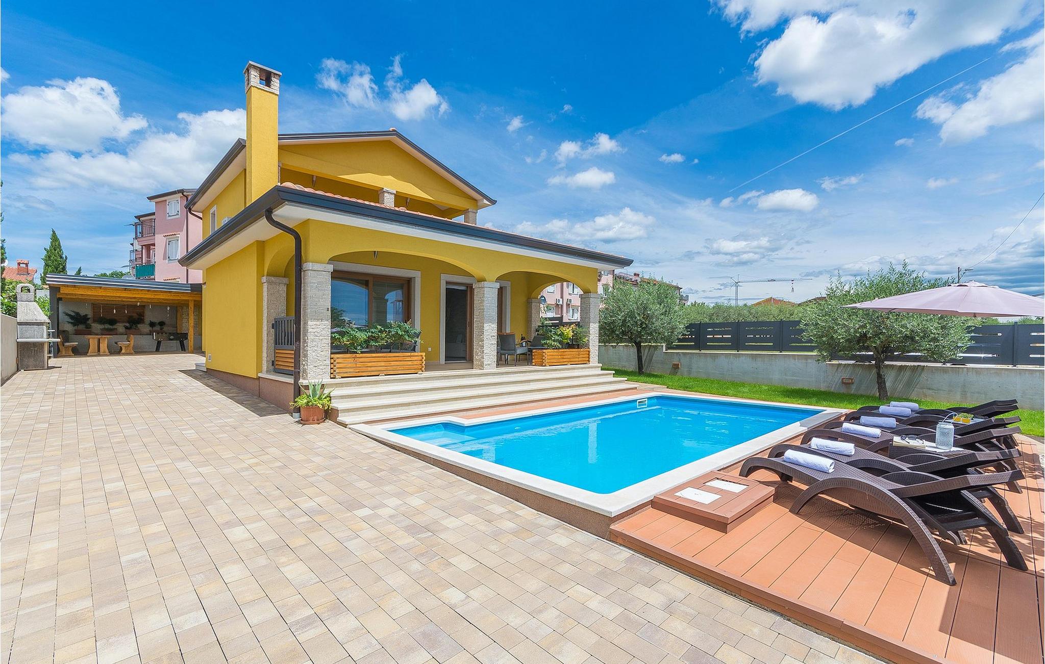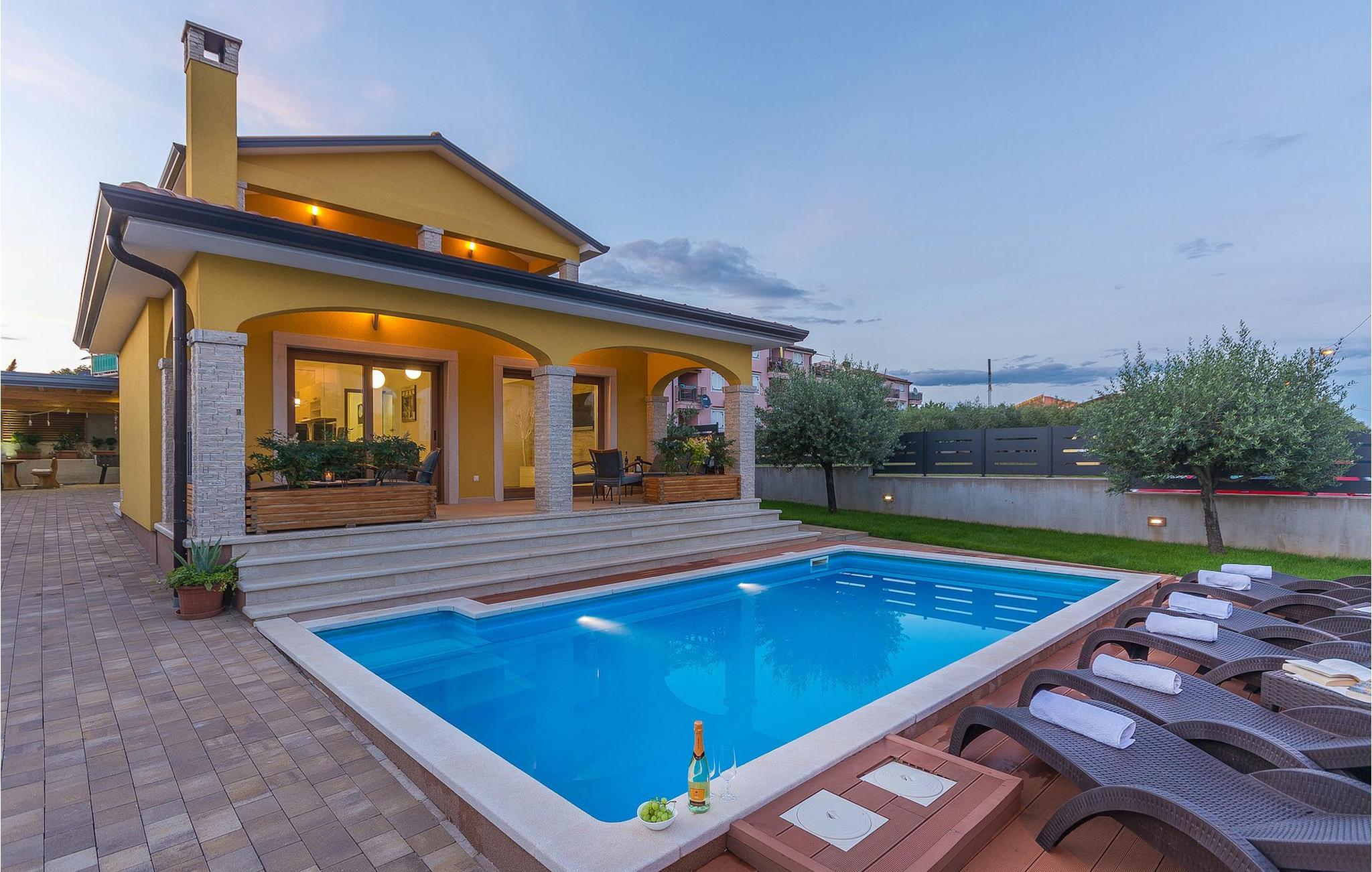 Villa Mala er en ideel familievilla beliggende på et roligt lille sted, men alligevel kun omkring 7 km væk fra turist-hotspottet Porec. Villaen har en dejlig privat pool, hvor du kan nyde de varme sommerdage. Liggestole, overdækket terrasse med udendørs spiseplads, kulgrill, bordfodbold - alt står til din rådighed for en helt afslappet ferie! Lige fra terrassen ved siden af poolen kan du komme ind i den hyggelige stue. Stuen er en del af det åbne koncept i stueetagen sammen med det fuldt udstyrede køkken og spisepladsen. Der er i alt tre soveværelser, hver med aircondition og tv. Den ene er i stueetagen og har eget badeværelse. De resterende to soveværelser og et badeværelse samt en dejlig altan ligger på øverste etage. Villa Mala er perfekt til at rumme 6 gæster. Book det og nyd din tid i denne dejlige villa ved at slappe af ved den indbydende private pool!