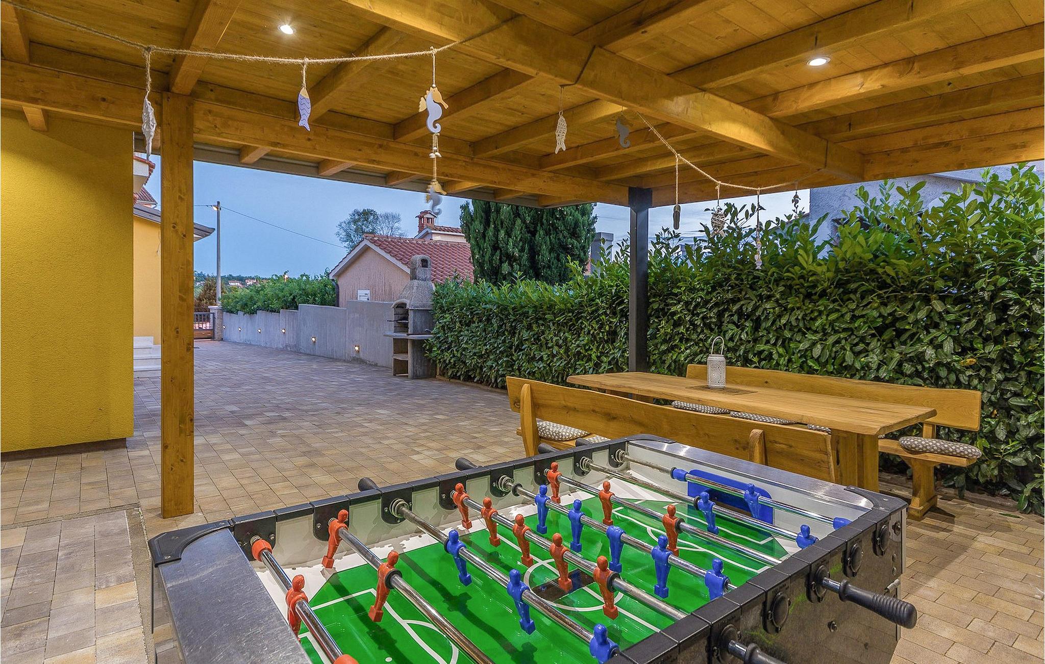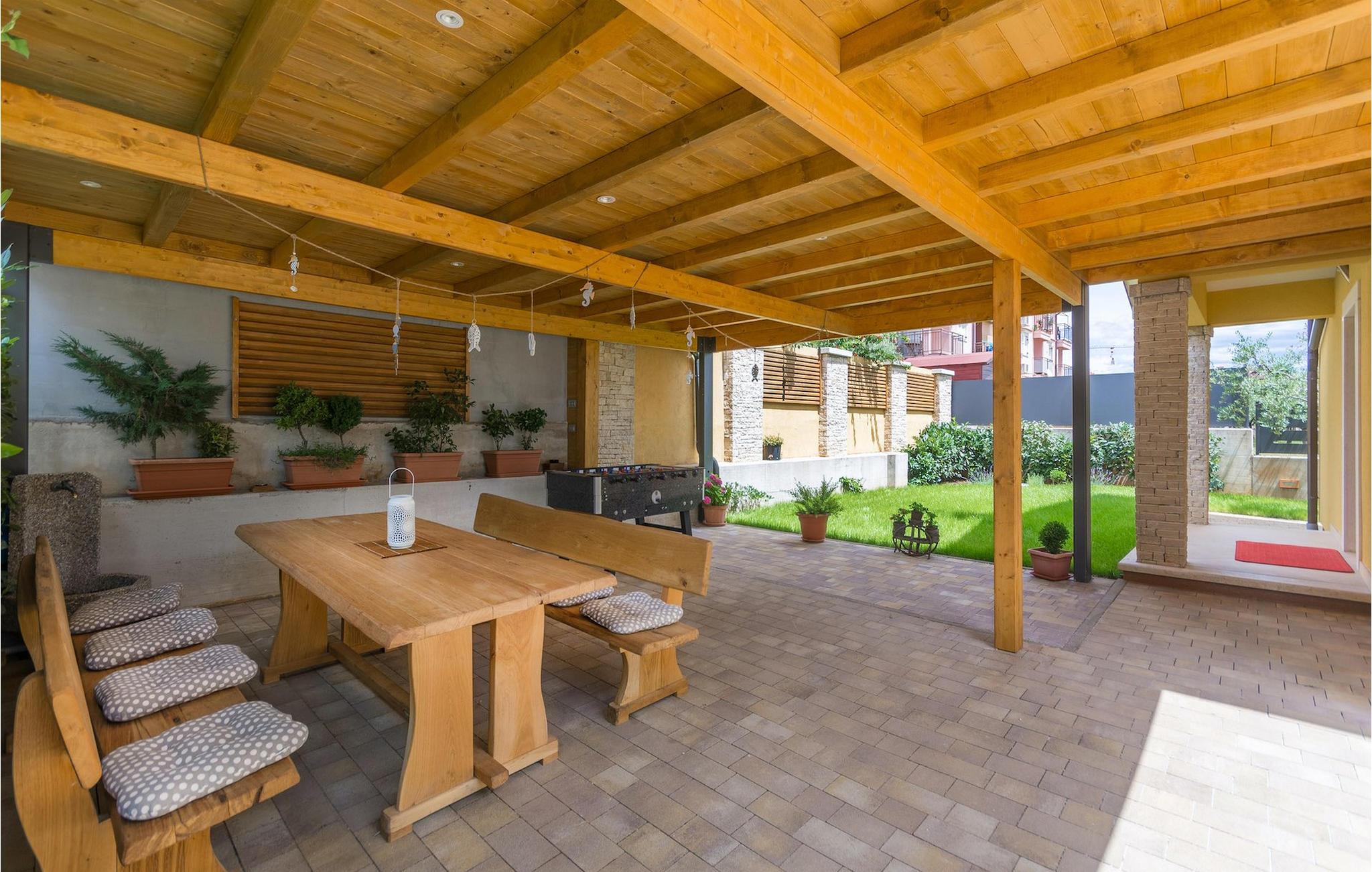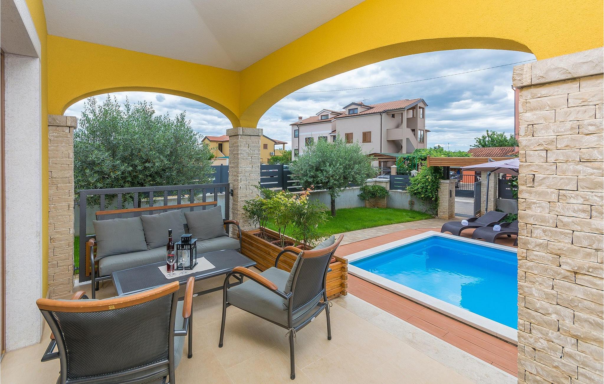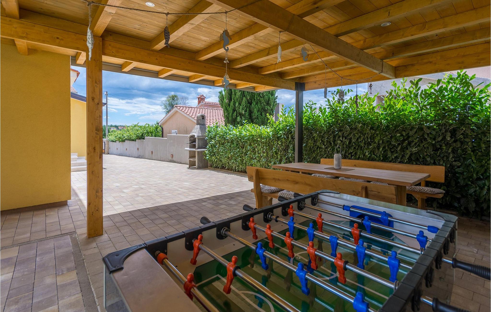 Villa Mala er en ideel familievilla beliggende på et roligt lille sted, men alligevel kun omkring 7 km væk fra turist-hotspottet Porec. Villaen har en dejlig privat pool, hvor du kan nyde de varme sommerdage. Liggestole, overdækket terrasse med udendørs spiseplads, kulgrill, bordfodbold - alt står til din rådighed for en helt afslappet ferie! Lige fra terrassen ved siden af poolen kan du komme ind i den hyggelige stue. Stuen er en del af det åbne koncept i stueetagen sammen med det fuldt udstyrede køkken og spisepladsen. Der er i alt tre soveværelser, hver med aircondition og tv. Den ene er i stueetagen og har eget badeværelse. De resterende to soveværelser og et badeværelse samt en dejlig altan ligger på øverste etage. Villa Mala er perfekt til at rumme 6 gæster. Book det og nyd din tid i denne dejlige villa ved at slappe af ved den indbydende private pool!