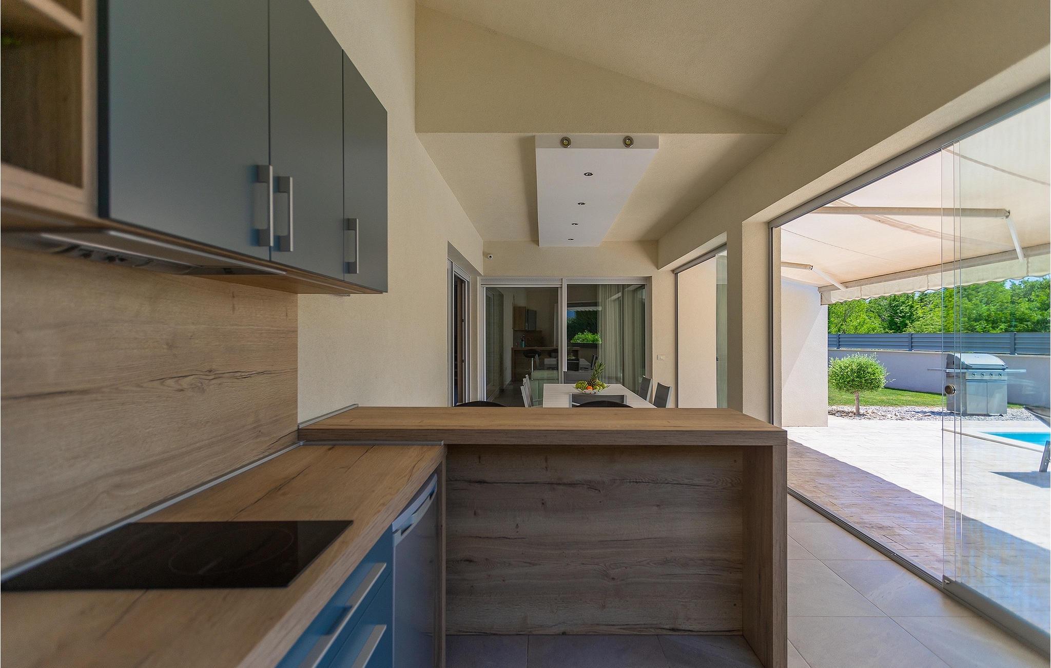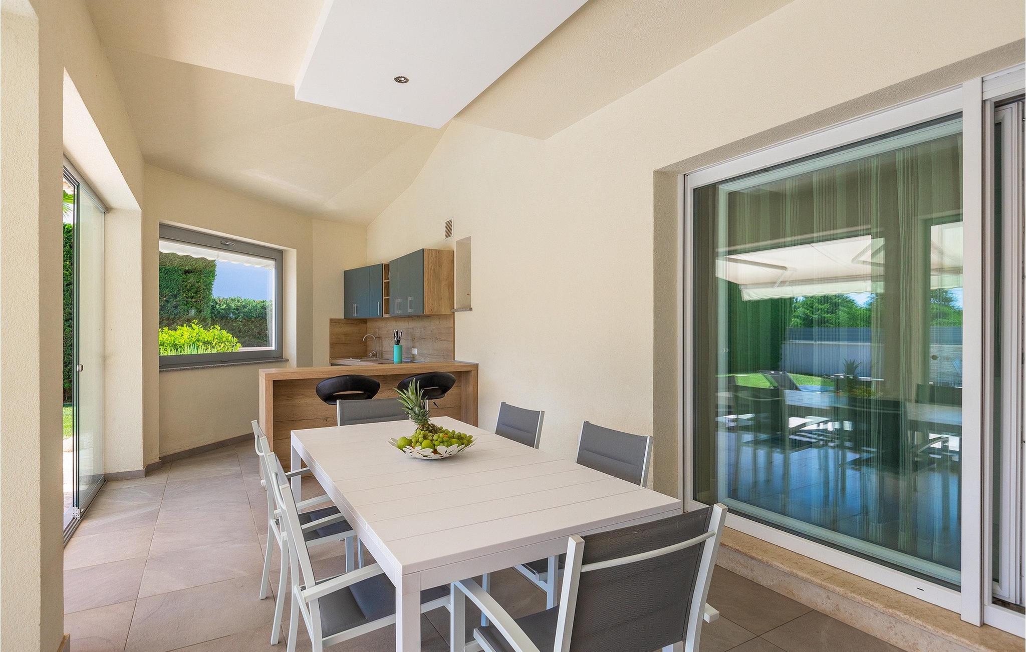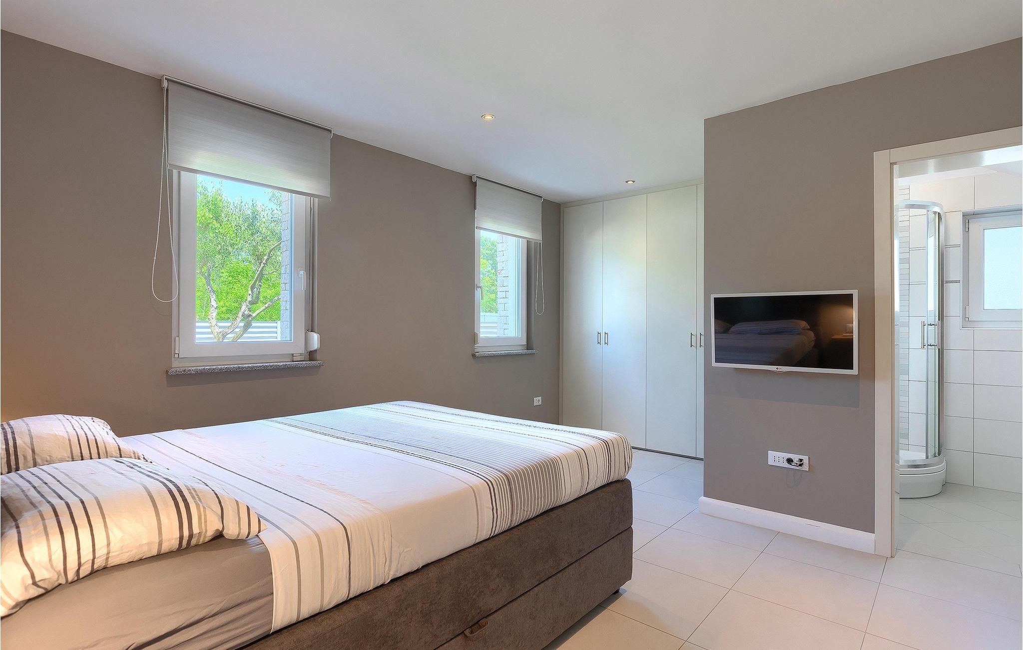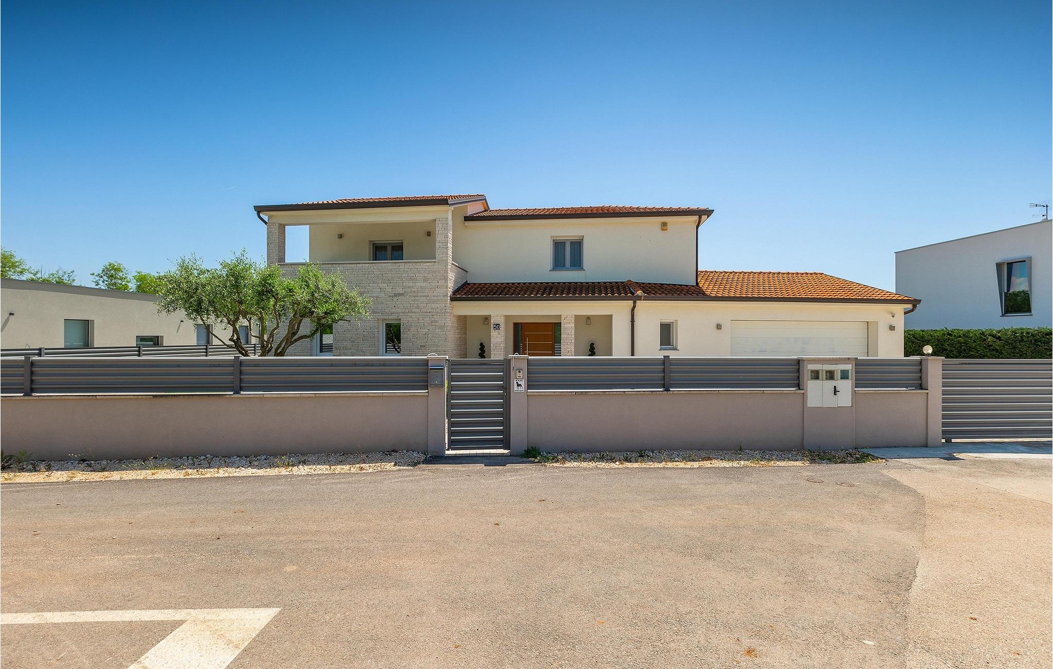Leder du efter en lys villa med moderne indretning, er Villa Alex Exclusive stedet for dig. Denne villa kan rumme op til 6 gæster i 3 soveværelser med dobbeltsenge, hver med eget badeværelse og tv. Stueetagen byder på et af soveværelserne, en stue med 2 sofaer, et tv og en pejs til en hyggelig aften. Derudover er der et rummeligt fuldt udstyret køkken, en spiseplads med plads til op til 8 personer ved bordet og et separat halvbad. På første sal vil du have yderligere 2 soveværelser med eget badeværelse og tv og et walk-in closet. Begge etager har aircondition og er udstyret med gulvvarme. Uden for villaen, inden I træder ind i haven, finder I et udekøkken på den skyggefulde terrasse med eget køleskab, komfur og vask, ved siden af er der endnu et spisebord til op til 6 personer, til et lækkert måltid i frisk luft. Hvis du foretrækker en dejlig sommer-grill, behøver du ikke bekymre dig, den smukke have har en grill lige ved siden af poolen, sammen med 6 strandstole, så hele gruppen kan slappe af i solen, mens hegnet og den høje hæk tilbyder privatliv. Forsiden af villaen byder på plads nok til at op til 3 biler kan parkeres. Hvis denne elegante villa lyder som den rigtige for dig, så book den nu og sørg for en vidunderlig ferie for dig og din familie og venner. Villa Alex Exclusive ligger i den historiske by Porec på kysten af halvøen Istrien i det vestlige Kroatien. Dette populære feriested er hjemsted for Euphrasian-basilikaen, som er kendt for sine fantastiske byzantinske mosaikker, der skaber indviklede billeder. Bortset fra dens kulturelle og historiske betydning er Porec en fantastisk destination for vandsport. Den tætte kyst byder på mange strande, hvor du kan deltage i aktiviteter fra leje af jetski til golf. Der er masser af charmerende restauranter over hele byen, der serverer lækre lokale retter fra fisk til bøffer. Efter en smuk familiemiddag kan du tage en afslappende gåtur langs den betagende marina, før du går tilbage til din luksuriøse villa.