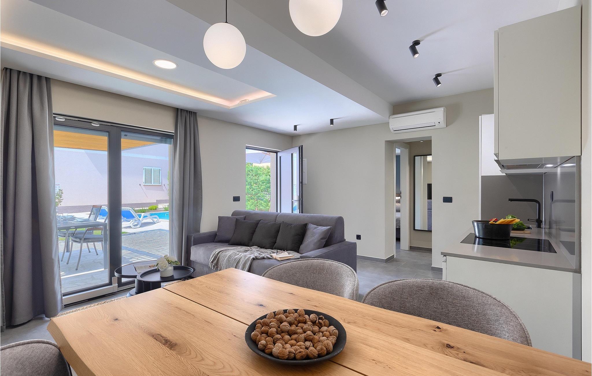 Leder du efter en lille, men flot villa på Istriens vestkyst til din længe ventede sommerferie? Så har du lige fundet det! Villa Lakora ligger i kommunen Sv. Lovrec og er ikke for langt væk fra Porec og Rovinj. Kun omkring 11 km adskiller dig fra Adriaterhavets smukke kyst. Villaen er perfekt til max 4 gæster, der ønsker at tilbringe deres ferie i fredelige omgivelser, men stadig tæt på alle de faciliteter, der er nødvendige for en ubekymret ferie. Hjertet i Villa Lakora er haven med forfriskende 32m2 pool. Slap af på en af de komfortable liggestole, mens du lader den kroatiske sol tan din hud. Den overdækkede terrasse er det perfekte sted at tilbringe sommeraftener sammen og nyde lækkerier, som du for nylig selv har tilberedt på kulgrillen. Træd ind i stueetagens villa, og du vil se, at den er blevet indrettet med stor smag. Moderne elementer pryder den åbne, lyse stue. Det veludstyrede køkken med spiseplads til 4 personer støder op til opholdsstuen med sofa og tv. Derudover fuldender soveværelset med en komfortabel dobbeltseng og badeværelset med bruser den fuldt klimatiserede villa. Tilbring din ferie i Villa Lakora og oplev en uforglemmelig ferie. Villaen ligger i middelalderbyen Sveti Lovrec i det centrale Istrien. Denne maleriske lille by er kendetegnet ved sine smalle, snoede gader og stenhuse, hvor du kan nyde en aftentur efter middagen i den lokale restaurant. De nærmeste strande ligger i byerne Porec, Vrsar og Funtana, inden for en kort køretur fra Sveti Lovrec. Den antikke by Porec er et fantastisk sted at blive fortrolig med Istriens rige kulturelle arv. Den vigtigste regionale vej i nærheden af byen giver dig mulighed for nemt at nå de fleste af de berømte istriske steder som Brijuni National Park eller Pula Arena. Eventyrsøgende vil blive glade for at finde en hesteranch i den nærliggende landsby Jakici, samt gode gratis klatresteder i den spektakulære Lim-bugt.