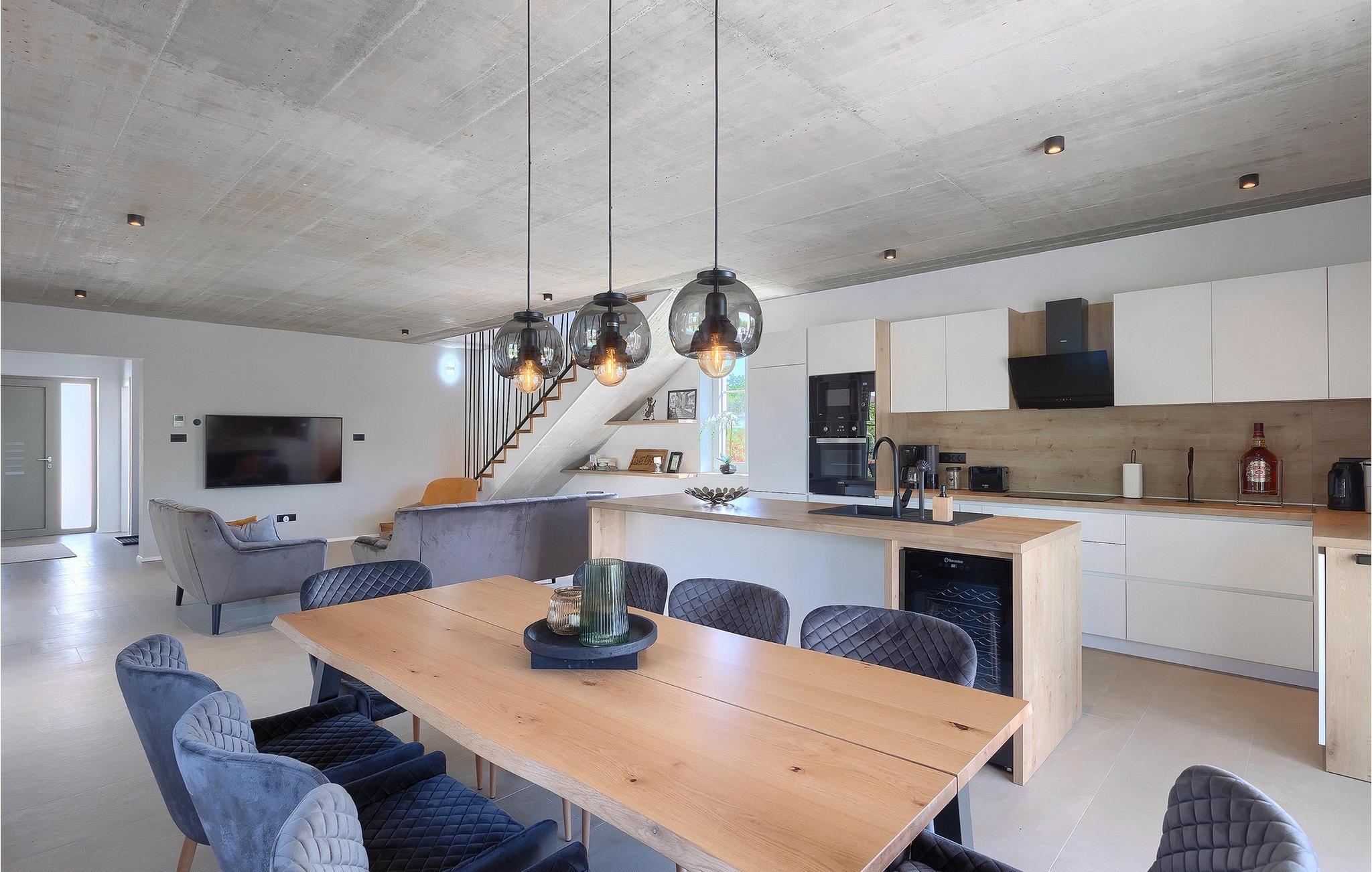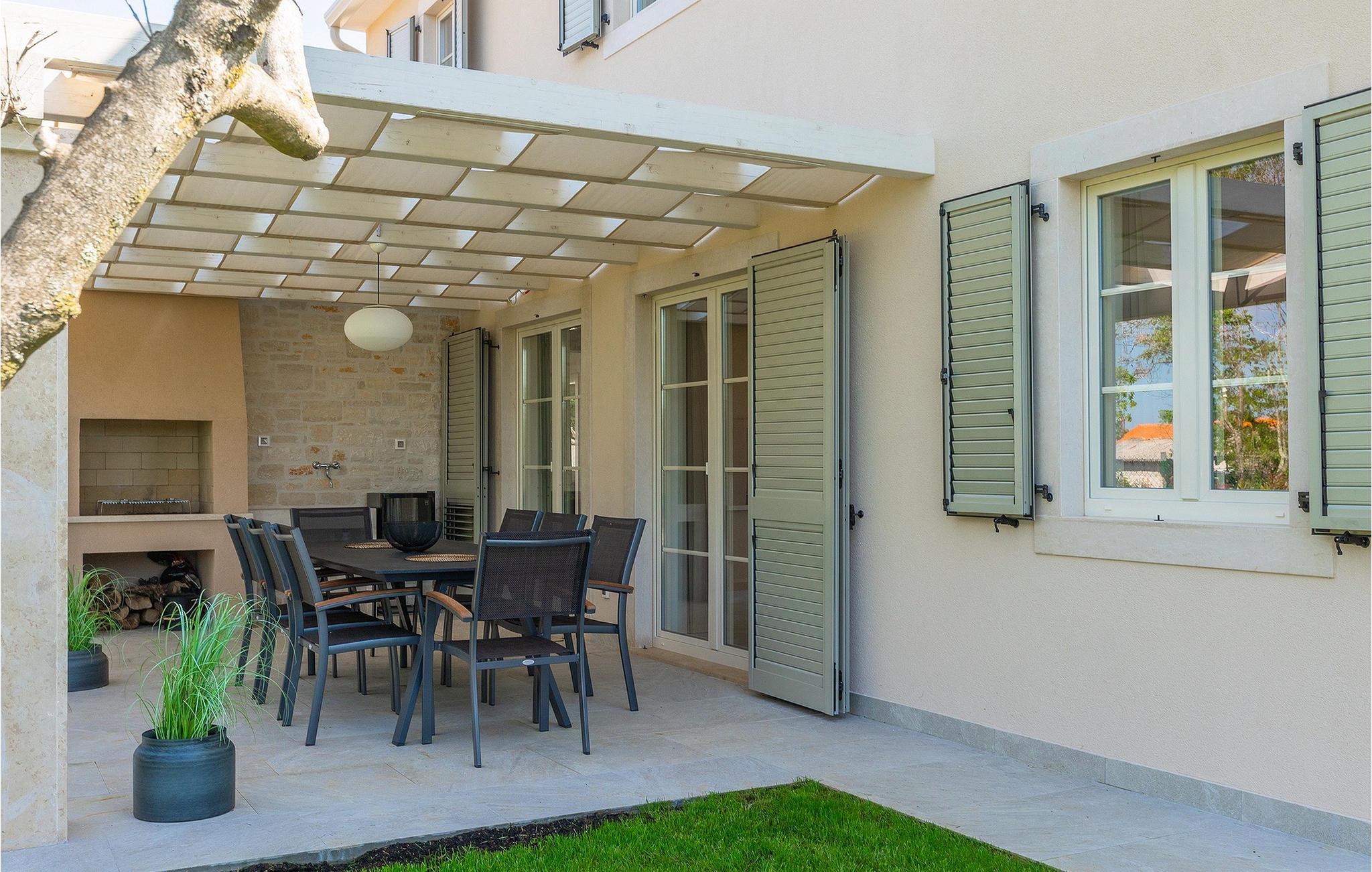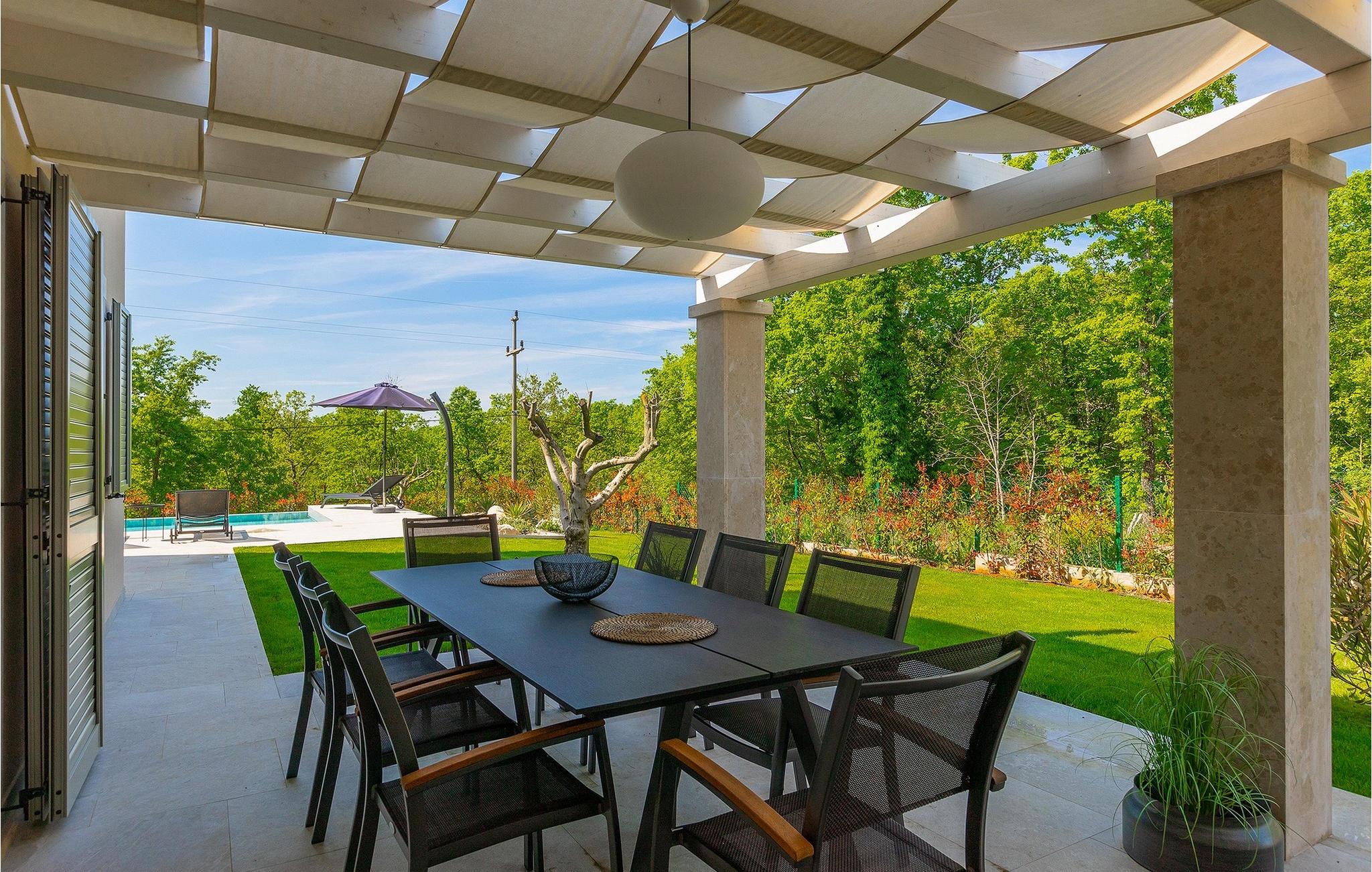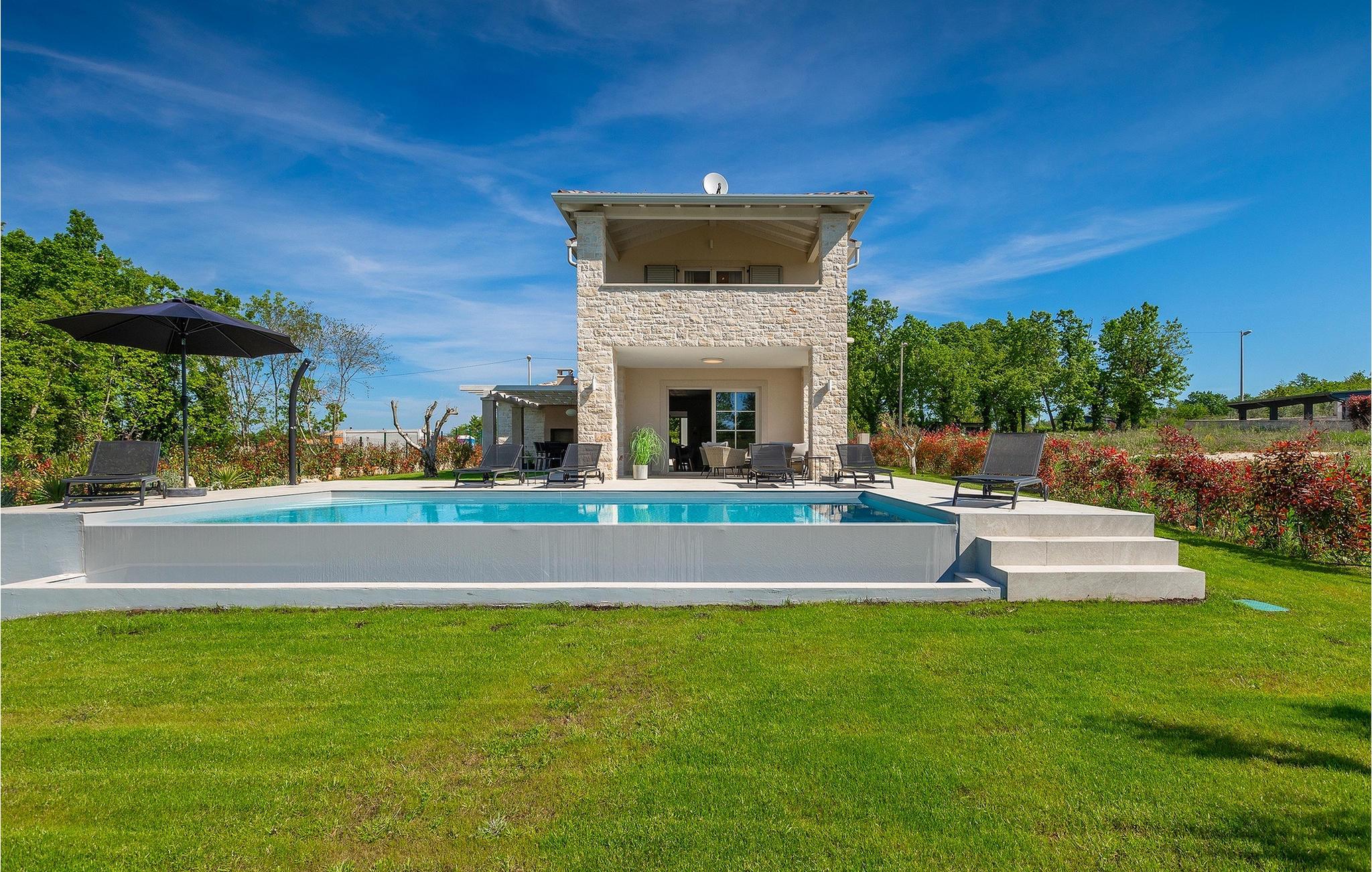 Villa Legro byder dig velkommen i sin smukke grønne have med en forhøjet privat pool i midten. Haven er omgivet af træer og planter, hvilket skaber en idyllisk naturscene, hvor man kan nyde en forfriskende svømmetur. Rundt om poolen kan du sole dig i 6 liggestole eller slappe af i det skyggefulde loungeområde ved villaen. På den ene side af villaen er der et udendørs køkken med grill og et spisebord til op til 8 personer, perfekt til at nyde en udendørs grill. Inde i villaen er den elegant indrettede stue med TV oplyst af naturligt lys fra alle sider, takket være de store vinduespartier. I samme område er et fuldt udstyret køkken med en køkkenø og et andet spisebord til op til 8 personer. På denne etage finder du et af de komfortable dobbeltværelser med tv og aircondition samt et af badeværelserne. En etage op ad trappen er der yderligere 3 dobbeltværelser med TV og aircondition og 2 yderligere badeværelser. Den store overdækkede altan er perfekt til en smuk morgen med en kop kaffe og udsigt til poolen og haven. Villa Legro er det perfekte sted at bo for en afslappende ferie med din familie.