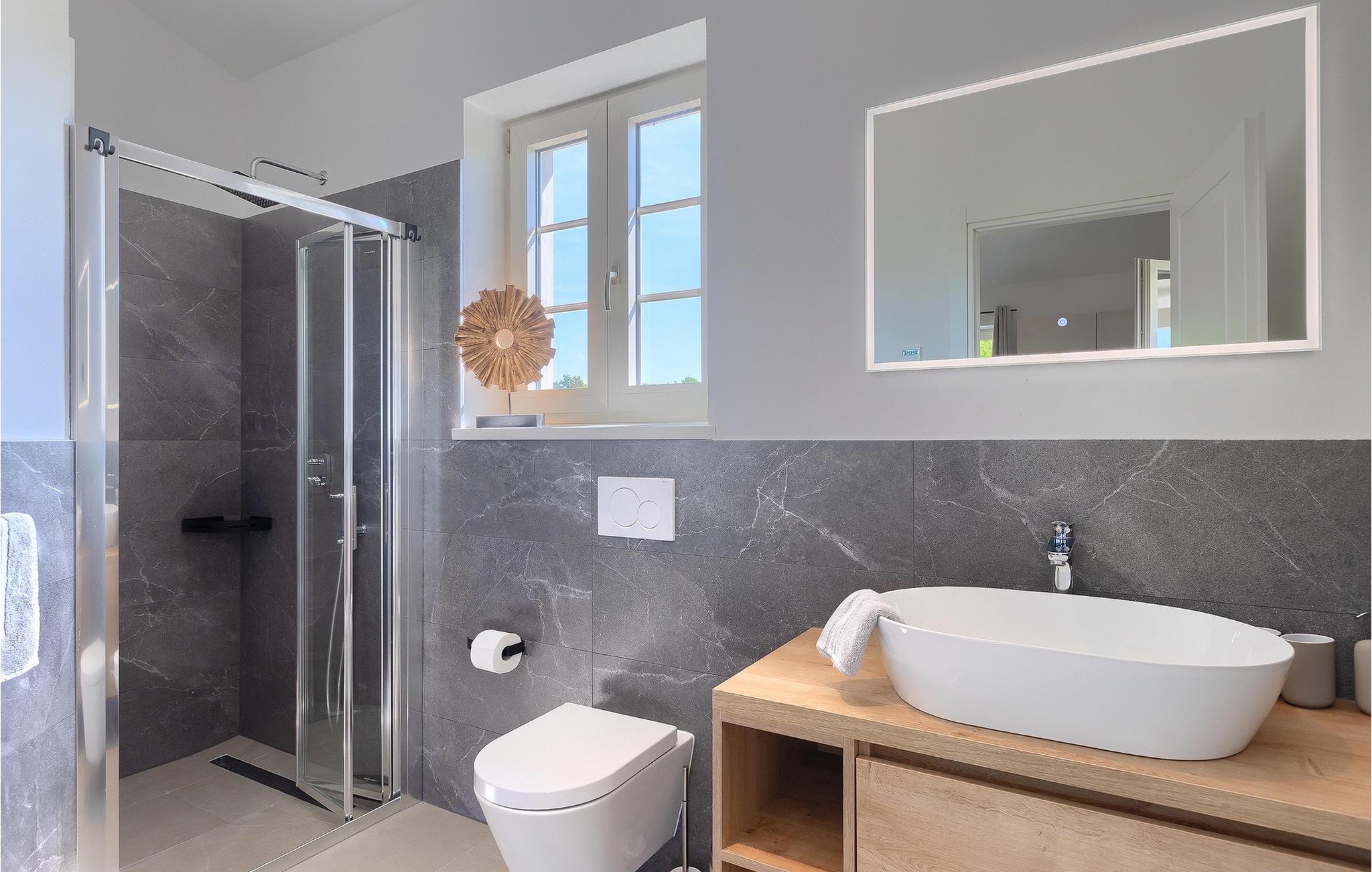 Villa Legro ligger i landsbyen Anzici, kun omkring 30 minutter fra den antikke by Porec. Porec er en fortryllende by, der problemfrit blander sin rige historie og fængslende kystallur. Byens omdrejningspunkt er den bemærkelsesværdige Euphrasian Basilica, et UNESCO-verdensarvssted kendt for sine fascinerende byzantinske mosaikker. Efter at have nydt historiske seværdigheder, kan du gå en tur gennem Porecs maleriske, smalle brostensbelagte gader, udsmykket med dejlige butikker, caféer og restauranter, der vil friste dig med lækkert lokalt køkken, som inviterer dig til at omfavne den afslappede middelhavsstemning. Nyd en is foran den pulserende strandpromenade, hvor farverige både markerer scenen og tilbyder ærefrygtindgydende udsigter over det uberørte Adriaterhav. Med sine fantastiske strande, blomstrende natteliv og et væld af kulturelle og rekreative aktiviteter, skinner Porec som en sand perle i Istrien-regionen, der fascinerer besøgende med sin tidløse skønhed og ægte varme af gæstfrihed. En anden tæt destination er Novigrad, hvor der ikke er mangel på underholdning med adskillige lokale arrangementer og et nærliggende vandland, perfekt for både børn og voksne.