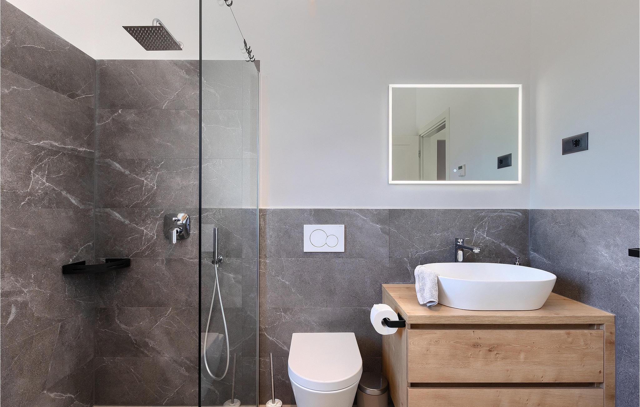 Badeværelse (nr. 1) - WC. Varmt og koldt vand. Bruser