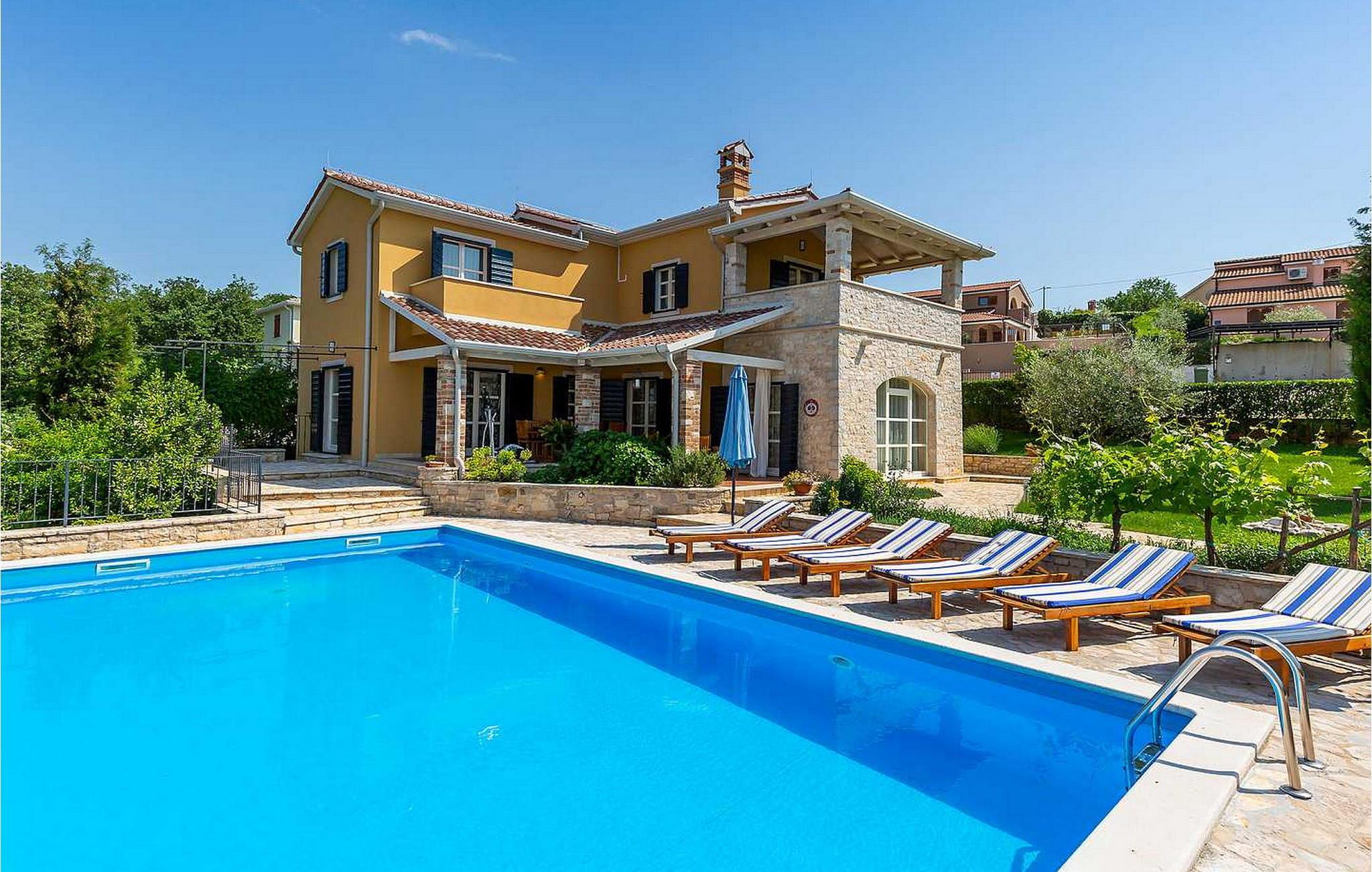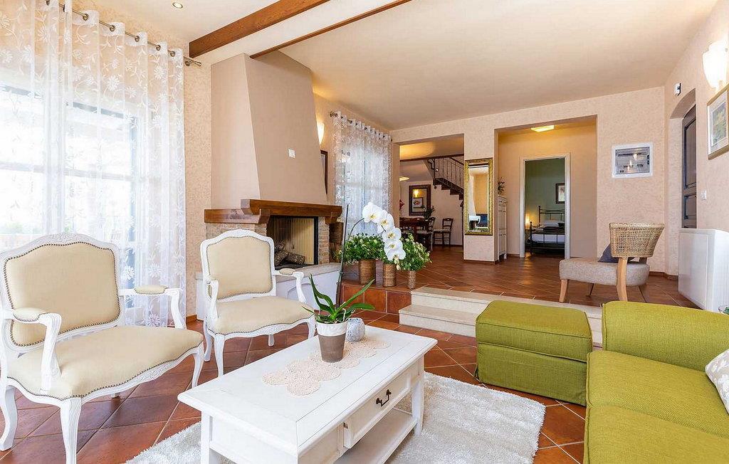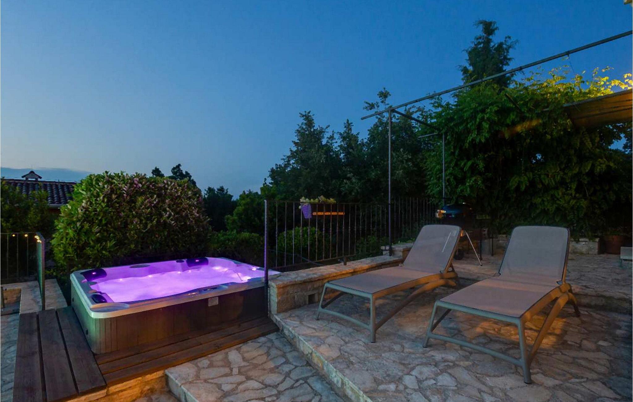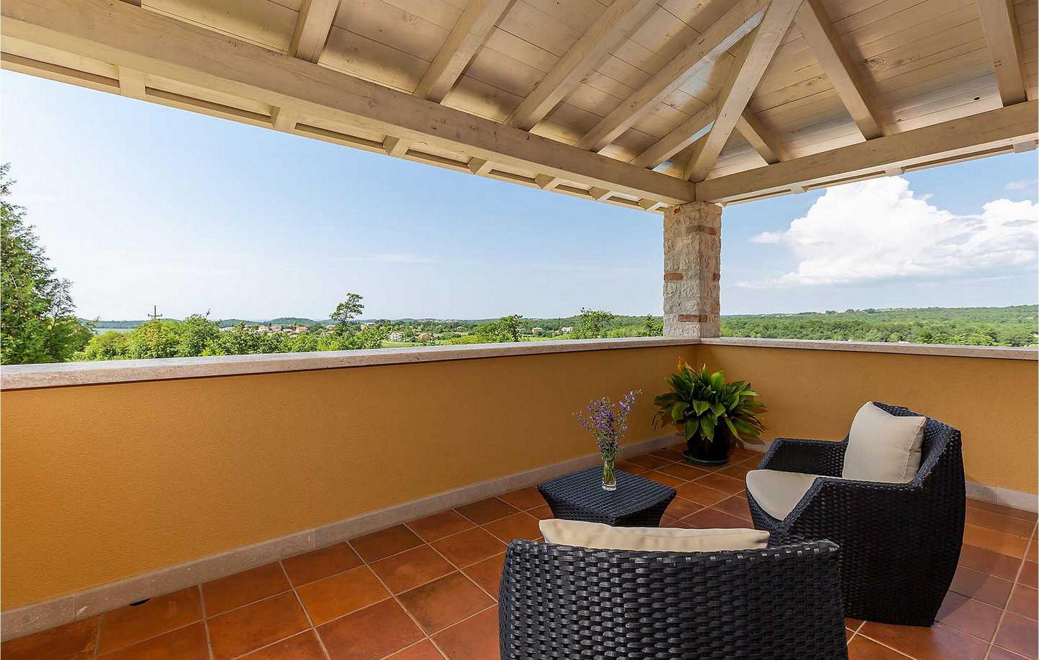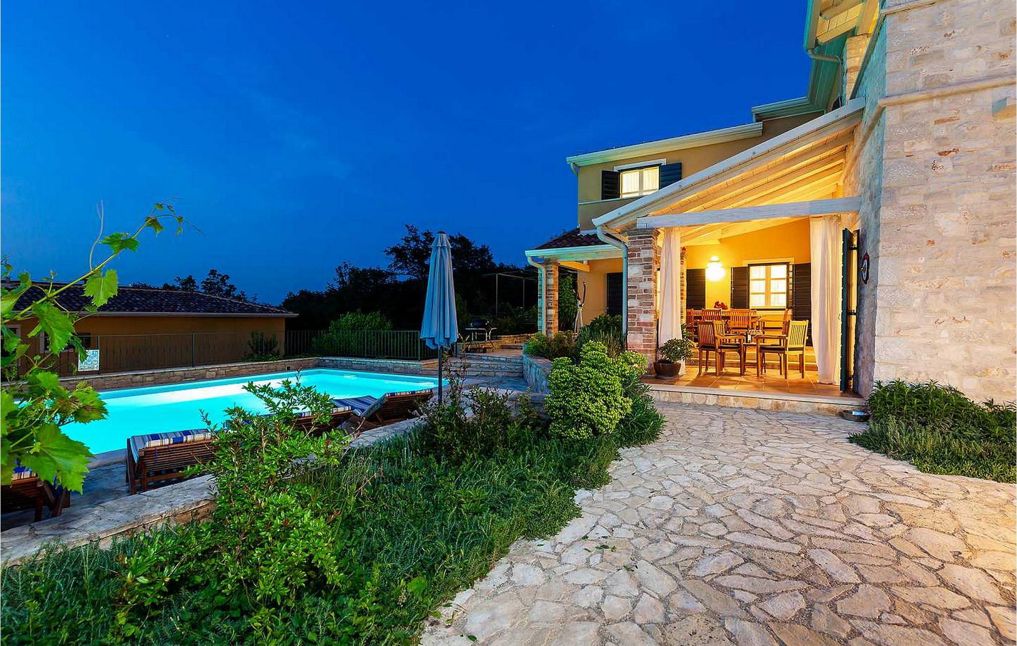 Villa Salvea er en nybygget luksuriøs rustik villa beliggende i udkanten af landsbyen Montizana med en dejlig panoramaudsigt over markerne og havet. Landsbyen ligger 10 km fra Porec og dens strande. Huset blev bygget i år 2014, det er fuldt airconditioneret og indrettet med attraktive rustikke møbler. På den lukkede grund på 1.000 kvm er der en udendørs swimmingpool på 50 kvm, et spabad, overdækket terrasse med spisefaciliteter og grill, velholdt græsplæne og to parkeringspladser. Villaen har et boligareal på 197 kvm. I stueetagen er der en dejlig stue med pejs med to masser af terrassedøre, der fører til terrassen, et fuldt udstyret køkken med spisebord og udgang til terrassen og haven, et soveværelse for to med dobbeltseng og en-suite bruser /toilet. På 1. sal er der tre soveværelser til to, to af dem med dobbeltseng og terrasse, og et med to enkeltsenge. Bemærk venligst, at denne ejendom ikke accepterer ungdomsgrupper eller polterabends. En ungdomsgruppe på denne ejendom er en gruppe bestående af personer på 26 år eller derunder. Book ikke denne ejendom, hvis du er en ungdomsgruppe eller et polterabend, da din reservation vil blive afvist efter booking, hvilket kan omfatte ved ankomst til ejendommen eller under dit ophold, og du vil ikke blive refunderet.